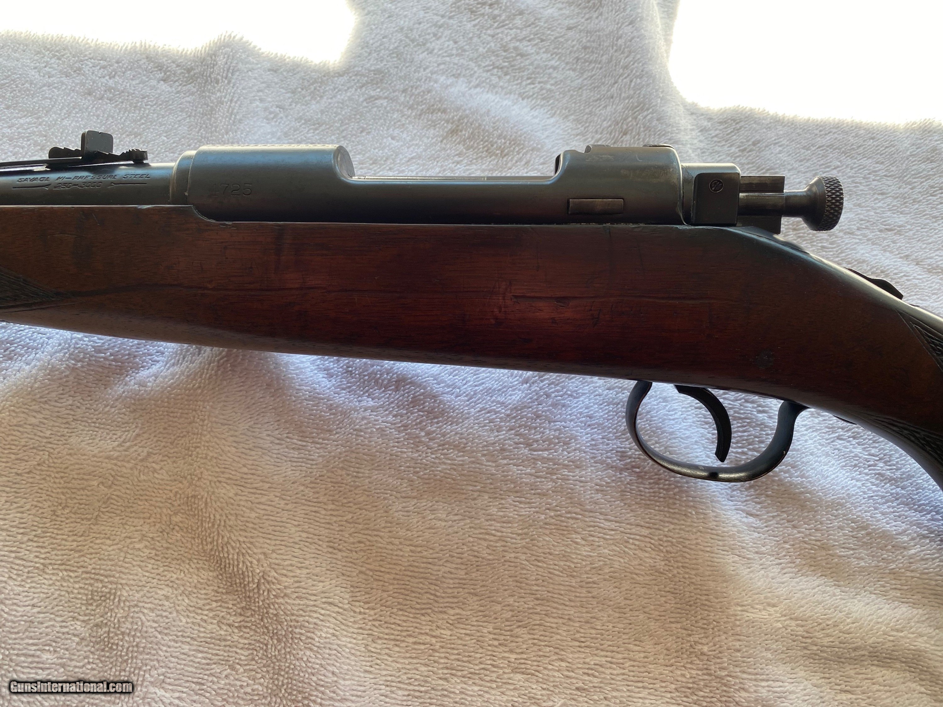 Description: This is a savage model 1920 chambered in 250-3000 savage. This rifle is in good condition and has a good bore with strong rifling. It was never drilled and tapped. 60.00 shipping SOLD Rifle Caliber: .250-3000 Savage Manufacturer: Savage Model: 1920 Condition: Good Metal Condition: Good Wood Condition: Good Bore Condition: Very good |