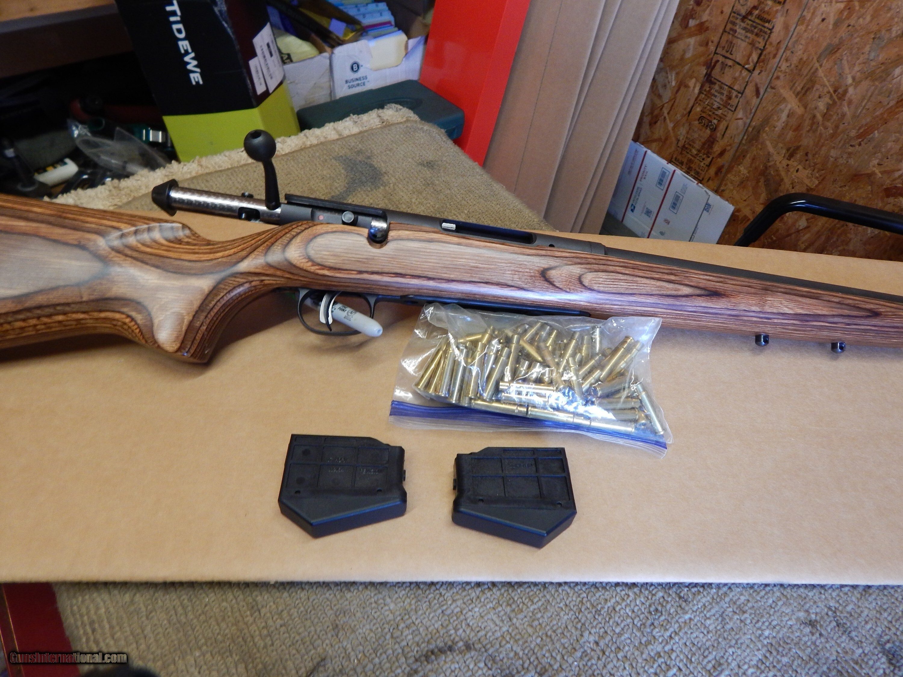 Description: A Savage model 25 22 Hornet that has been rechambered to 22 K HORNET. It has a laminated stock and a medium weight varmmit barrel. It comes with two magazines one 22 Hornet mag for shooting 22 factory rounds and fire forming the 22 K HORNET brass. Also a 17 hornet magazine that will feed the 22 K HORNET rounds. This is a nice rifle and also comes with some already formed K HORNET brass. SOLD Rifle Caliber: .22 K-Hornet Manufacturer: Savage Model: 25 Bore: Shinny Condition: great Metal Condition: great Wood Condition: great |