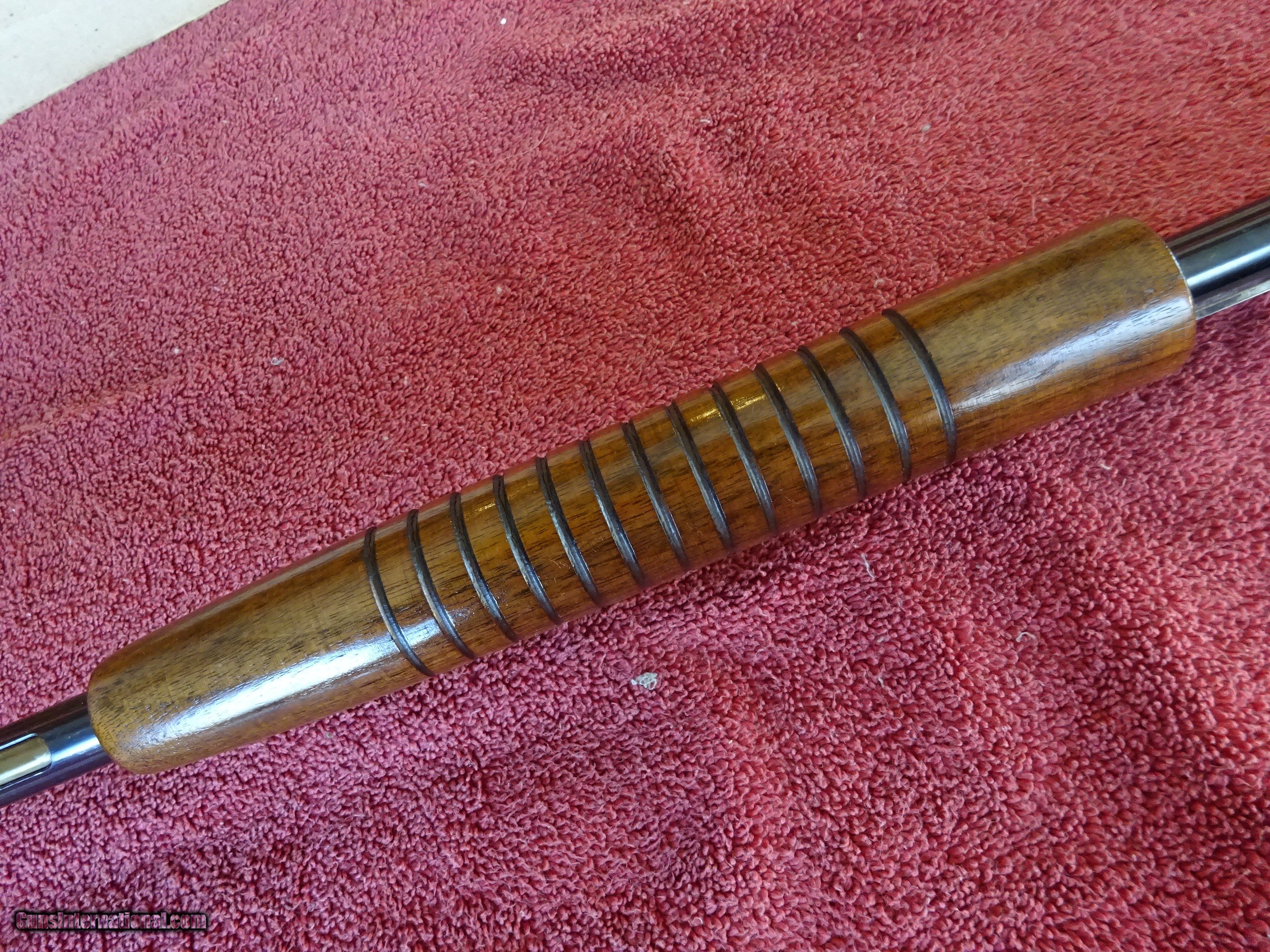 Description: SAVAGE MODEL 29-B, 22 S. L. OR L.R. SLIDE ACTION RIFLE, 24" ROUND BARREL. FIXED FRONT SIGHT, STEP ADJUSTABLE REAR SIGHT. PISTOL GRIP STOCK, EXTRA LONG RIBBED FOREARM, SELECT AMERICAN WALNUT. 100% NEW PERFECT CONDITION IN ITS ORIGINAL BOX WITH INSTRUCTION FOLDER, HANG TAG ENVELOPE, INSPECTION SLIP, 16 PAGE SHOOTING BOOKLET. BOX HAS INTERNAL COMPARTMENTS, COLORFUL END LABEL. PROBABLY MADE ABOUT 1950. NO INDICATION THE GUN WAS ASSEMBLED AND FIRED. A GREAT FIND, IMPOSSIBLE TO IMPROVE UPON. $2000.00 + $70.00 Insured shipping to an FFL address. Layaway is available. See all Pats gun listings on this site! We also have hundreds of pieces of ORIGINAL gun company advertising & memorabilia available for sale on our site SPORTINGCOLLECTIBLES. We have no reprints or reproductions. Email for more information. SOLD Curio/Relic: Yes |