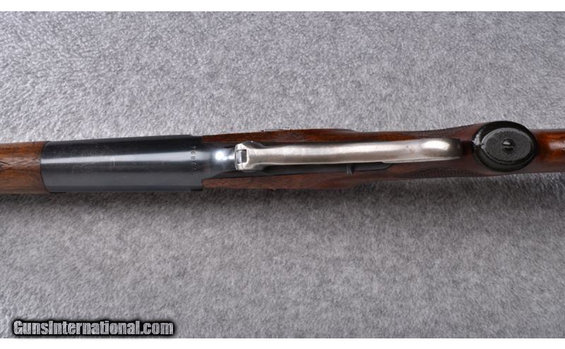 Description: Gun has handling/use marks appropriate with age but remains solid and functional. Original blue shows some wear and blue loss. Bore is excellent. Complete with cocking indicator and shot counter with period Redfield adjustable peep sight. No box. .300 Savage SOLD Metal Condition: Very Good Wood Condition: Very Good Barrels: 21 Triggers: Factory Stock Dimensions: 13 3/8" LOP Fore End: Checkered Walnut Butt Pad: Grooved Steel Butt Plate Sights: Post & Bead Front - Redfield Adjustable Peep Rear Item Location: Wheeling |