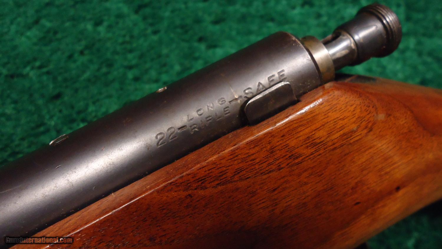 Description: The match rifle was a 22 cal repeating bolt action rifle. This one was no doubt some sort of a match rifle. Brass weights toward the front of the forearm for match shooting makes for a front heavy rifle desirable to match shooters. The bbl has some freckling and some flaking of finish but overall in good cond. The stock has a couple of plug repairs in the wrist area. Wrist was apparently cracked at one time. There is a chip missing near the toe. Also there is no magazine. Leroy Merz Antique Firearms specializes in antique and vintage Winchesters and other fine American firearms. Since 1965 Mr. Merz has taken part in the world of firearms and has been a contributor to many well known reference books. Just recently we mailed the 127th edition of our privately-published catalog. We have hundreds of additional guns in every price range at our home online. Search for Merz Antiques in google. SOLD Curio/Relic: Yes |
