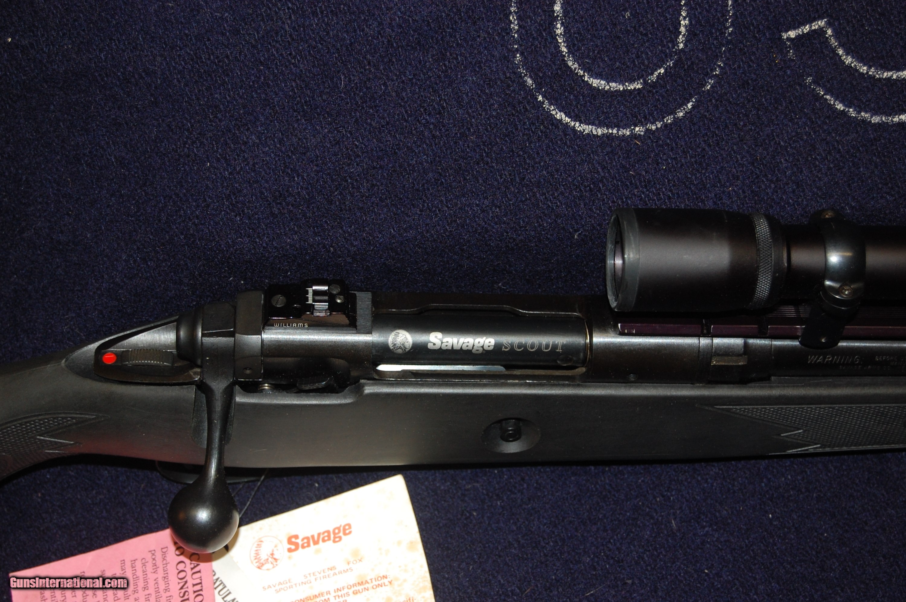 Description: Savage Scout model 10, 308 Win, 20 inch barrel, bright excellent bore. Features include pillar bedded pistol grip synthetic stock, detachable magazine, Burris 2 ¾ scope, Williams peep sight and large bolt handle. The long eye relief scope is mounted on a rail in front of action. The scope was mounted but not sighted in. This gun appears to be unfired and in excellent condition Complete rig weighs 7 1/2 pounds. $50.00 shipping. SOLD Manufacturer: Savage Model: Scout Model 10 Caliber Info: .308 Win. Condition: Like New Metal Condition: Excellent Barrels: 20 inch Action: Bolt Stock: Synthetic Finish: Blue |