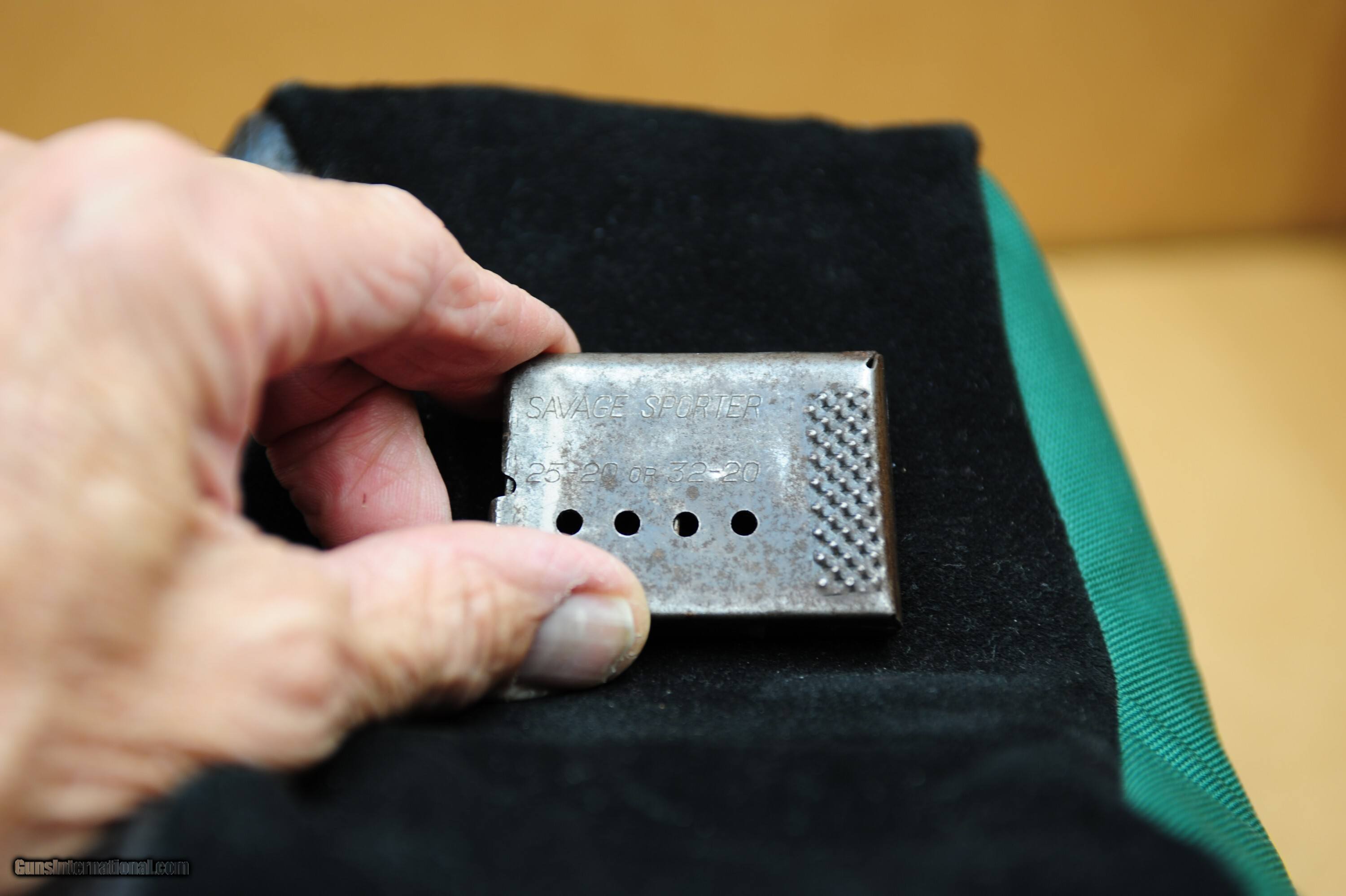 Description: Savage Sporter Model 23 B. 25 inch barrel 25/20 caliber. The barrel and receiver were milled from one peice of steel. Made between 1923 and 1942 and 16400 were produced. No extra holes have been drilled in the receiver. A factory original gun. $995.00 plus shipping Price: $995.00 Contact Seller |