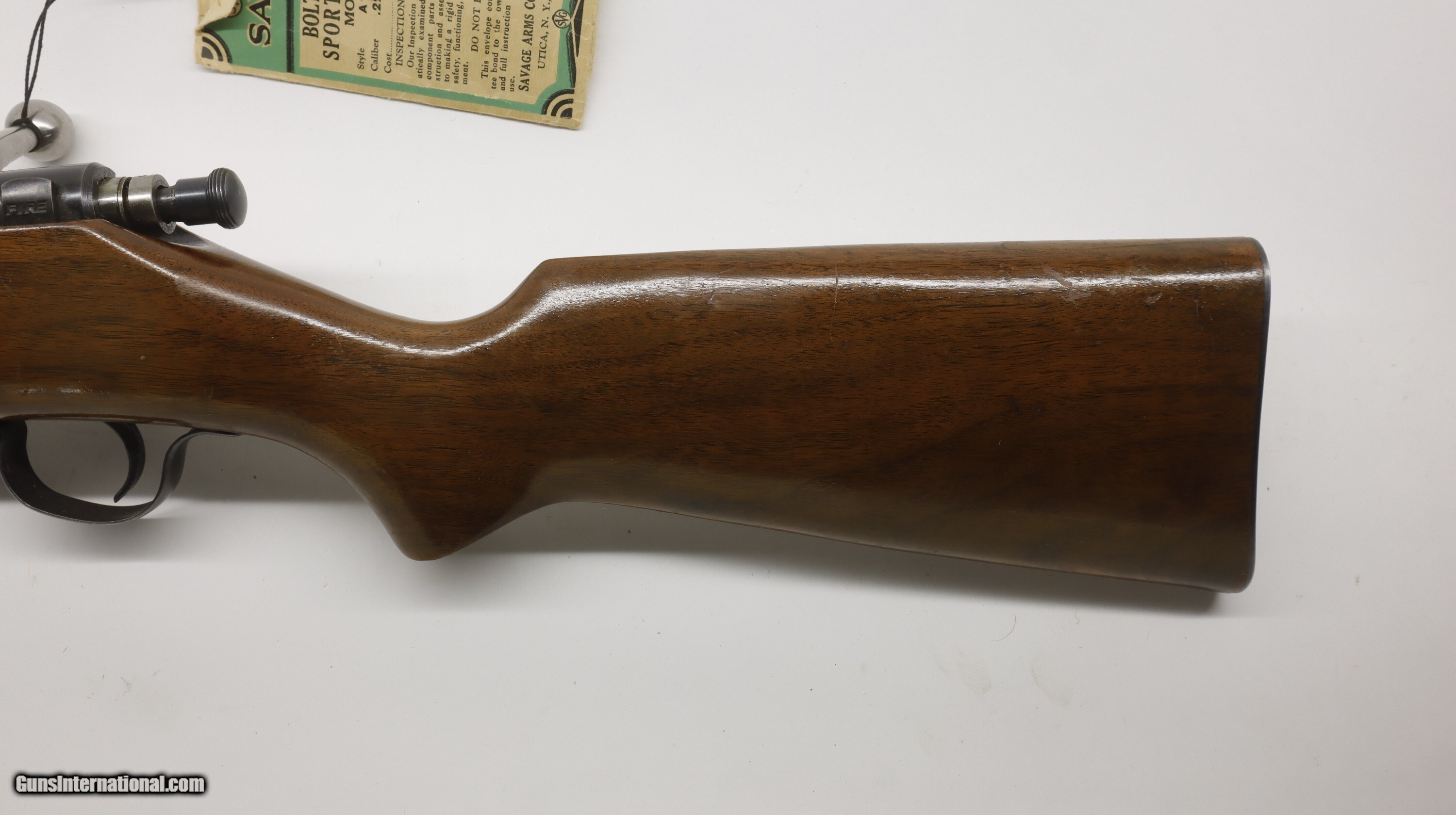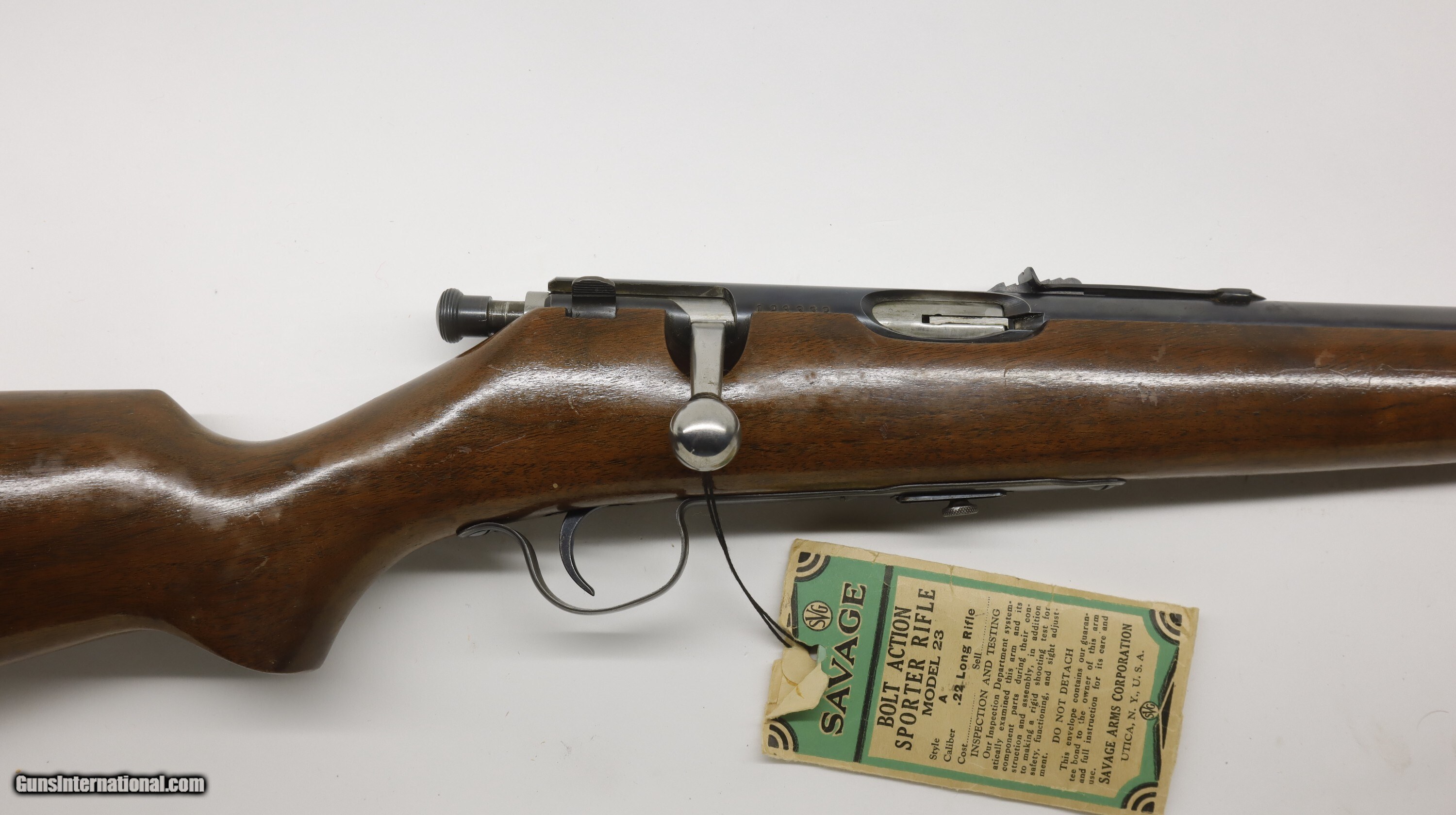 Description: Savage Sporter rifle, 22LR, 23" barrel, factory open sights. SN is 1233xx. Factory finish on both wood and metal, nice clean gun, good bore. We will trade for silver or gold bars or coins. We trade for guns. We are also an 07 dealer and deal in machine guns. Let us know if we can buy or consign your collection! Used guns might need a good cleaning to bring them up to your standards. All my guns (except Layaway) come with a non-firing, 3 day unconditional return privilege, from the day UPS delivers to your dealer. Buyer pays shipping both ways if the gun comes back. Please make sure to make it to your FFL to inspect within the 3 days. We are happy to hold until you know you will be able to make it to your FFL in the 3 day window. We accept personal check or certified funds. We can also take your credit card, +3%. Email me if you would like these pictures sent to you, they will come through bigger and better than on the listing page here. We do offer Layaway. Our standard terms are 25% down, 90 days. Initial deposit is not refundable. Layaway guns do not have an inspection or return policy. Email me with any questions. Please check your local laws to confirm it is legal to own in your state! Buyer pays $60 shipping and insurance in a brand new PLANO hard case to your FFL in the lower 48. AK, HI or PR is extra. I will ship to California, as long as it is legal, NO PROBLEM! I am a licensed FFL, and will include a copy of my FFL with the gun for your dealer’s records. I will ship to a C&R if the gun is eligible. I will ship to California, but you need to confirm the gun is legal where you are, California or other. WE BUY AND CONSIGN GUNS AND GUN COLLECTIONS! We will travel to pick up collections! We can also do your machine guns! I am always looking for good clean, old original Winchesters to buy, consign, or trade, especially Pre '64's model 70's and model 54's. WE ALSO TRADE FOR CLASSIC CARS AND TRUCKS! We also trade for gold and silver. SOLD Rifle Caliber: .22 Long Rifle Manufacturer: Savage Model: Sporter Barrel Length: 23 Condition: Used |