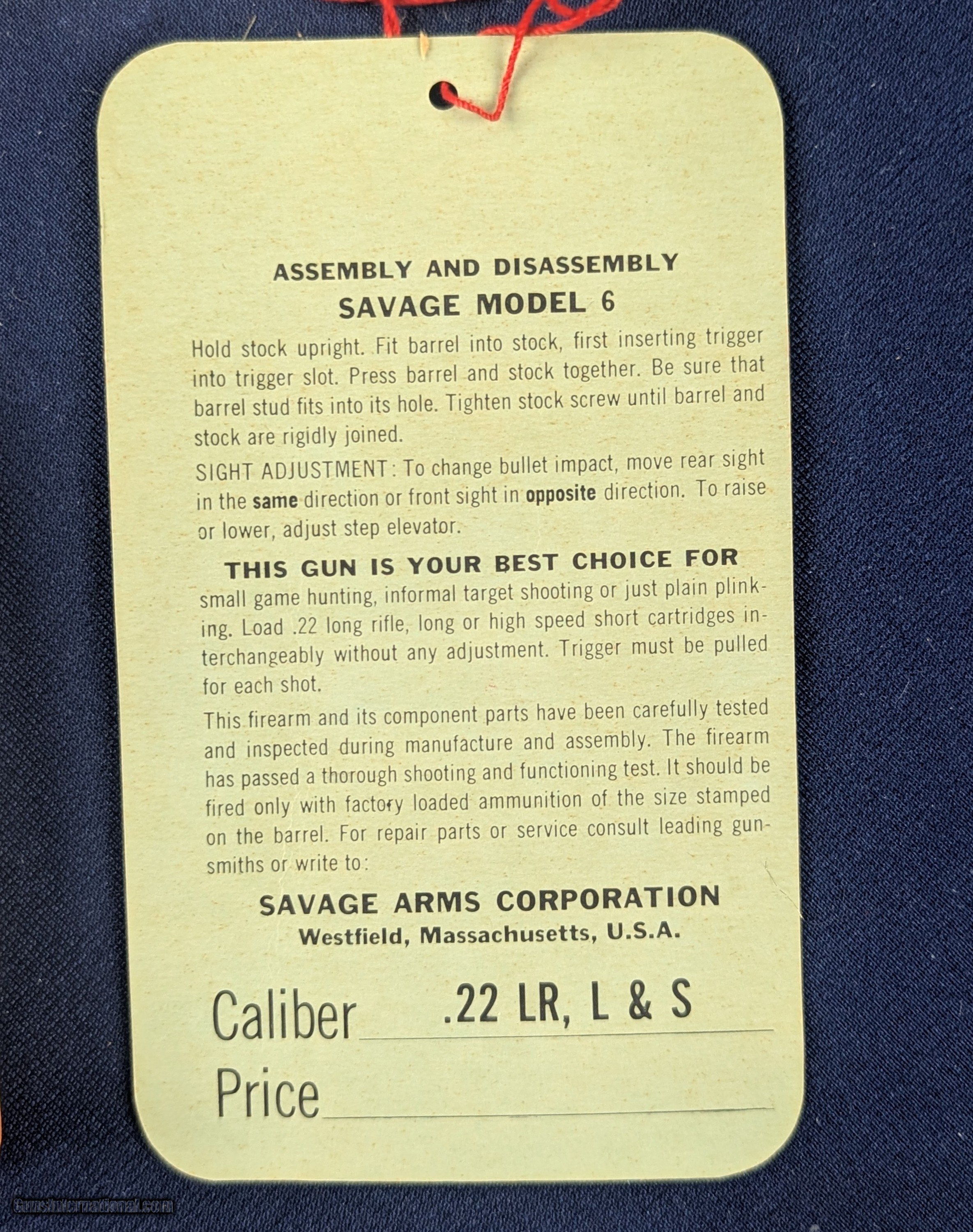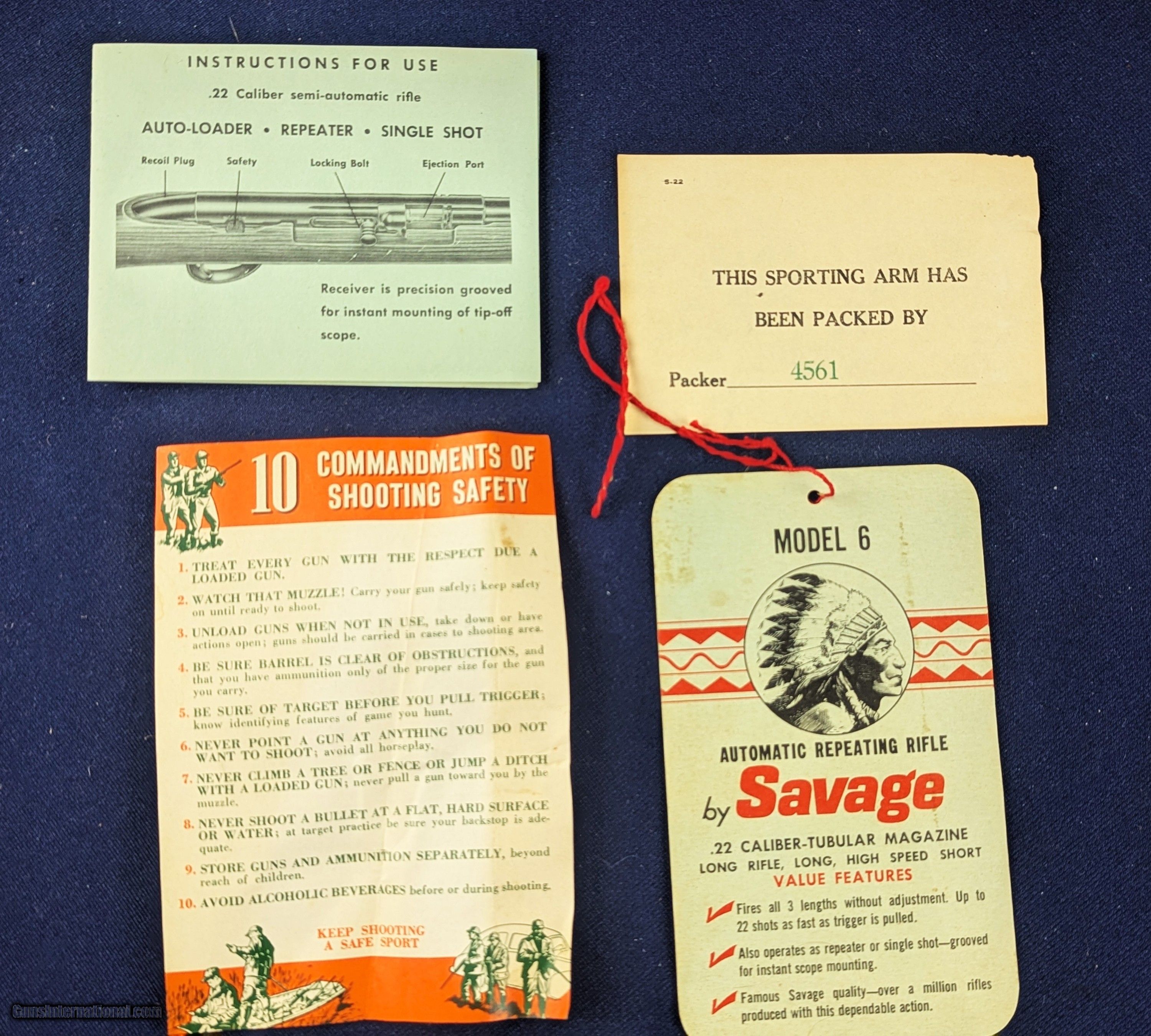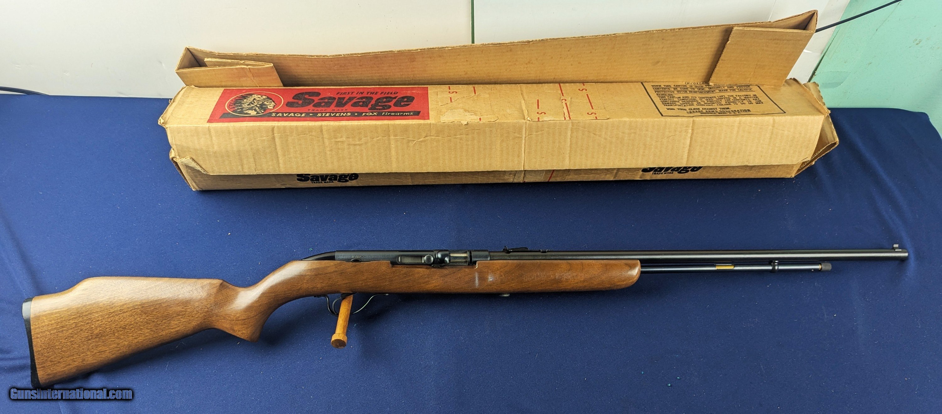 Description: UNFIRED Savage Model 6 Deluxe w/RARE original Factory Box and Instructions Offered here and just acquired is perhaps the finest ALL-IN-ONE COMPLETE package involving A savage Model 6 DELUXE .22 Rifle in RARE ORIGINAL FACTORY BOX. The Savage Model 6 is a .22 caliber semi-automatic rifle originally made by Savage Arms (and earlier under Stevens Arms). It’s essentially the Savage version of the Stevens Model 87 rimfire line. These rifles were chambered for .22 Short, .22 Long, and .22 Long Rifle rimfire cartridges. It features a 24″ barrel, tubular magazine under the barrel, basic iron sights, and a walnut or stained wood stock. The design is a straight-blowback semi-auto — simple, reliable, and effective for plinking or small game shooting. These low cost rifles typically are not found in original factory boxes. It is RARE to find one in this condition and complete. The deluxe version of the Model 6 as stamped on box denotes usually nicer trim compared to basic versions — better wood grain/finish and higher quality sights. An original rare factory box significantly enhances collectible value, especially for the Stevens/Savage arms collector. it includes original packing materials, instructions, factory hang tag, inspectors packing paper and marketing safety tip flyer. Collectors often value original boxes as much as the firearm itself in rare cases and in this case so much so. Many older Savage/Stevens rimfire rifles lack a stamped serial number, especially if manufactured before 1968, when U.S. federal law first required serialization of long guns. Older Model 6 rifles are known to be takedown capable as this one as well. The Model 6 line (including variations like 6, 6A, 6B, and “Deluxe” trims) was produced for many decades before being phased out; total numbers are high, but unfired collectors’ specimens with original boxes are rare. Again a wonderful piece for the collector of Savage arms or for that matter any American arms collector. Shipping is approximately $42 however final shipping amount is based upon geographical area. Handling is $18.00 for longarms only. We gladly accept money orders, bank checks and personal checks. Credit card orders (VISA AND MASTER CARD ONLY) charged 3.95% additional for use. PLEASE CALL DALIA AT 203-257-5256 TO GIVE CREDIT CARD I NFORMATION. Also, please view our at hansenguns. Clicencounhterk on "Online Catalog" and see All OF OUR ITEMS LISTED CONSECUTIVELY on or search online on that site with the ID “lope”...... OFFERED ONLINE AND AVAILABLE IN OUR RETAIL GALLERY IN SOUTHPORT, CT. Visit us also on Facebook at ://facebook/hansenguns/?fref=ts. We also own and/or operate Hansen Cartridge Co. and the Ruger Collectors Assc.(RCA). Hansen & Hansen wishes to expedite each order received, however we ship 80-100 items weekly, therefore orders paid by money orders or bank checks are cleared for shipping 5-7 days after deposited funds show in our account. Shipping date is scheduled ONLY AFTER VERIFICATION TAKES PLACE AND FFL/C&R IS RECEIVED (IF APPLIES). This is 5-7 days after WE receive order by mail - NOT customer date mailed and postmarked and after credit card funds are posted. Credit card orders exceeding $500 must be cleared through customer’s bank before shipping. Personal checks are accepted but orders are held UP TO 3 WEEKS after deposit of funds before items released for shipping. IF you have special instructions or require overnight or expedited shipping please advise at time of ordering and we will gladly prioritize shipping FOR AN ADDITIONAL CHARGE. THIS IS OUR POLICY and we encourage s to PLEASE READ AND UNDERSTAND OUR POLICY BEFORE . We would be pleased to answer ANY questions by phone (our toll free number is 1-800-571-7337 or e-mail cwlopiaol. Curio/Relic: Yes Rifle Caliber: .22 Long Rifle Price: $1,000.00 Buy Now Contact Seller |