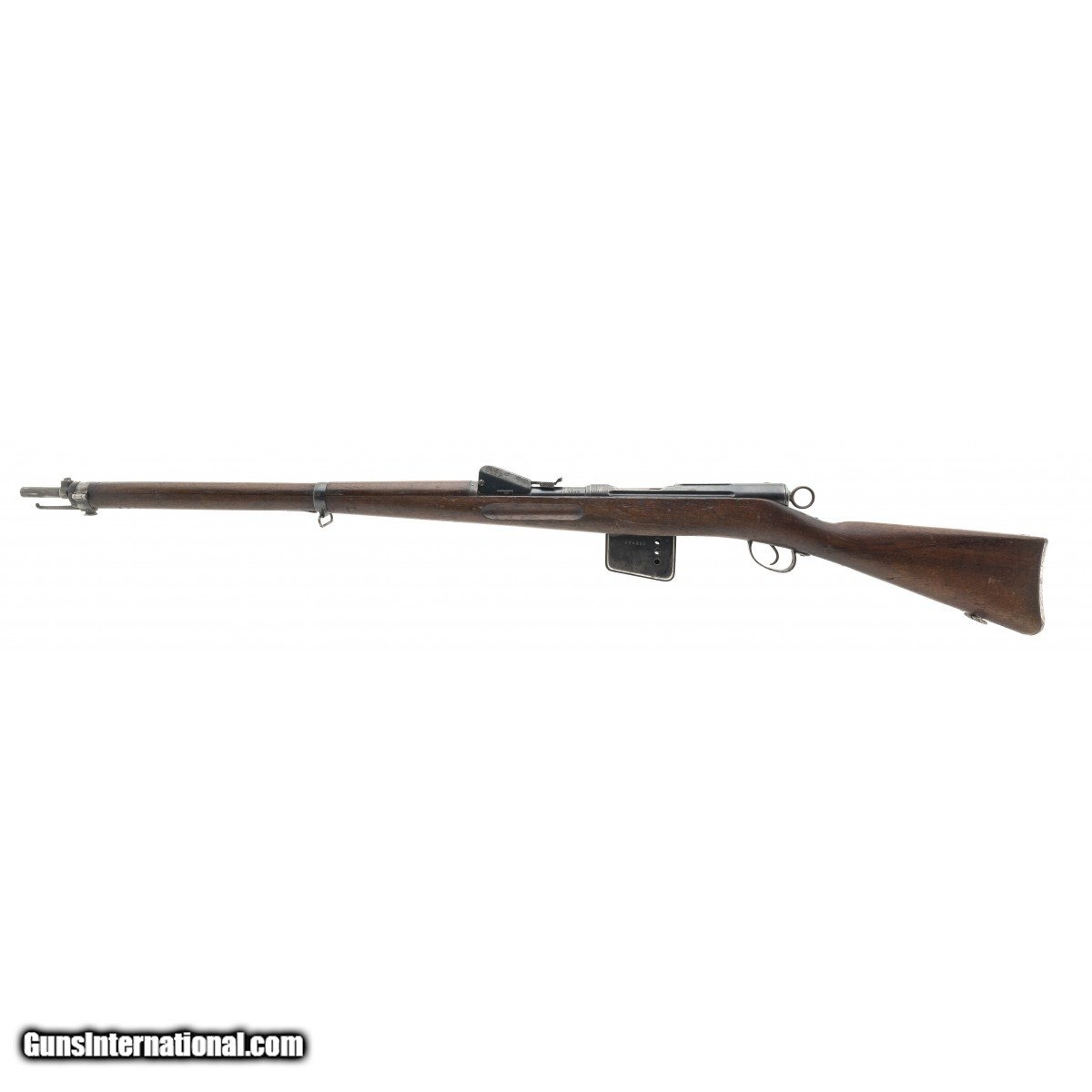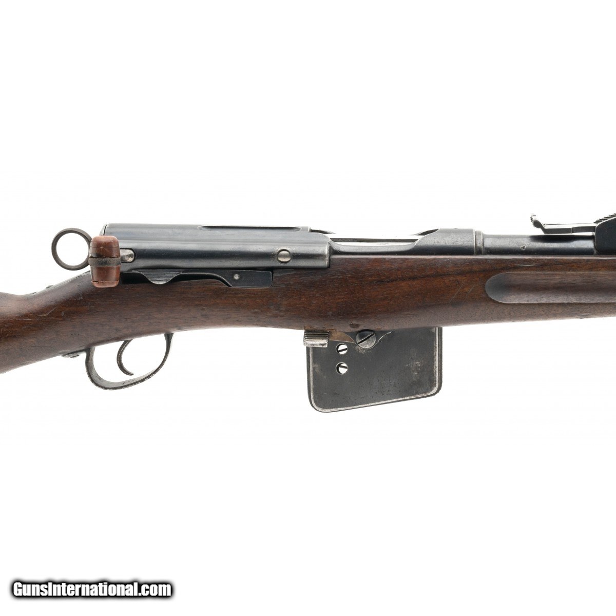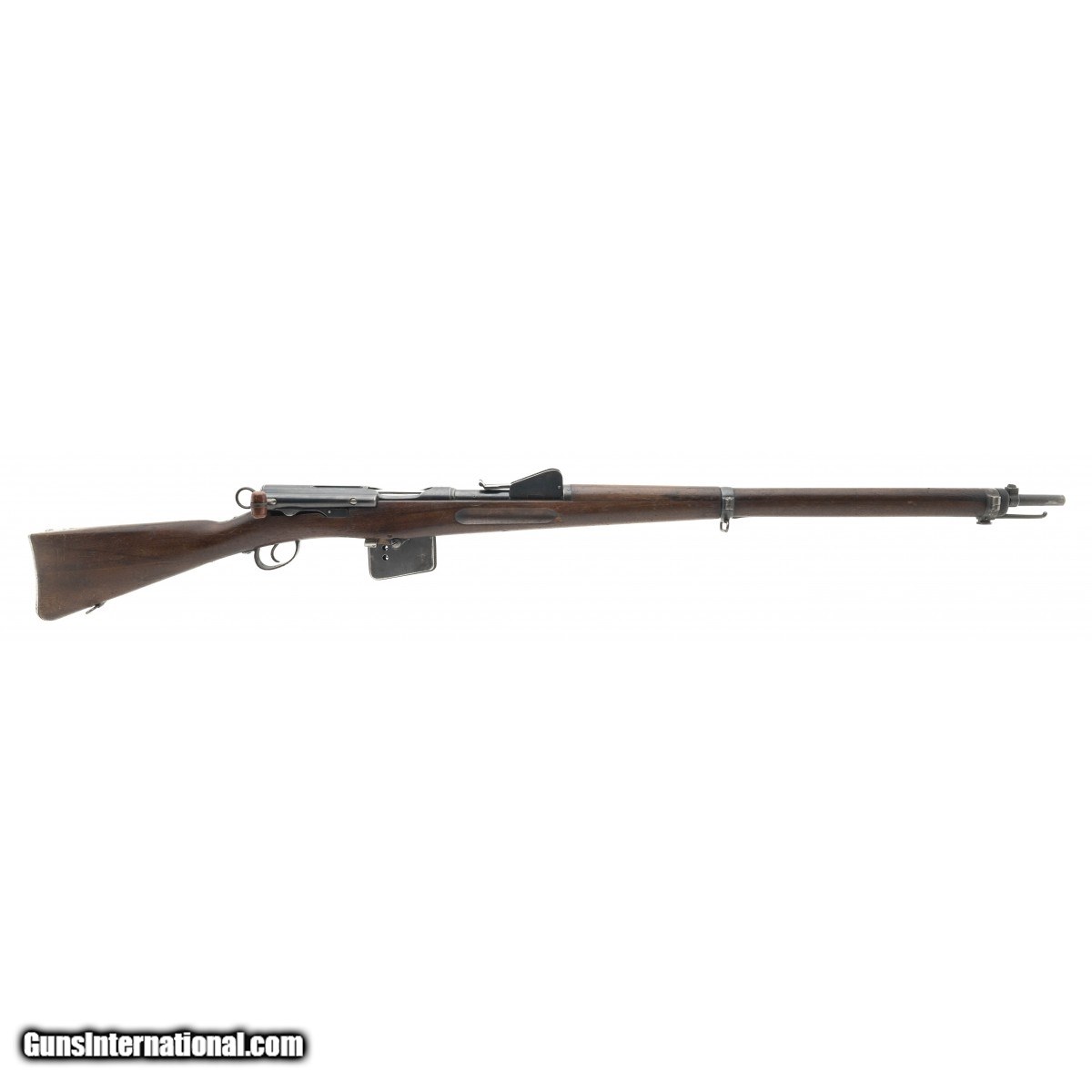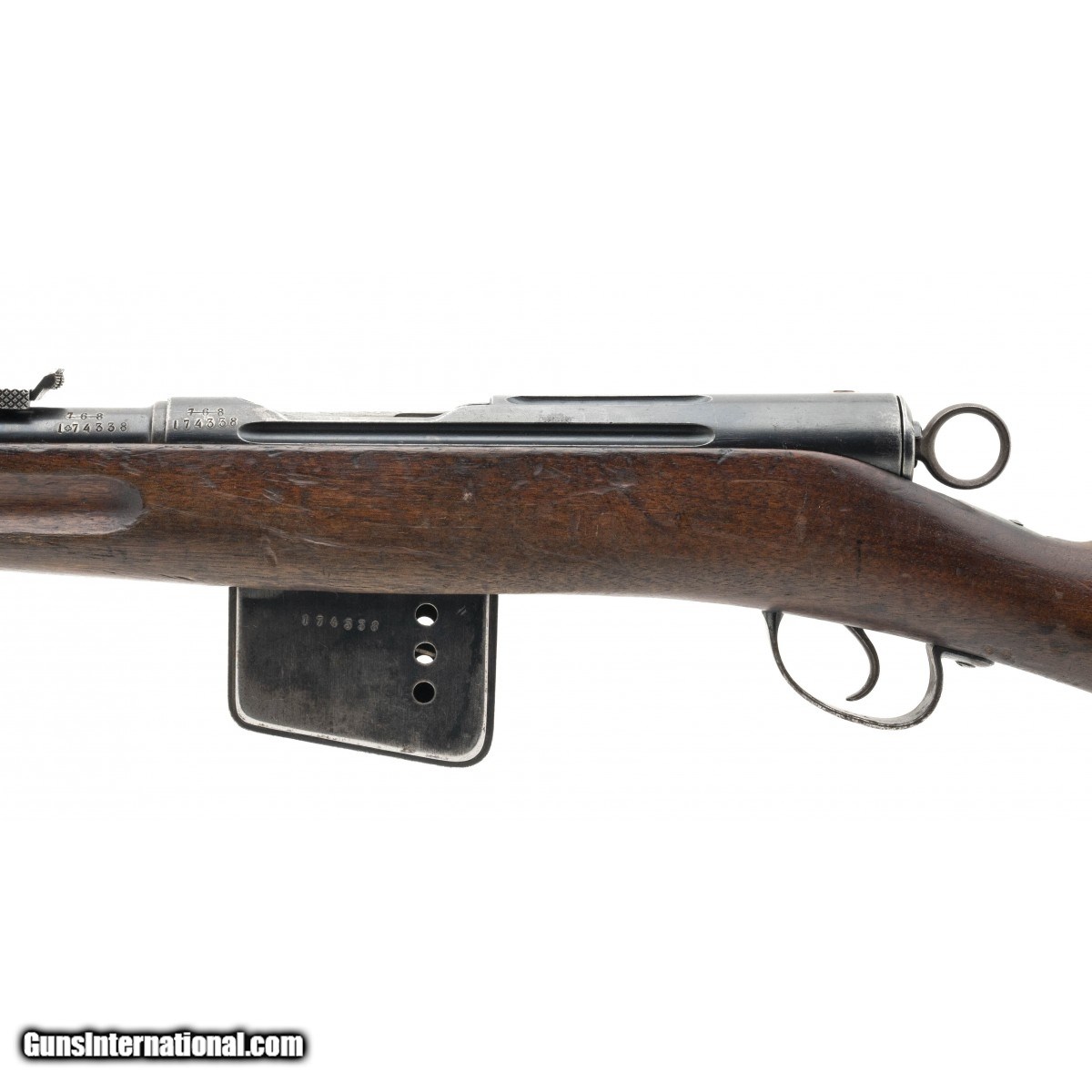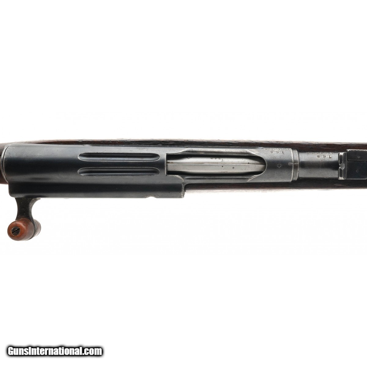 Description: " SN: 174338. Circa 1895. Chambered in 7.5x53.5mm Swiss with a 31"" barrel, bore is. Swedish military rifle with straight pull bolt, 12rd detachable magazine and quadrant rear sight. Overall very good condition. (Consignment) SOLD |