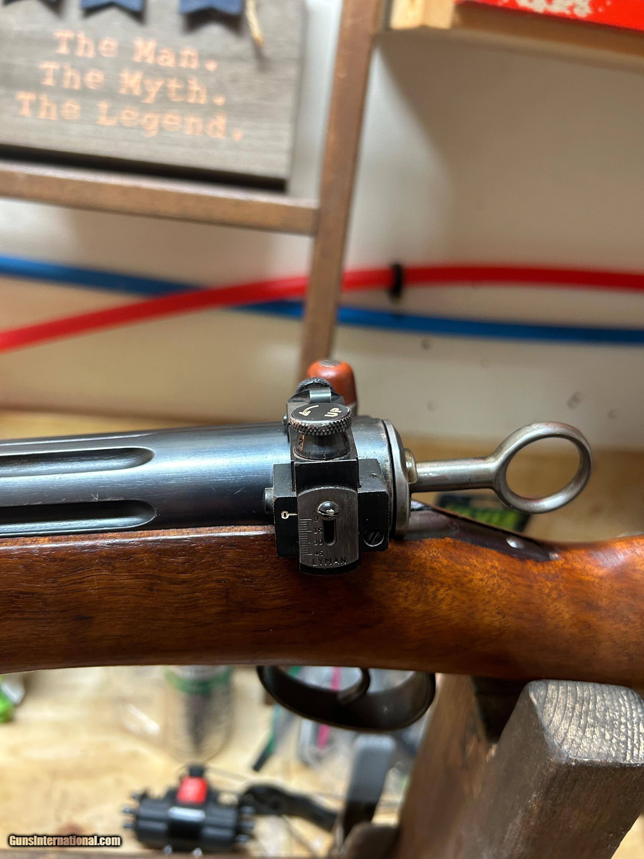 7.5x55 Schmidt Rubin Swiss model 1889. Really clean and matching numbers gun. Lyman peep sight.