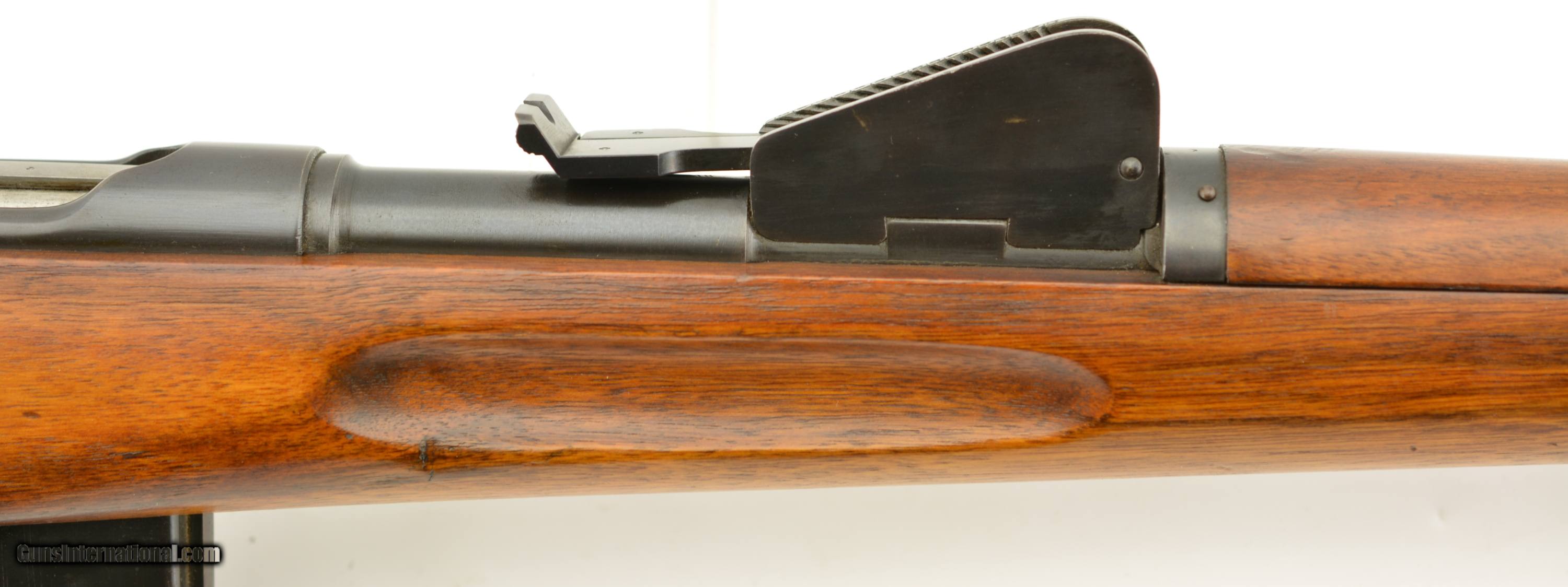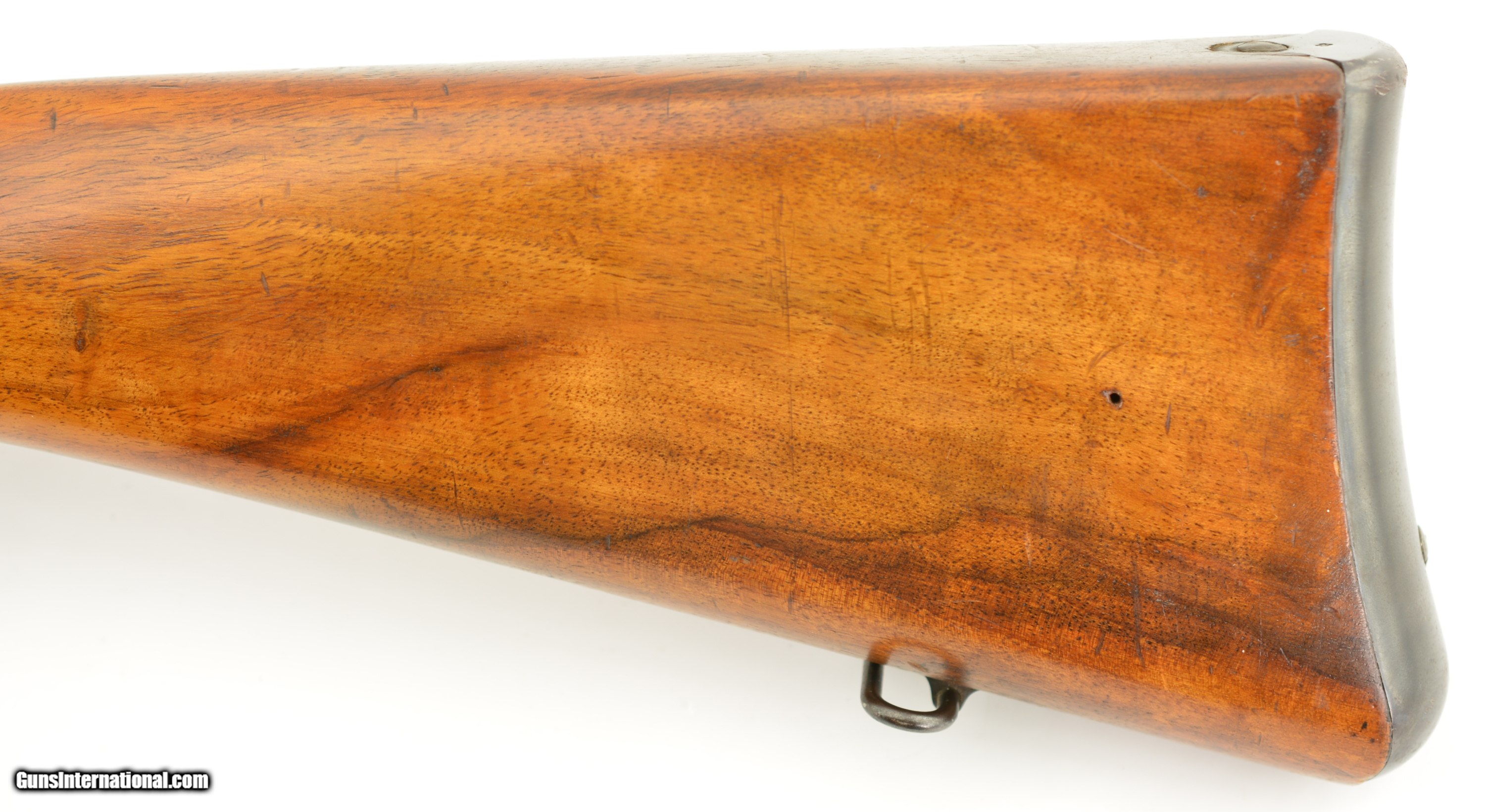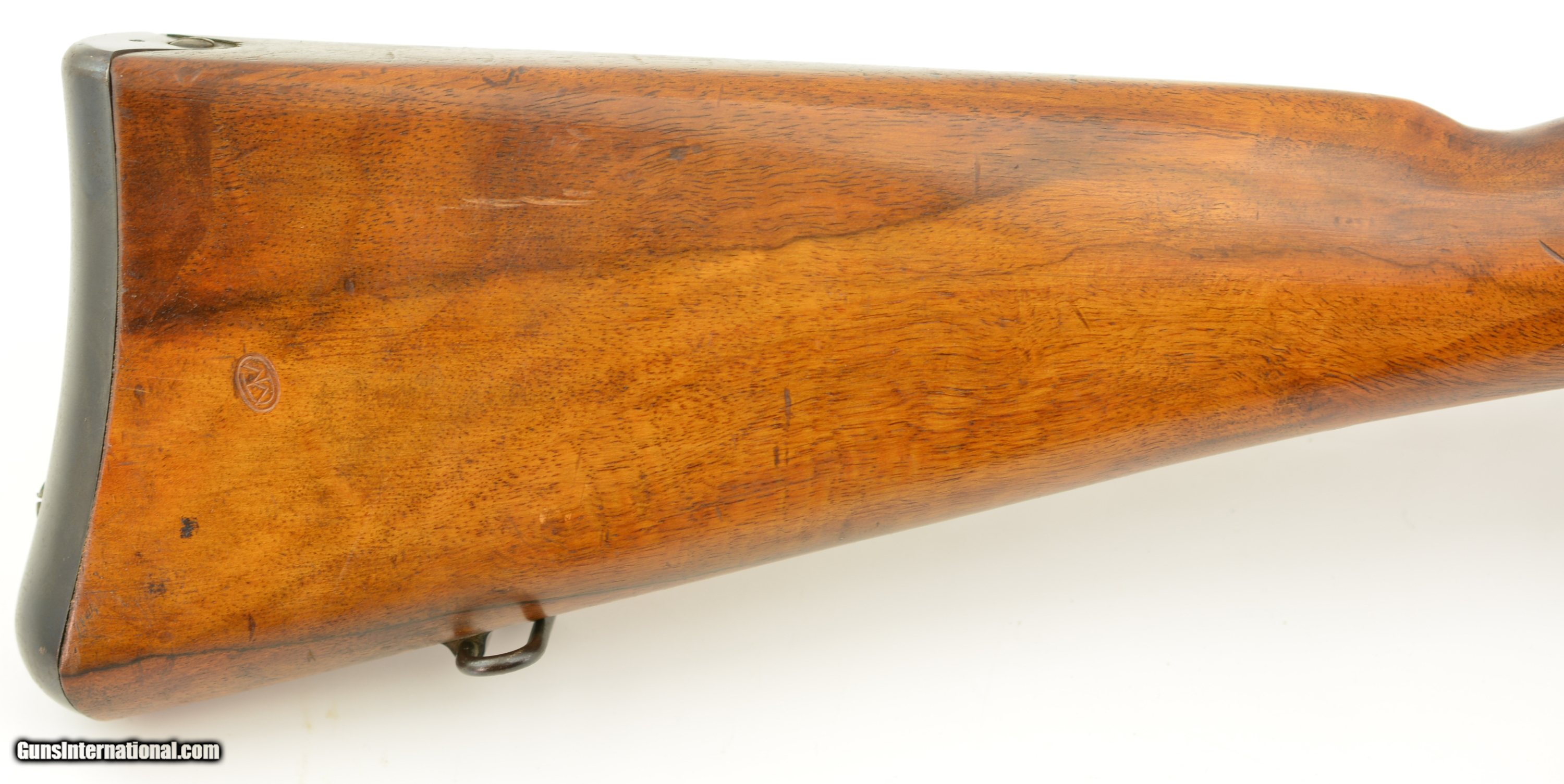 Description: Serial #16, 7.5mm Swiss, 30 3/4" barrel with an excellent, bright bore. This is an extremely early production example of the Swiss Model 1889 straight-pull Schmidt-Rubin rifle and retains 92-95% of the original blue finish that has silvered at the muzzle, as well as along the raised surfaces and projections. The matching-numbered bolt has its original arsenal bright finish with some dulling over time, and the red-brown resin handle is intact. The wooden stock and handguard have an armory added varnish finish over some small handling marks and minor blemishes throughout. The rifle is also accompanied by a correct, sheet metal muzzle-cover, and rates fine-near excellent overall. This is a fabulous early Schmidt-Rubin, likely assembled on the first day of production, and would make a splendid addition to any collection. Antique SOLD Antique: Yes Manufacturer: Swiss Model: Schmidt-Rubin Serial Number: 16 Caliber Info: 7.5mm Gauge Info: 7.5mm |
