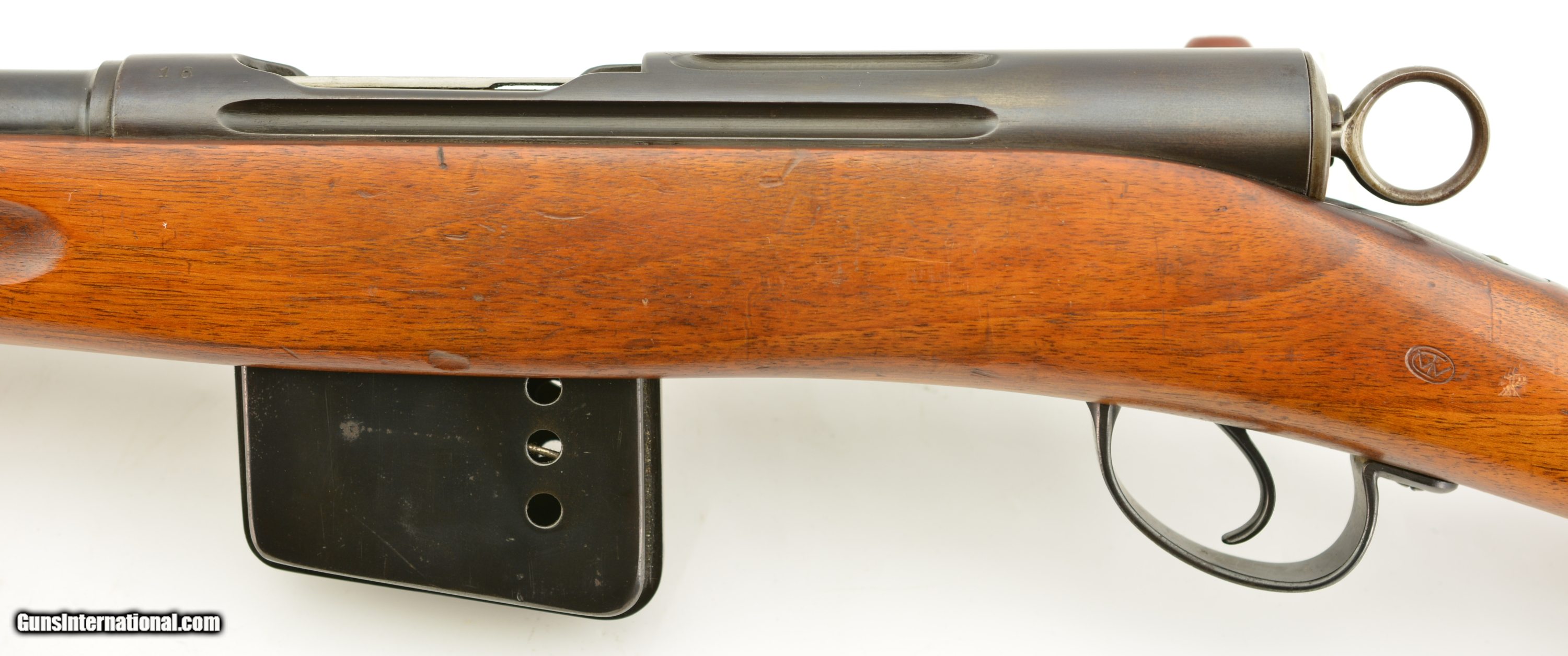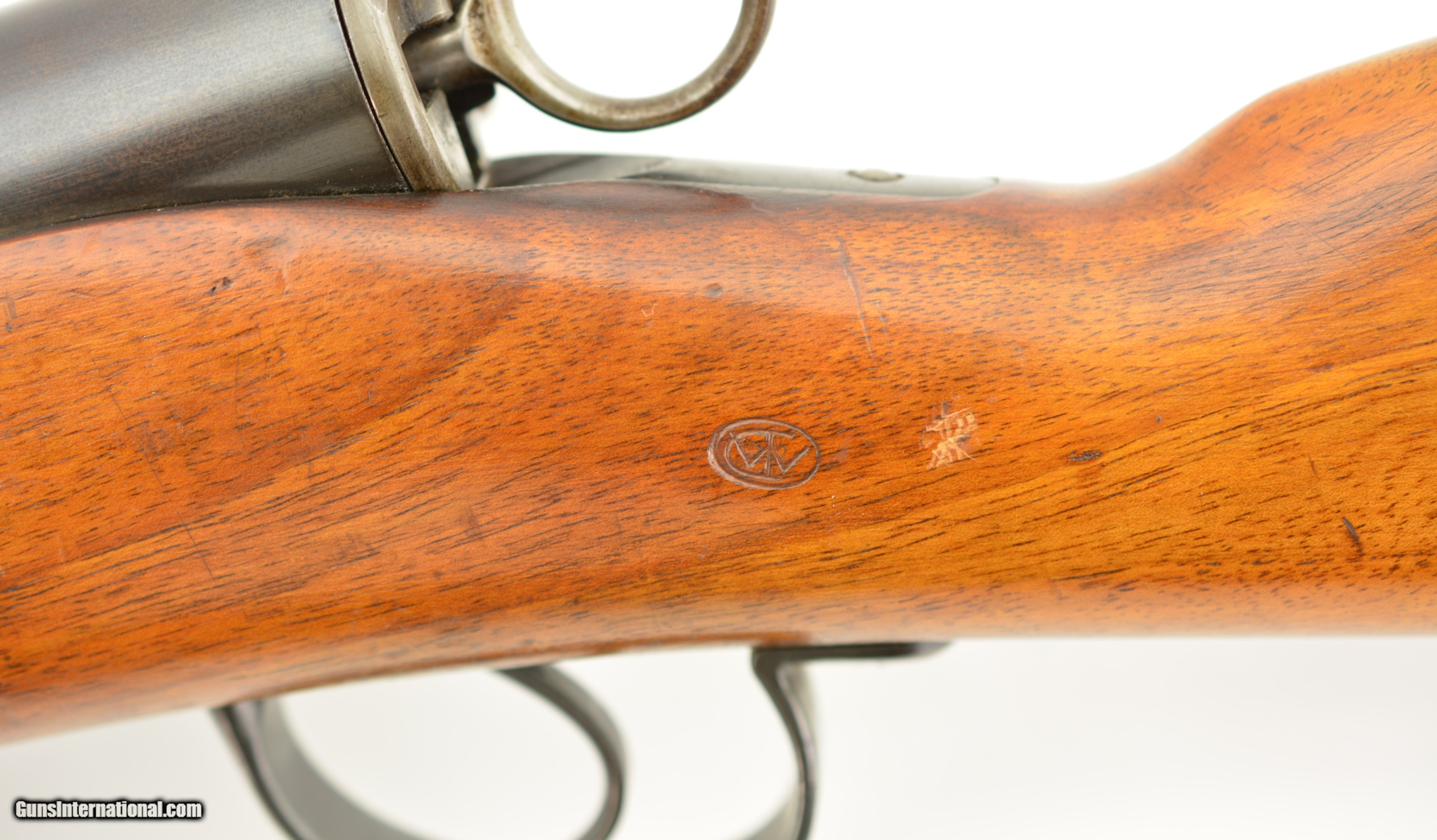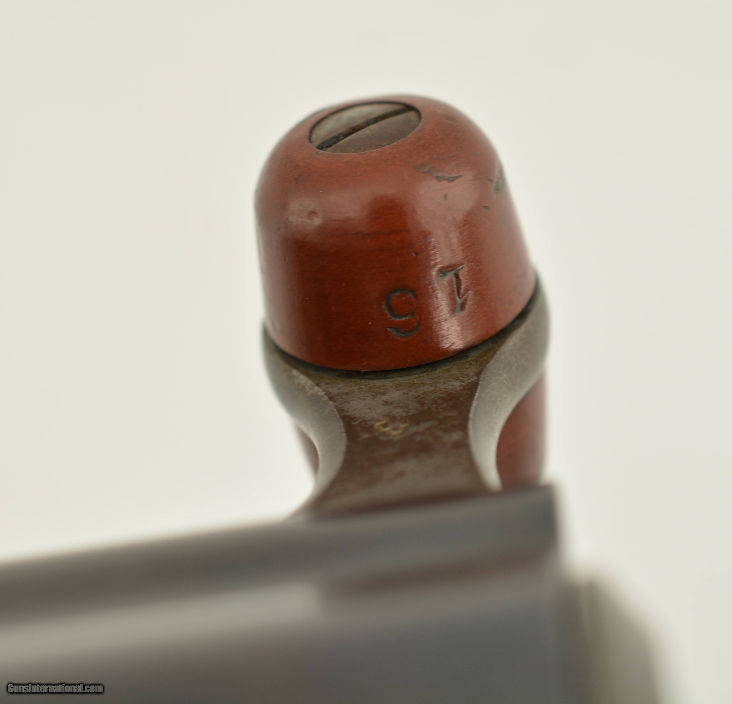 Description: Serial #16, 7.5mm Swiss, 30 3/4" barrel with an excellent, bright bore. This is an extremely early production example of the Swiss Model 1889 straight-pull Schmidt-Rubin rifle and retains 92-95% of the original blue finish that has silvered at the muzzle, as well as along the raised surfaces and projections. The matching-numbered bolt has its original arsenal bright finish with some dulling over time, and the red-brown resin handle is intact. The wooden stock and handguard have an armory added varnish finish over some small handling marks and minor blemishes throughout. The rifle is also accompanied by a correct, sheet metal muzzle-cover, and rates fine-near excellent overall. This is a fabulous early Schmidt-Rubin, likely assembled on the first day of production, and would make a splendid addition to any collection. Antique SOLD Antique: Yes Manufacturer: Swiss Model: Schmidt-Rubin Serial Number: 16 Caliber Info: 7.5mm Gauge Info: 7.5mm |