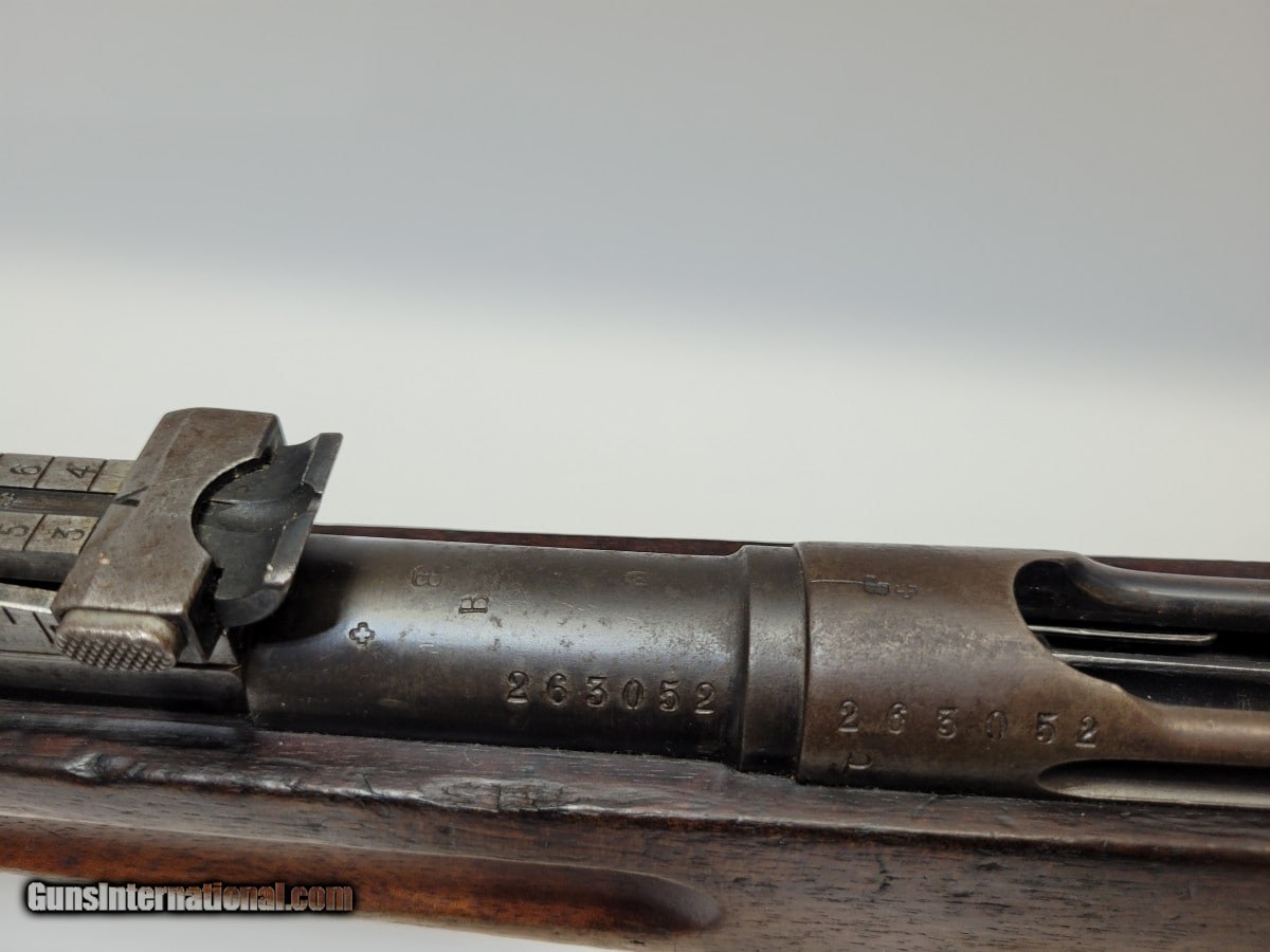 Description: Guns Listing ID: 932707 This Swiss M1911 is in good condition. Some spotting in the bluing. An older model An improvement over the original 1889 version of the Schmidt–Rubin rifle, the Swiss M1911 placed the locking lugs in the middle of the bolt, rather than at the rear, strengthening the action and allowing a more powerful cartridge, the Gewehrpatrone 11 or GP 11 to be used. It is distinguished from the 96/11 rifle by a curved buttplate and by a stock with an integral semi-pistol grip. It uses a graduated tangent sight which begins at 300 meters. The 1911 and 96/11 rifles are characterized by exceptional accuracy and were made with excellent craftsmanship. The fact that Switzerland remained neutral through both world wars ensured that they are in far better condition, on average, than the rifles of other European nations from that vintage. SOLD Manufacturer: SCHMIDT-RUBIN Model: m1911 Caliber Info: 7.5X55MM SWISS Condition: Used - Non-Certified Barrels: 22 BARREL Finish: BLACK /W WOOD STOCK |