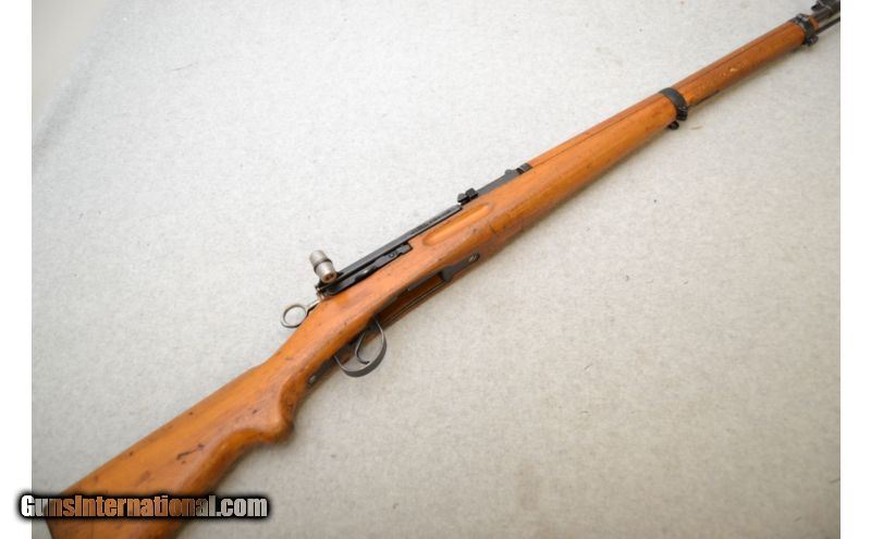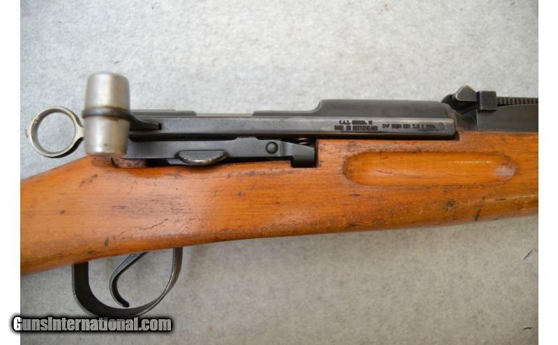 Description: Overall condition of this rifle is good. The metal has moderate finish wear near the muzzle and the hard edges of the receiver. The stock shows its age with moderate signs of use but is free of cracks. The bore is in excellent condition with strong rifling and healthy shine. SOLD Curio/Relic: Yes Caliber Info: 7.5x55mm Swiss Chambers: Straight-pull bolt-action fed from a detachable magazine. Metal Condition: Fair to good. Wood Condition: Fair to good. Bore Condition: Excellent. Barrels: 25 1/2" Blued. Triggers: Narrow blued metal with smooth surface. Stock: Wood stock. Stock Dimensions: 12 3/4" LOP Fore End: Wood enclosing the barrel. Butt Pad: Metal plate. Weight: 8lbs 6oz Sights: Rear tangent sight with front blade. Extras: This rifle comes with a single magazine and the rear sling clip. Item Location: Green Bay, WI |