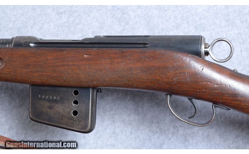 Description: The Model 1889 was the first in the series of Schmidt–Rubin rifles which served Switzerland from 1889 to 1953. The rifle takes its name from the designer of its action, Colonel Rudolf Schmidt, and the designer of its ammunition, Colonel Eduard Rubin. Production of the rifle began in 1891. The straight-pull bolt action allows the user to pull the bolt straight back to unlock the action, cock the striker, extract, and eject the spent cartridge in one motion, and then push the bolt forward to chamber a round and lock the action. The Schmidt–Rubin 1889 was an advanced weapon for its time. The Schmidt–Rubin 1889 was one of the first rifles to use copper-jacketed ammunition as its standard ammunition. The Model 1889 was eventually replaced by its successor models, including the Model 1896, Model 96/11, Model 1911, Model 1911 carbine, and the famous K-31. This Model 1889 does not have any import markings and all of the serialized parts are matching, including the receiver, barrel, bolt, butt plate, and magazine. It includes the front sight/muzzle protector. It is in very good condition. 7.5 x 53.5 mm SOLD Metal Condition: Very good Wood Condition: Very good Bore Condition: Very good Barrels: 31 Stock Dimensions: 12" Length of Pull Butt Pad: Steel serialized butt pad Weight: 11 lbs Sights: Open sights adjustable from 300 to 2000 meters. See photo. Item Location: Boise, ID |