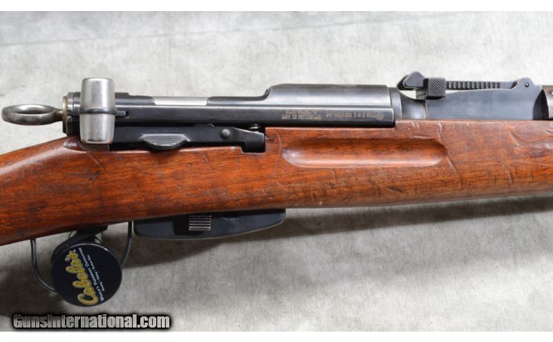 Description: Description: The Swiss K31 battle rifle features full beechwood stock, a straight-pull bolt, two-stage military trigger, guarded post and ladder style combat sights and it has a nice beechwood stock. The S/N's on the receiver, the bolt, and the barrel match. SOLD Chambers: 6 round detachable magazine. Metal Condition: Very good. There may be a few handling marks. All stampings are sharp and clean. Firearm, magazine and bolt s/n's match. Wood Condition: Very good. It appears to have the original shellac finish. Bore Condition: A little dark but shiny and good rifling. Barrels: 24 inch barrel with combat sights. Triggers: Two stage military trigger. Stock: Beechwood military stock. Stock Dimensions: 12 - 1/2 inch LOP. Fore End: Beech heat shield. Butt Pad: Curved steel plate. Weight: 8 lb. - 14 oz. Sights: Guarded post and ladder style notch combat style sights. Extras: Box and one magazine. Item Location: Rogers,, MN |