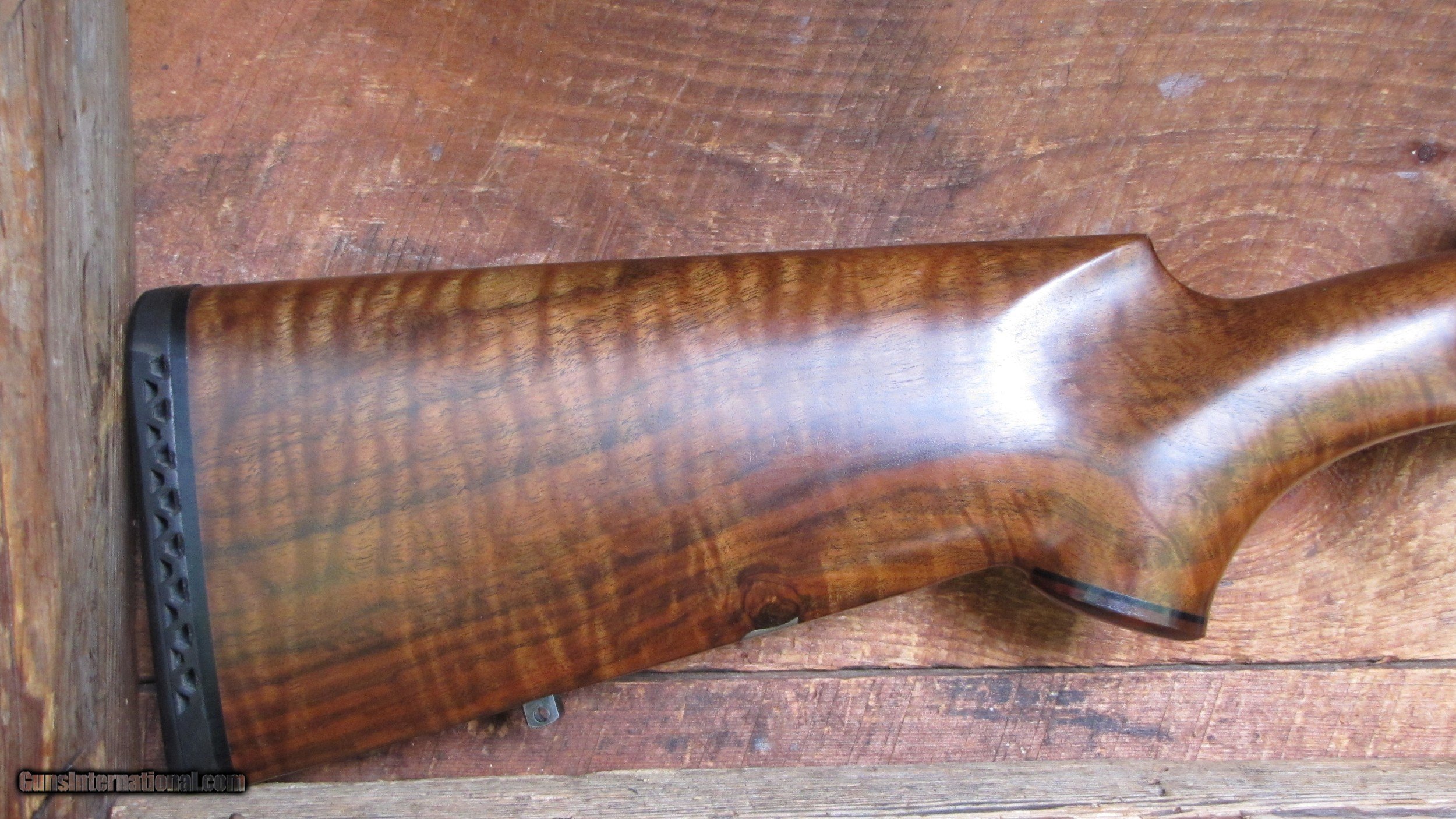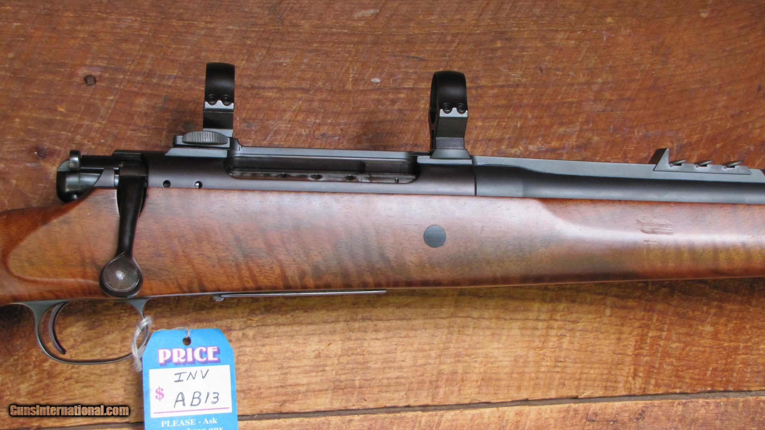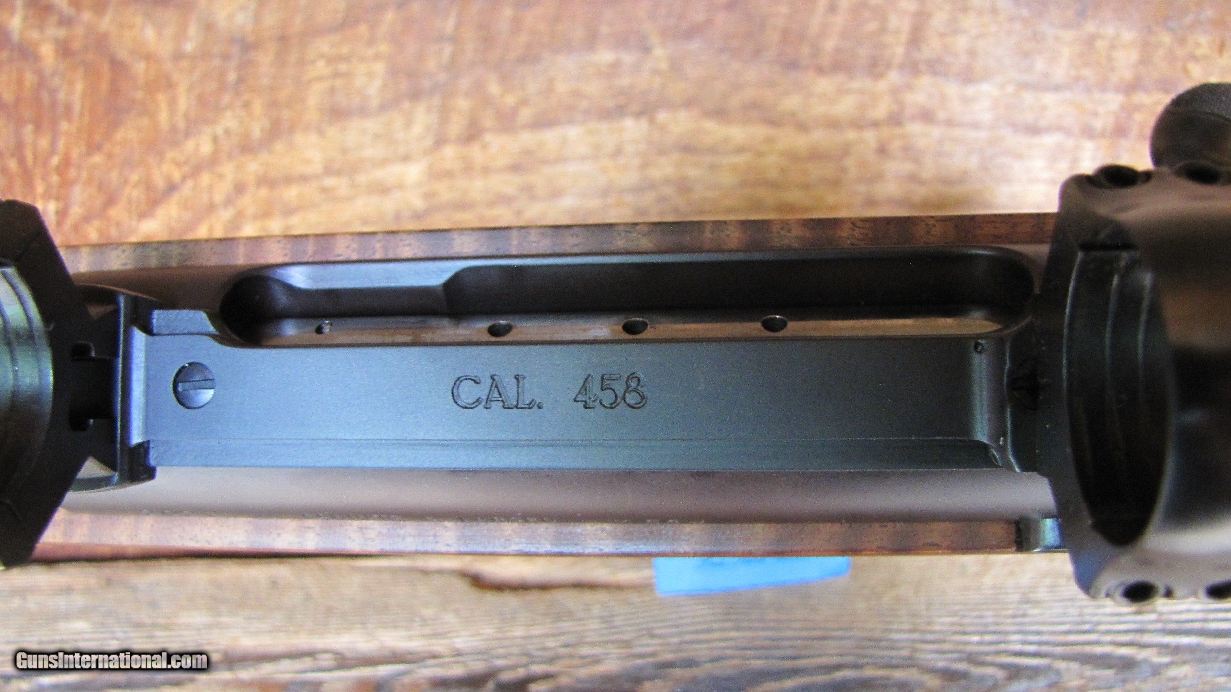 Description: Here is a beautiful rifle! It is a Schultz & Larsen M54J that has been custom gunsmithed into a very fine dangerous game rifle and is chambered in 458 Win Mag. The rifle has had a lot of work done to it to make it the fine rifle you see today. Lou Alessandri and Son in Rehobath Mass didi the custom work. It has been restocked in a beautiful piece of Walnut. Rebarreled and chambered in 458 Win Mag. The action has had an extra recoild point added to the rear of the received to protect the stock. A rib with 4 leaf (1 standing, 3 folding) express sight was added. The rib also has integral claw scope bases and a fitted set of rings is included. The stock has a nice silver shiel inlay with no markings on it yet. The bolt knob has been checkered. A 4th recoil point has been added in the form of a barrel band to which the front sling swivel attaches. The trigger is excellent. This rifle has some handling and use marks and a bunch of small marks on the cheek rest, probably from firing while wearing ear muff hearing protectors. Overall a fantastic, powerful rifle that can handle anything you throw at it. Just add the scope of your choice and set off to regions unknown! We are required to charge 8.25% Sales Tax for Texas residents. There is a 3.5% fee if paying by credit card. SOLD Rifle Caliber: .458 Winchester Magnum Manufacturer: Schultz & Larsen Model: M54J Serial Number: 2028 Barrel Length: 24 Condition: Very Good Metal Condition: Excellent Wood Condition: Very Good Bore Condition: Excellent |