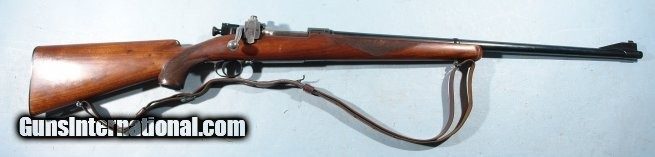 Description: R.F. SEDGELY SPRINGFIELD MODEL 1903 BOLT ACTION .30-06 CAL. SPORTING RIFLE CIRCA 1930’S. 24” barrel signed “F.R. SEDGELY INC. PHILA, PA. U.S.A.”. Serial number in Sedgely serial number in the bolt channel in the 4xx range with matching bolt. Lyman receiver sight and ramp front. Checkered walnut stock with schnoebel forend and steel checkered butt plate. Steel pistol grip cap. Custom trigger. All original and near mint with 99% plus blue. Stock with all the finish. Mint bore and perfect working order. Really nice unused Sedgely. With period leather sling. SOLD Curio/Relic: Yes |