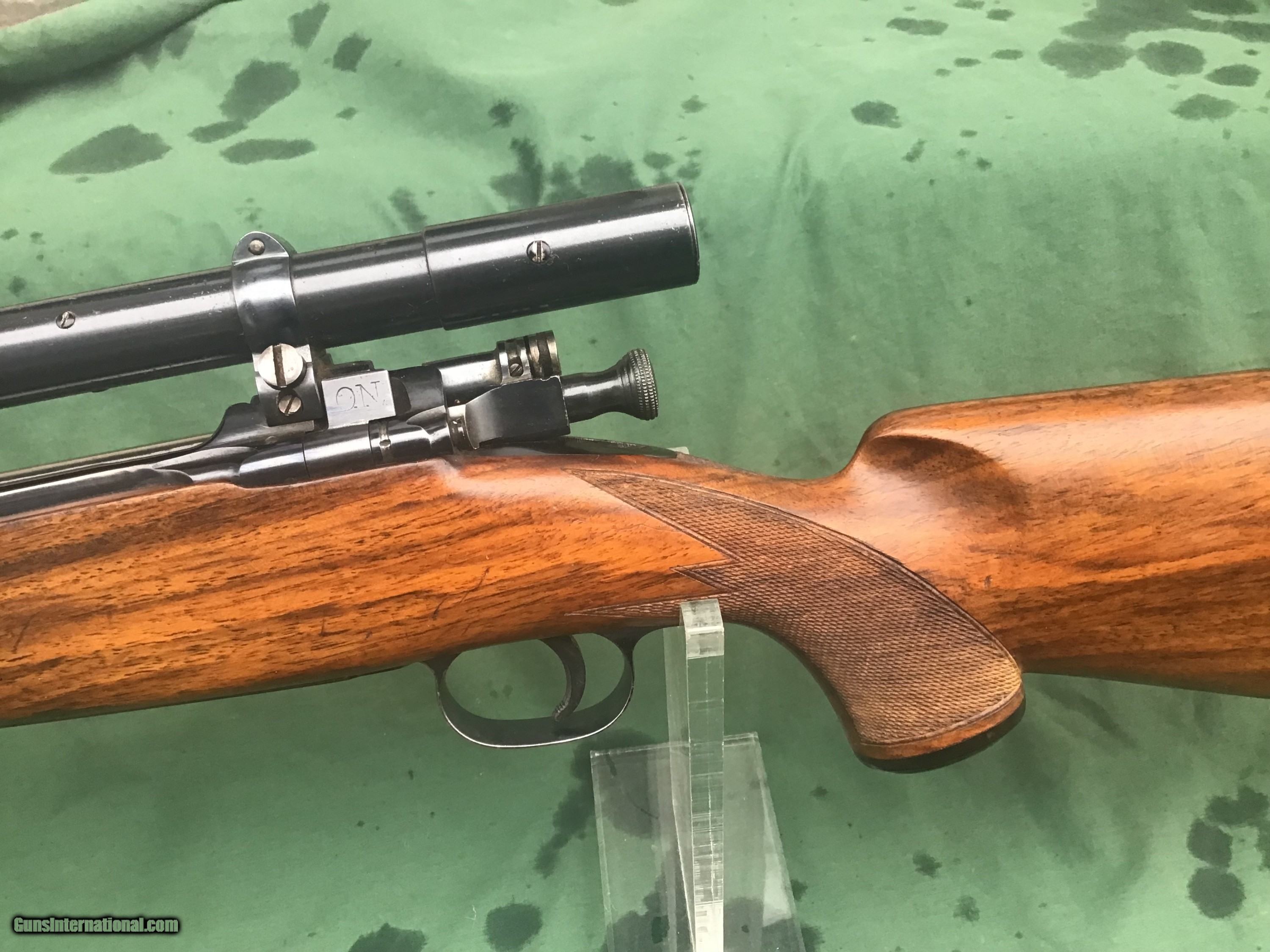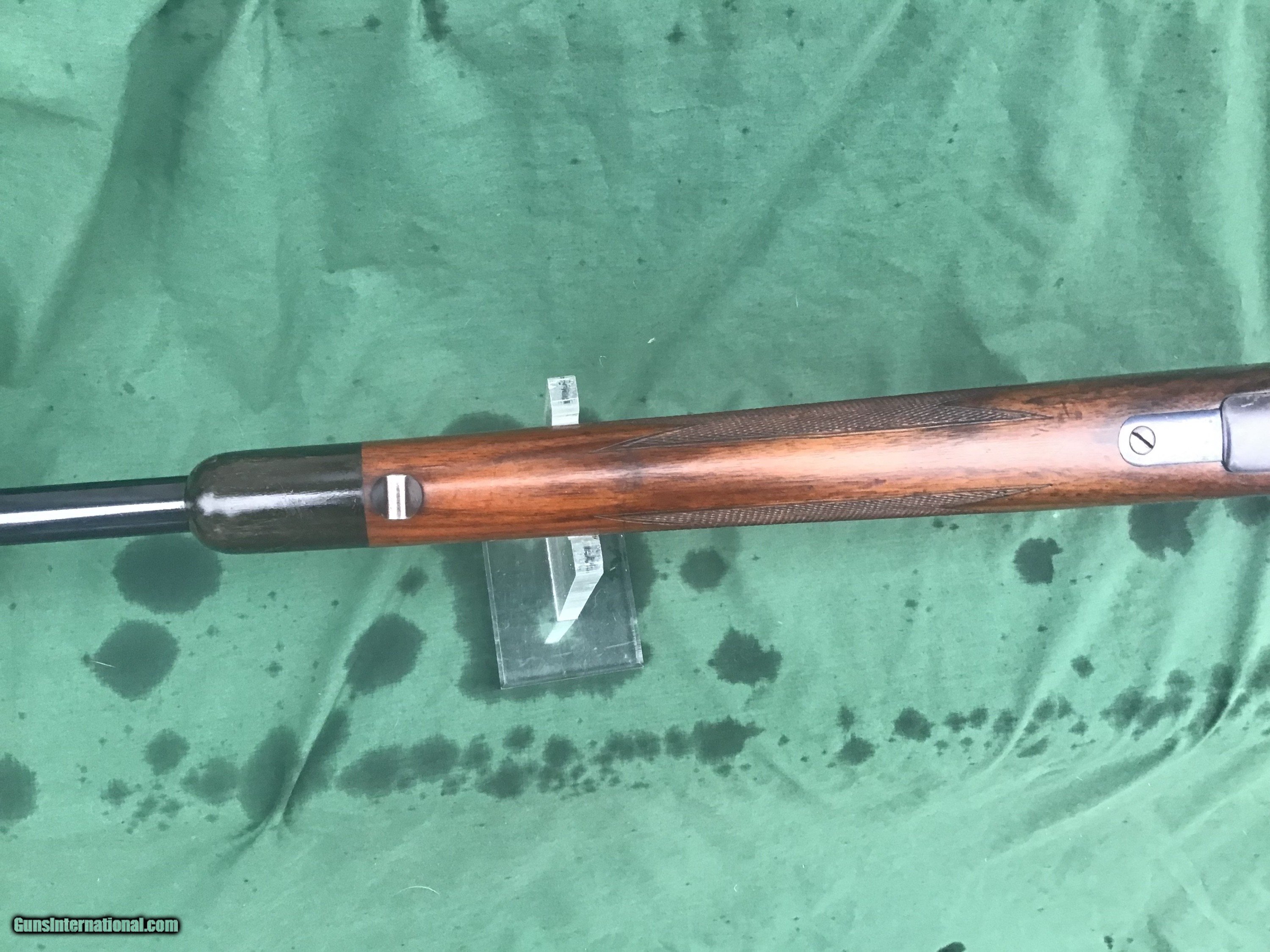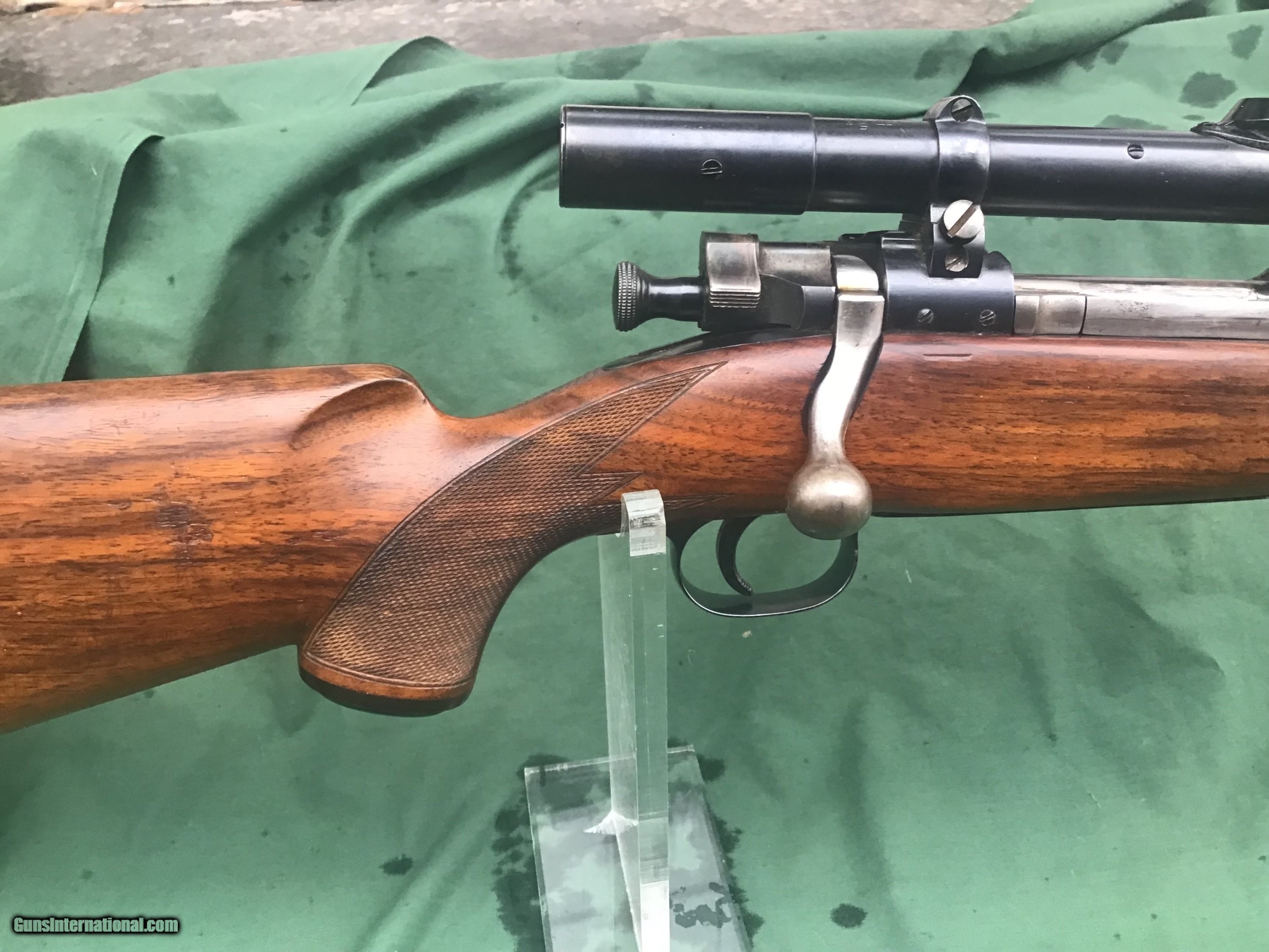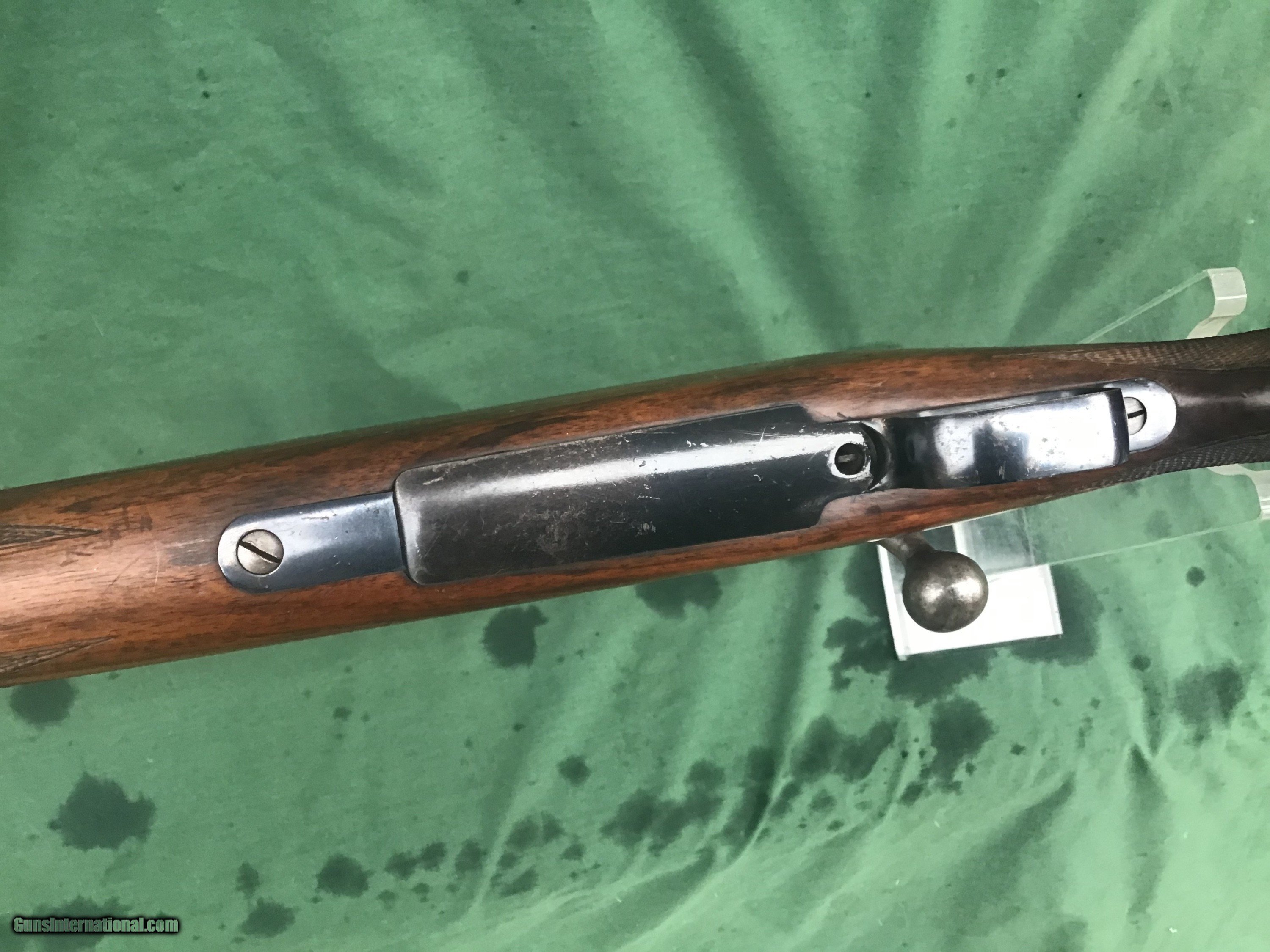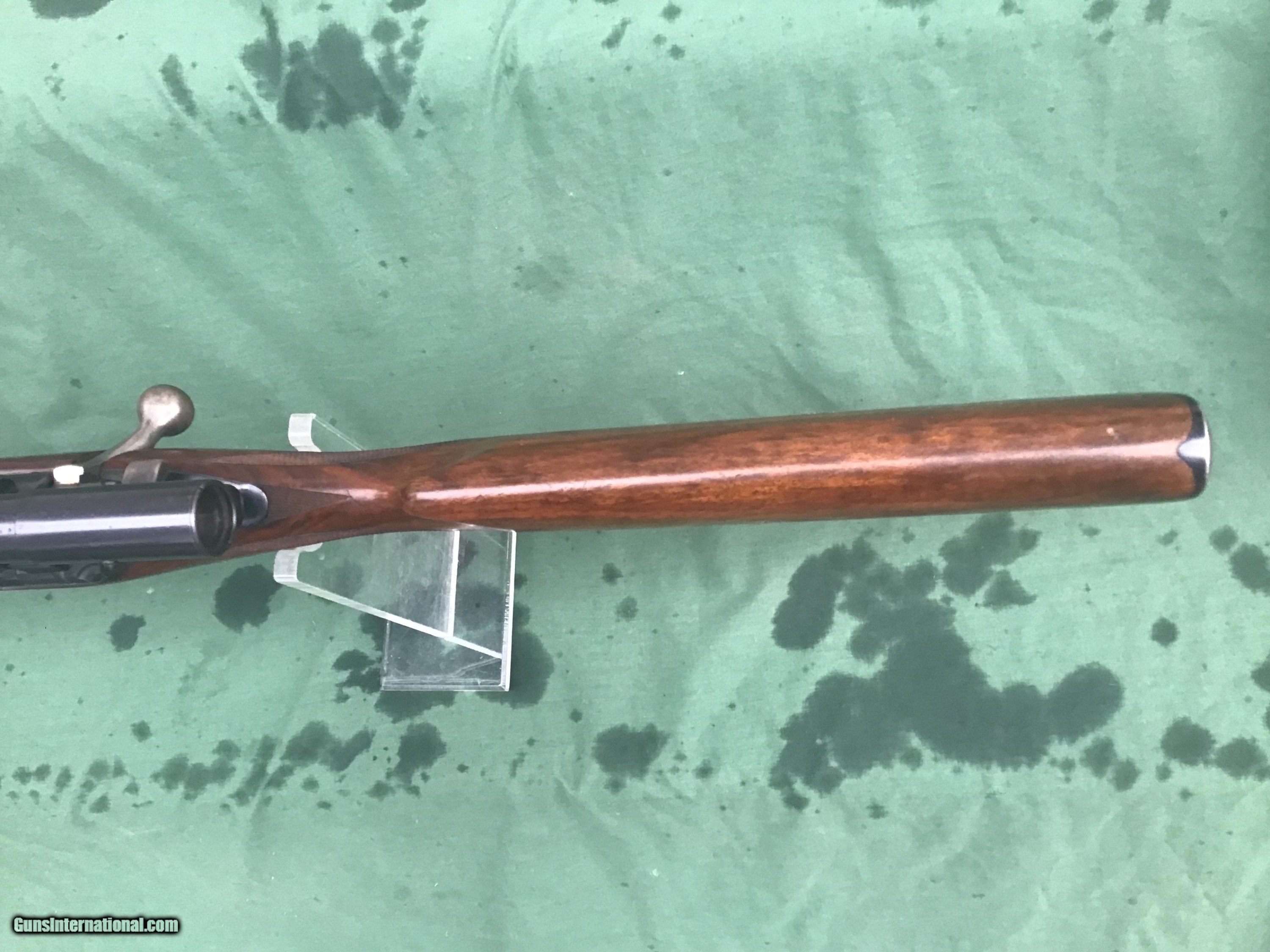 Description: Extremely rare Sedgley Custom Rifle in .22 Hornet. Built on 1903 Springfield Action, 24" inch barrel with a very nice bore. I will rate it at least an 8.5 on a scale from 1 to 10. It has a Carl Zeiss scope which has the vertical post and fine horizontal line (clear optics). Barrel shows 85 to 90% deep original blue. Case colors still showing on the safety. Barrel and scope do show handling marks. Stock in nice condition with swivels and horn tip. It shows the normal handling marks you would expect to see from a rifle of this vintage. Buttplate still showing original blue as well. Up for sale is just a well above average R.F. Sedgley Custom Rifle in a super rare caliber. Must ship to a FFL or Curio and Relics license holder. Please feel free to ask questions. SOLD Curio/Relic: Yes |