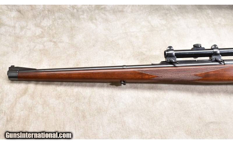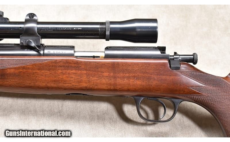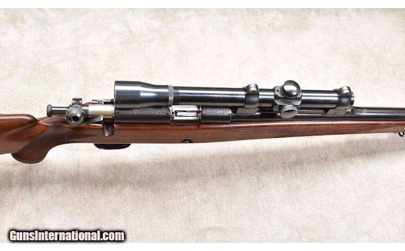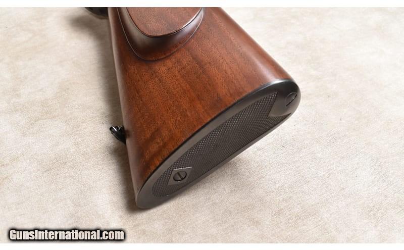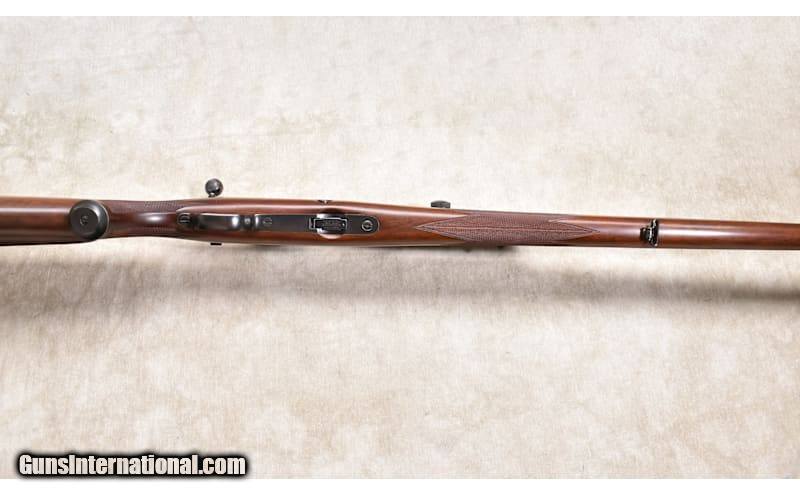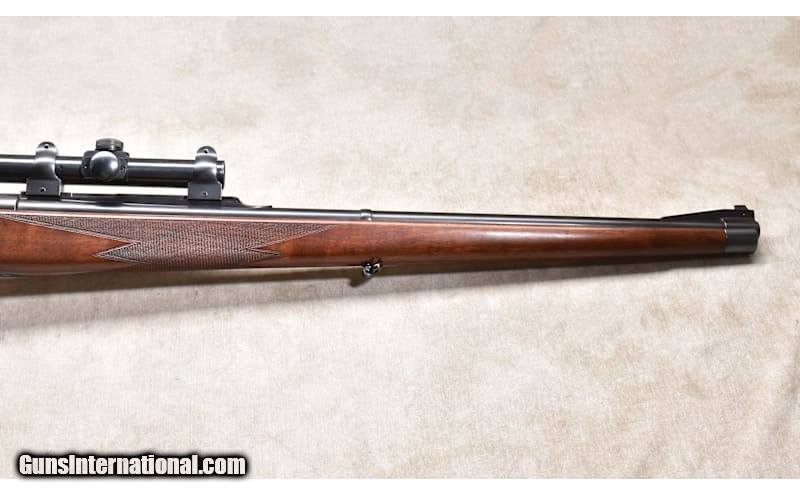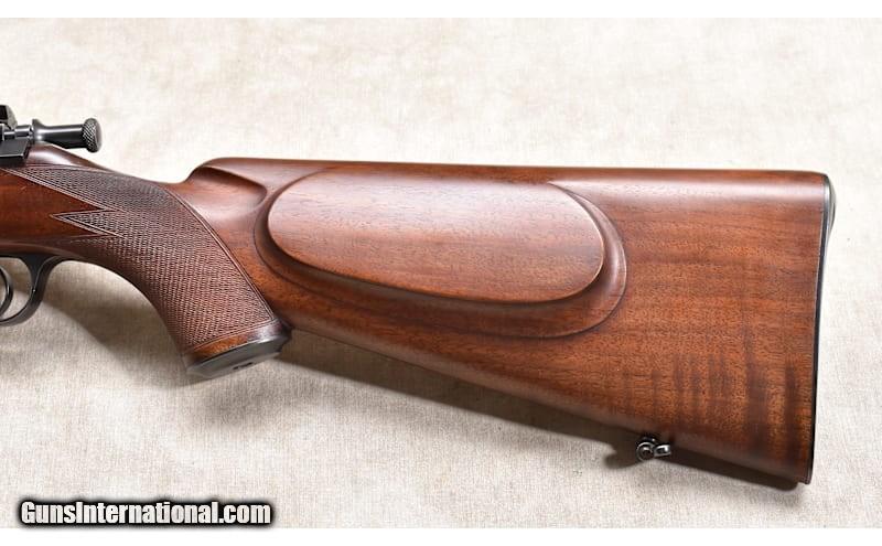 Description: This Custom Rifle was crafted by R.F. Sedgley, starting with a Winchester Model 52 action. The metal parts have all been expertly polished and blued. The stock is a custom full-length high grade walnut, in the Manlicher pattern, with a cheek piece. It has a Lyman Alaskan telescopic sight with fine cross-hairs. The Model 52 action dates to 1927, so the rifle was probably crafted in the 1930s. It is in excellent condition, with no discernable defects. It has been handled with care and doesn't appear to have been fired much, if at all. .22 Long Rifle SOLD Chambers: 5 rounds Metal Condition: Excellent. Wood Condition: Excellent. Bore Condition: Shiny and bright with crisp rifling. Barrels: 23-1/2 inches Triggers: Factory trigger. Stock Dimensions: LOP: 13-3/8 inches Fore End: "Full-length, Mannlicher-type, high grade walnut stock, with cheek piece. Butt Pad: Steel plate Weight: 8 lb - 13 oz Sights: "Silver bead front sight, set up for scope. Outfitted with a Lyman Alaskan, All-Weather, scope in Griffin and Howe scope mount. Item Location: Rogers |