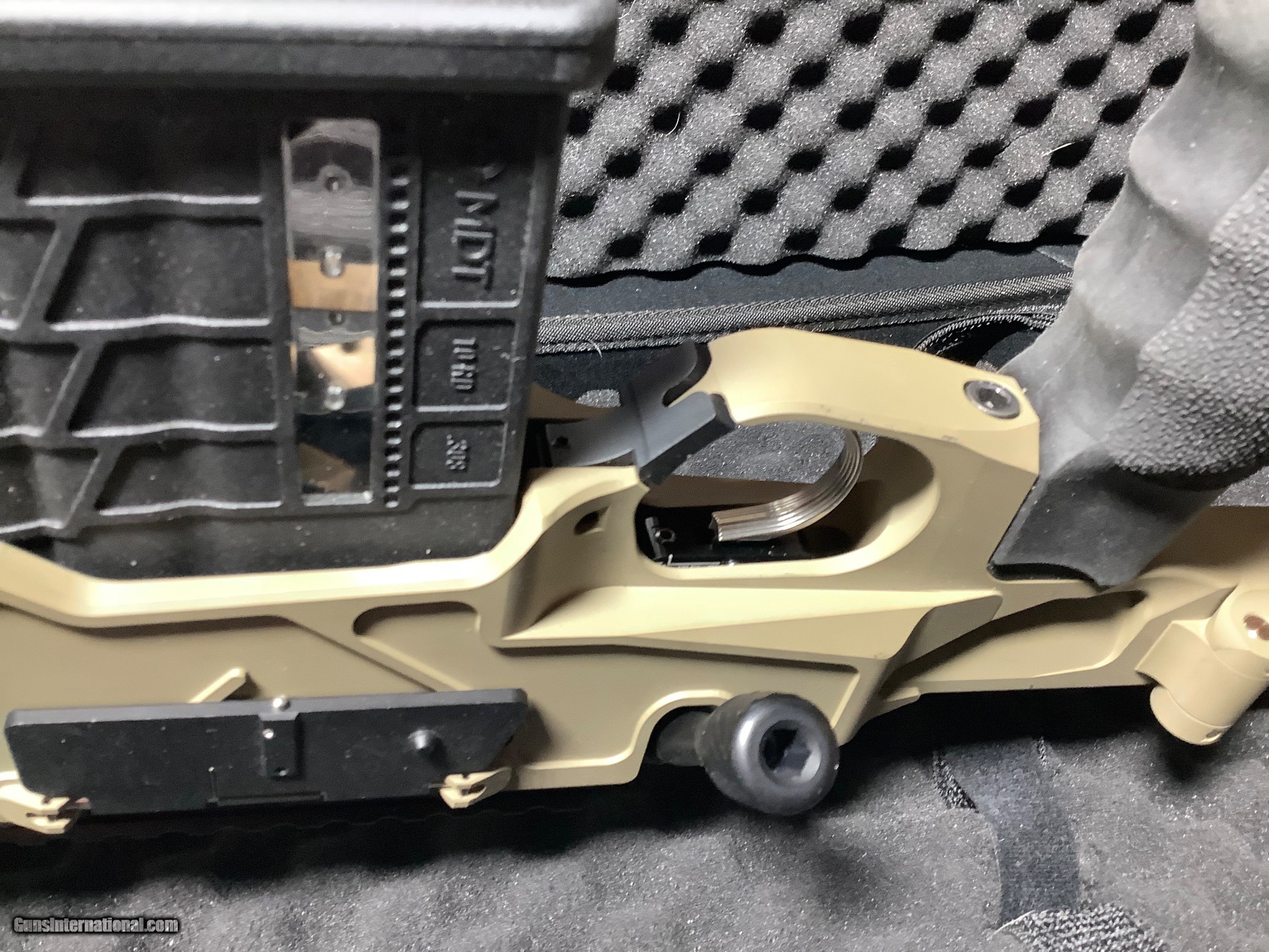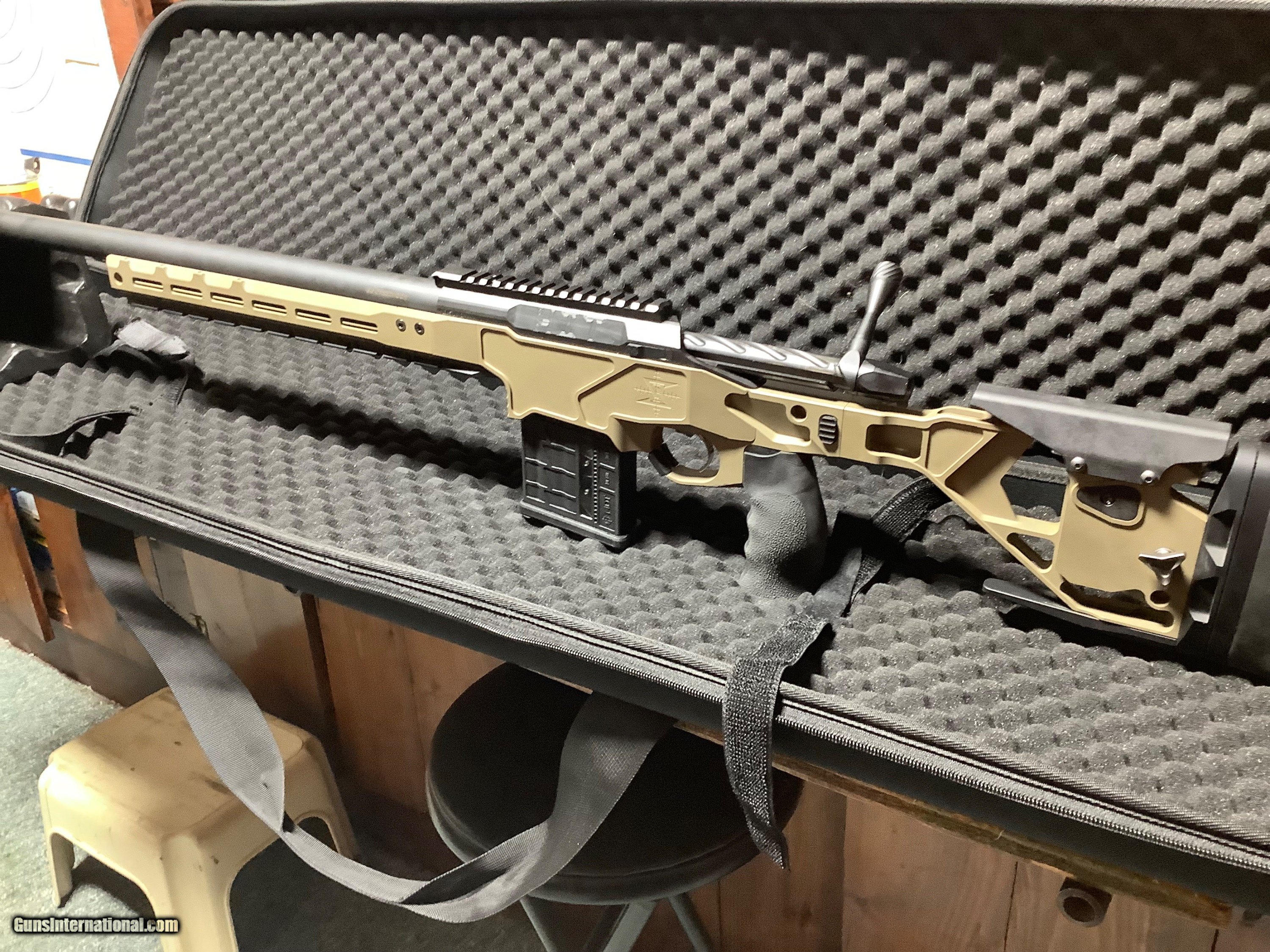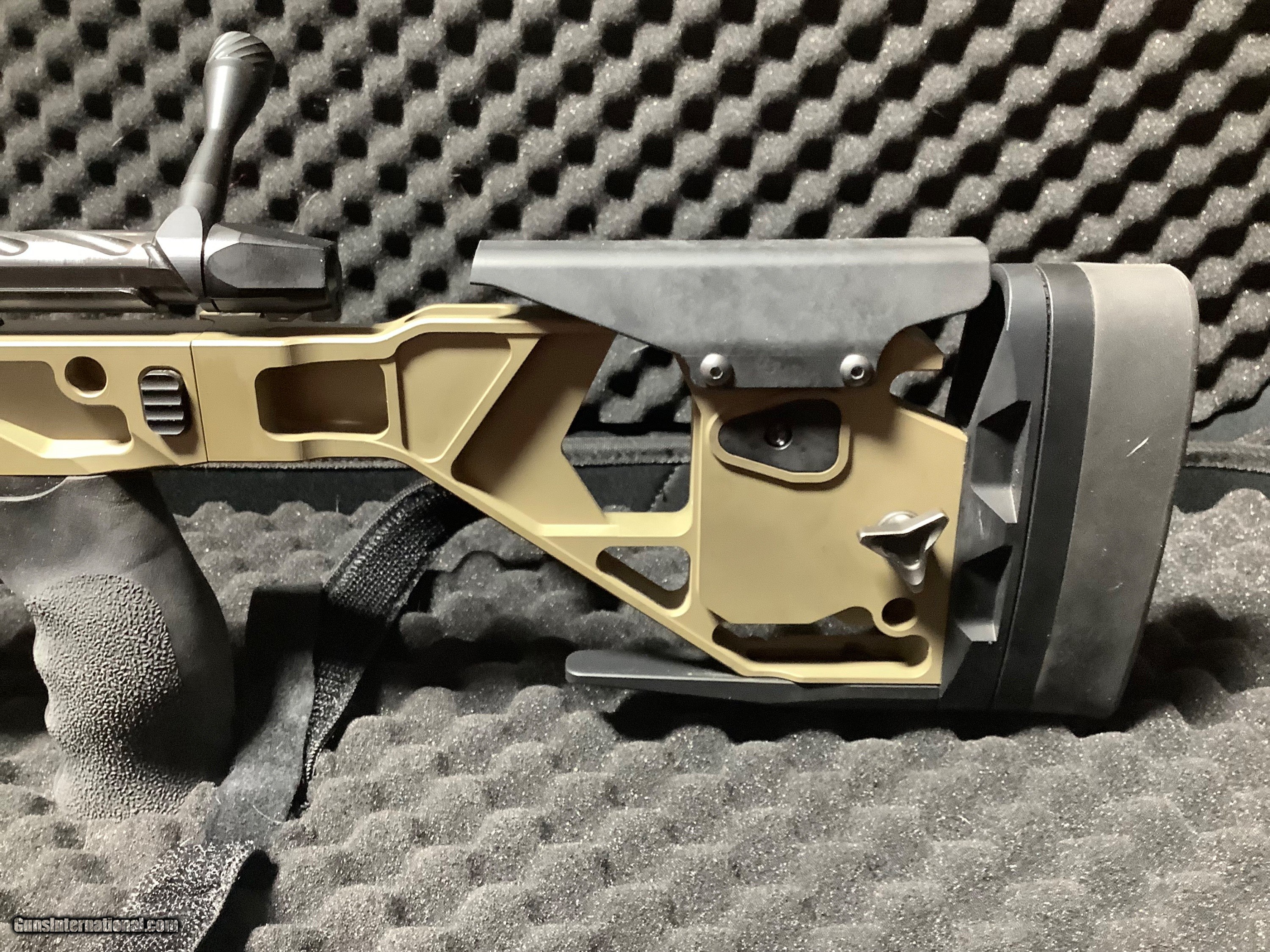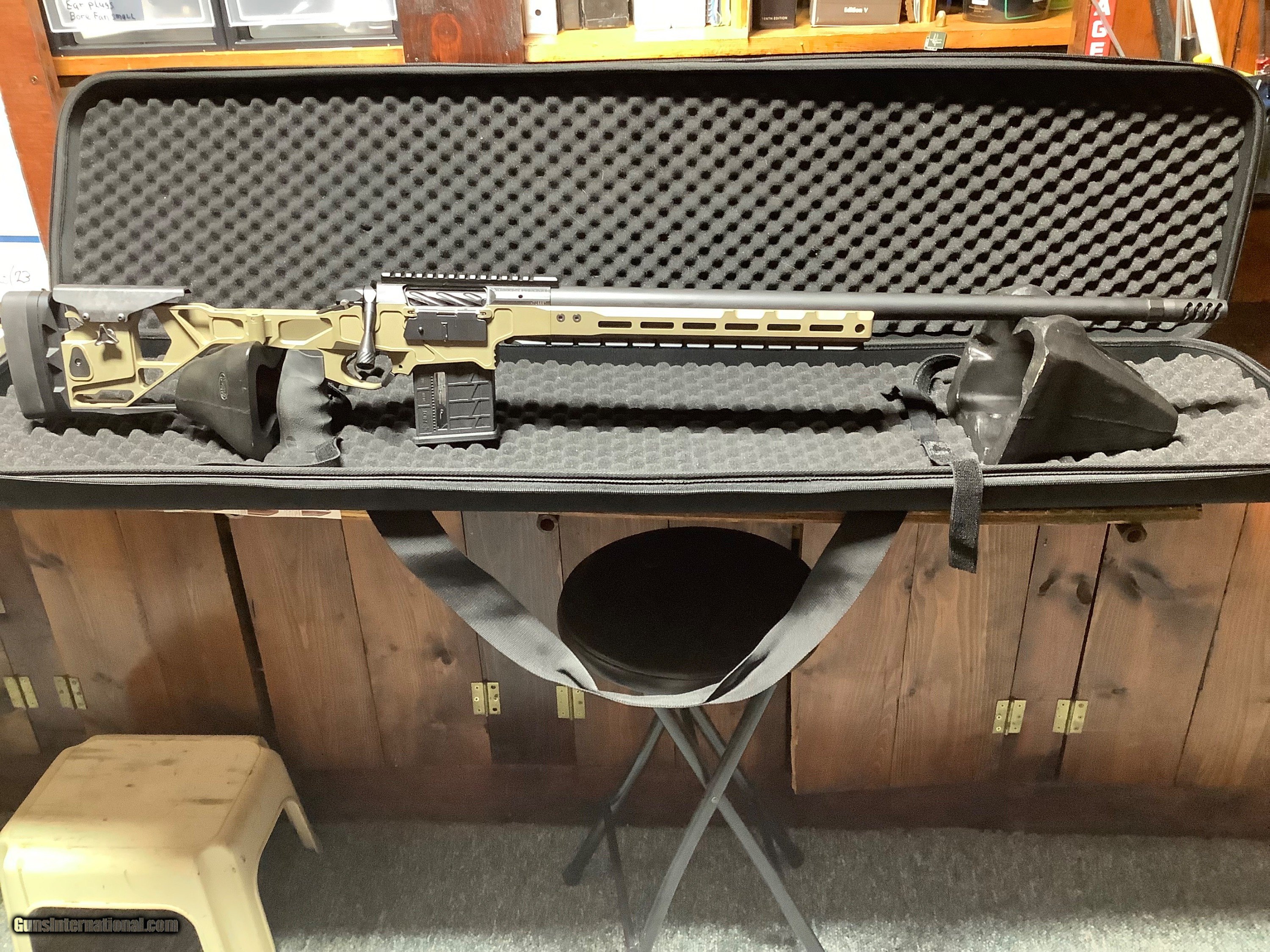 Description: Slightly used, very clean. Very accurate. Just not for what I intended as a factory class benchrest rifle. Folding chassis stock, switch barrel. Can change to one of the other calibers right at the range or in the field. Trigger Tech Primary Trigger. Specs