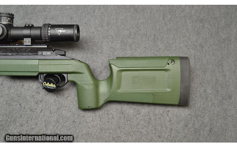 Description: This bolt action rifle is a Seekins Precision Havak chambered in 6.5 Creedmoor fitted to a KRG Bravo chassis. This rifle features an adjustable cheek rest, a 20 MOA rail, and a threaded barrel with muzzle break. This rifle comes with the factory hard case, one 5 round magazine, and a Trijicon 4.5-30x56mm scope. 6.5mm Creedmoor SOLD Metal Condition: Overall good condition Wood Condition: Overall good condition Bore Condition: "Bright and shiny, crisp rifling Barrels: 24 in Stock Dimensions: 13 in LOP Fore End: KRG Bravo Chassis Butt Pad: 1 in rubber butt pad Weight: 12 lbs 8 oz Sights: Trijicon 4.5-30x56mm rifle scope Item Location: Wichita, KS |