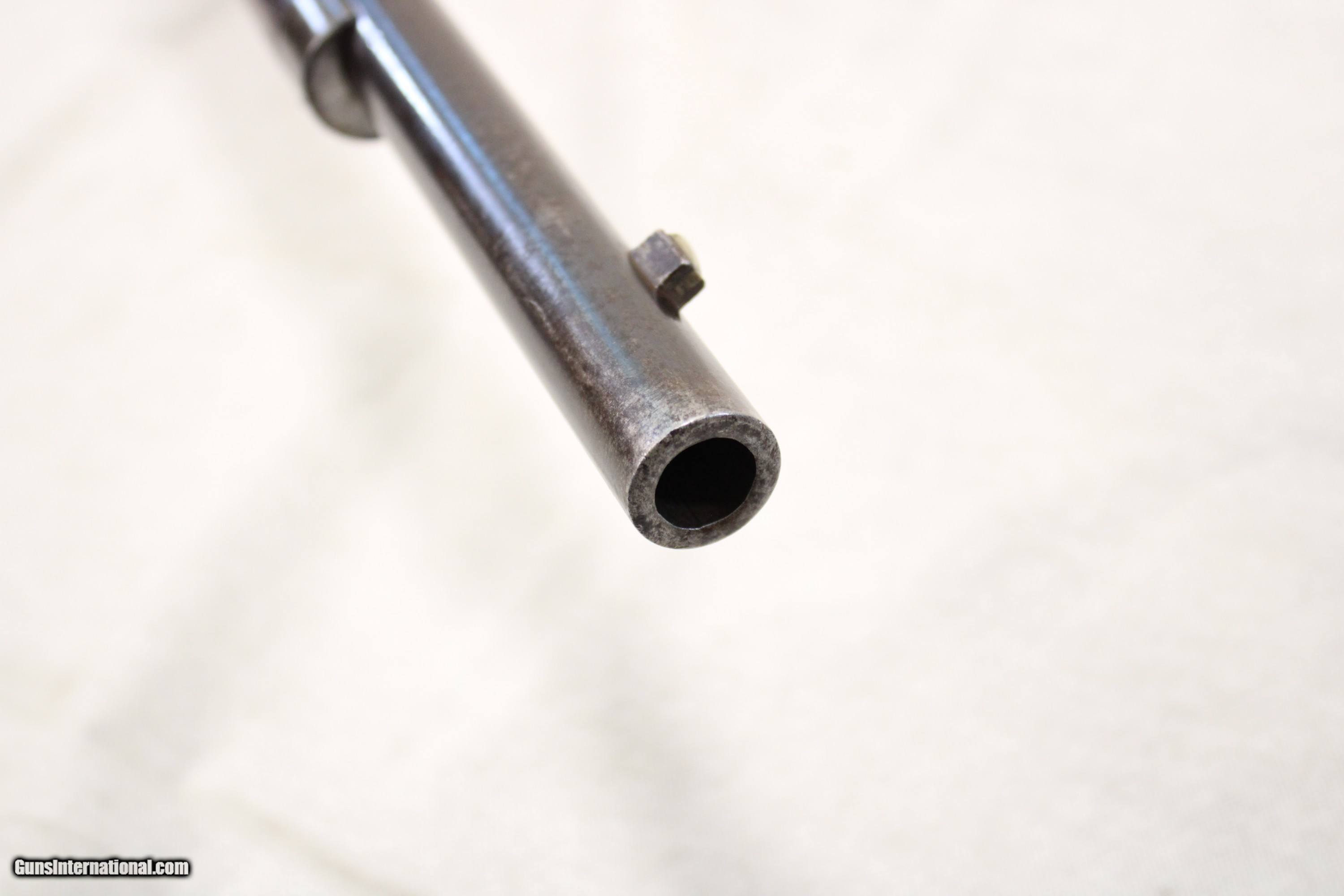 Description: Here we have a rather rare .52 caliber Sharps New Model 1863 Military Rifle. The primary Sharps models to see Civil War use were the New Model 1859 and New Model 1863 rifles and carbines. Roughly 6000 New Model 1863 Rifles were produced and delivered to the US government for use by the US military. The rifles featured a 30” round barrel, secured by three spring-retained barrel bands and a combination front sight/bayonet lug that allowed a socket bayonet to be secured to the rifle. An adjustable rear sight of Lawrence’s design graduated to 800 yards, allowing the rifles to be used effectively at longer ranges than conventional muskets. Like the New Model 1859 version before them, the New Model 1863s had blued barrels, color case hardened receivers and walnut furniture. These rifles were manufactured in 1865 and fell in the C30000 to C40000 serial number range. This particular Sharps is in great overall condition, especially for being 158 years old. The barrel has developed a nice brown/grey patina with hints of the original blue. The Receiver has lost all of its original case coloring and has also developed a nice patina for its age. All the markings on both the receiver and barrel and still visible and neither the barrel nor receiver show any signs of major damage, dings, or deep pitting. The original walnut furniture is in great condition with no signs of major damage or repairs. The wood does show the occasional ding/dent and does appear to have shrunk over time. The factory cartouches on the stock and forend are still visible but are rather faint. All the stock hardware including the patch box are in very nice condition and nearly all the screws are unmolested. The bore of this 158-year-old Sharps is absolutely beautiful with a nice shine, strong rifling, and just a hint of pitting throughout. The falling block action is still tight with a solid lock-up and the hammer spring still has plenty of power. This Sharps New Model 1863 Rifle would be an outstanding addition to any collection! PRICE: $4995.00 We are Antique & Modern Firearms in Lexington, KY, a dealer of fine firearms since 1974. PH. 859-276-1419 We Buy, Sell, and Trade Firearms & Knives. Have an Individual Firearm, Firearms Collection, or Firearms Estate to sell, let us know, and we can buy or consignment sell it for you. NOTE: No additional fee for a Credit Card payment SOLD Antique: Yes Rifle Caliber: .52 Manufacturer: Sharps Model: New Model 1863 Rifle Serial Number: C Barrel Length: 30" Condition: Great Metal Condition: Great Wood Condition: Great Bore Condition: Bright with Sharp Rifling & Hint of Pitting Manufacture Date: 1865 |