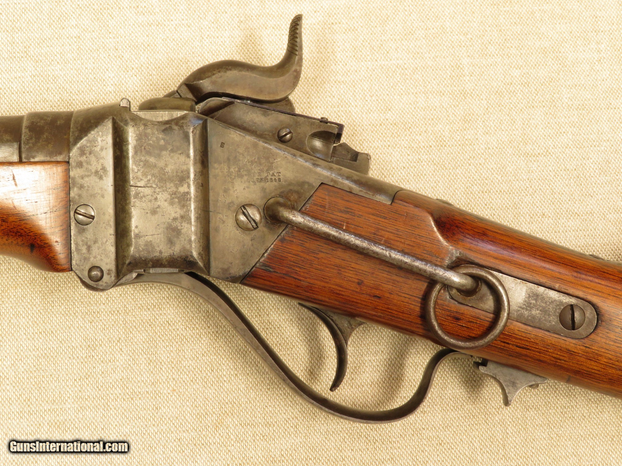 Description: This Carbine, serial number 81631, was issued to Private William G. Etter in nmid 1863 and replaced the Hall Carbine he had been issued in 1862 when he had entered military service in August of the year. He joined Co. I, 1st Missouri Cavalry for a term of three years. He was promoted to Corporal in October of 1863, and mustard out on June 13th 1865. These Sharps Carbines were very popular and continued to see Cavalry service in the Western Campaigns after 1865. When the Civil War ended, many guns such as this, were converted to fire metallic ammunition. In the case of the Sharps, the new 50/70 Government cartridge. These proved to be very effective in the Indian Wars, and saw much action with finally replaced by the 45/70 Springfield Trapdoor in 1873-74. Although seeing service in two theaters, this gun is perfect mechanically and has a bright mint bore. It is a great example of its type. PRICE: $2,550 We are Antique & Modern Firearms in Lexington, KY, dealer of fine firearms since 1974. PH. 859-276-1419 We Buy, Sell and Trade Firearms & Knives. Have a Individual Firearm, Firearms Collection, or Firearms Estate to sell, let us know, we can buy or consignment sell it for you. NOTE: No additional Fee for Credit Card Purchases. SOLD Antique: Yes Manufacturer: Sharps Model: Carbine |