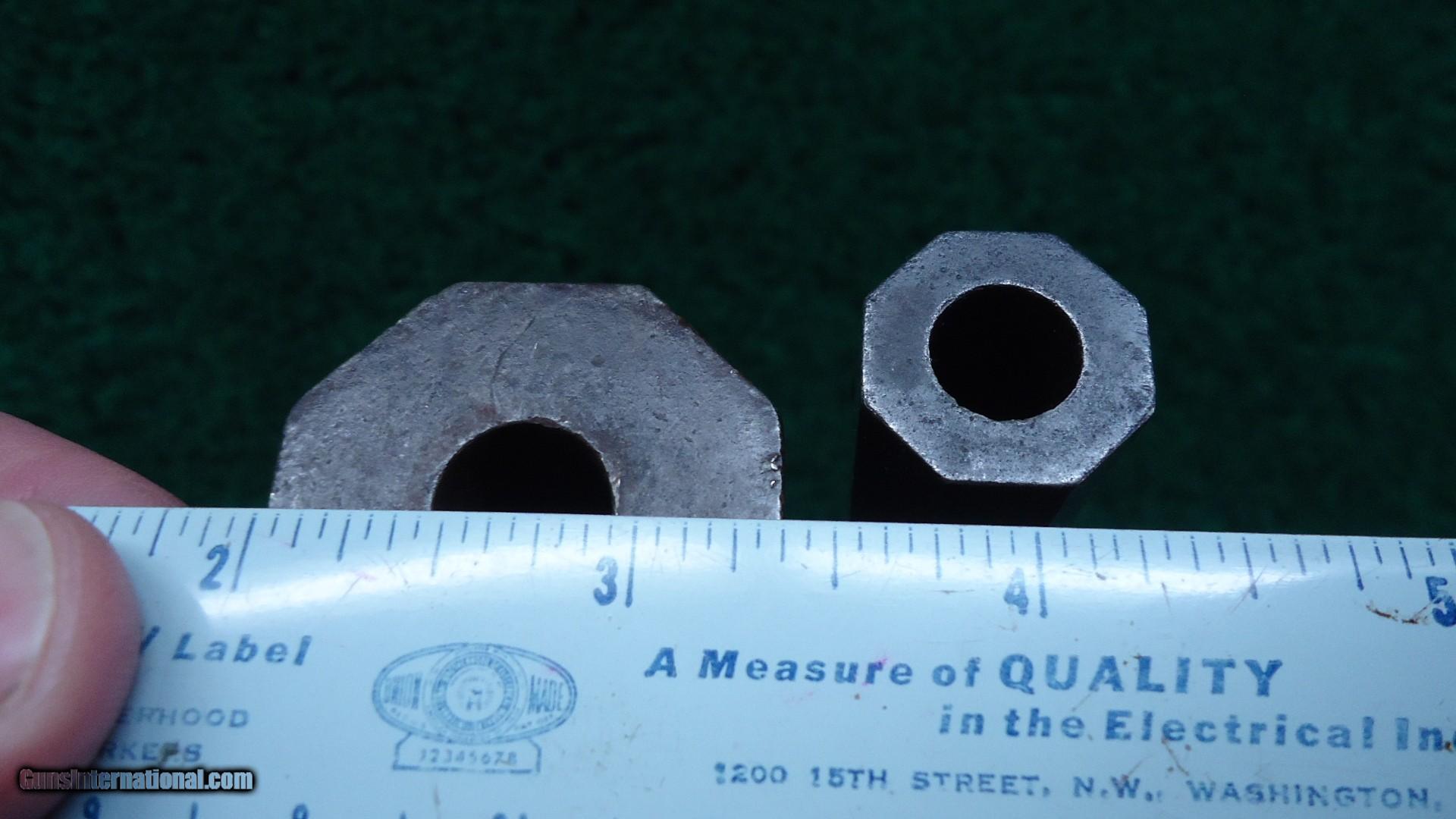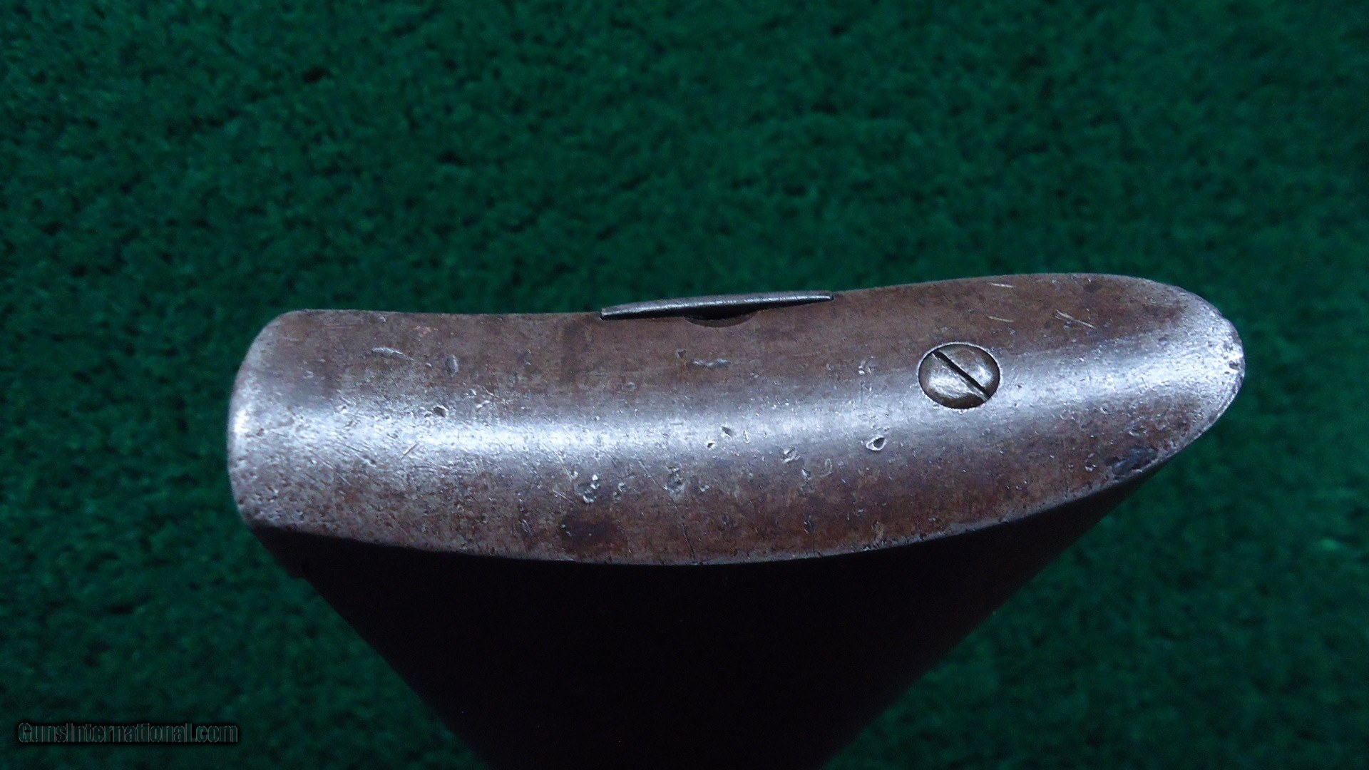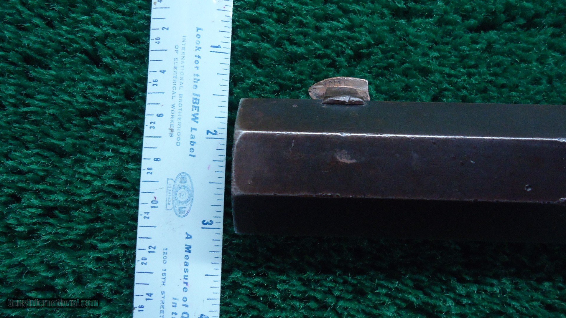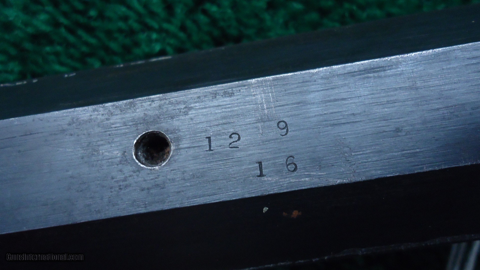Description: This gun was shipped to J P Lowery in Denver. This Sharps is in fine condition with about 50% original blue remaining. Marked "Old Reliable". Octagon barrel measures 30 inches and 1-3/8 inches across the flats. Fine bore. Replacement of the period front sight and Sharps rear sight. Upper tang does not have a serial number visible. It shows evidence of being repaired and is done very nicely but left the tang absent of a serial number. The barrel has 158508 on the bottom. Wood has pretty decent figure to it and is in very good condition with a considerable amount of varnish remaining. The forearm has some dings and mars. Correct iron buttplate and patch box. Frame shows good traces of case color turning a silver color. Double triggers work fine. This is a MONSTER of a Sharps weighing 17 pounds! Leroy Merz Antique Firearms specializes in antique and vintage Winchesters and other fine American firearms. Since 1965 Mr. Merz has taken part in the world of firearms and has been a contributor to many well known reference books. We have hundreds of additional guns in every price range at our home online. Search for Merz Antiques in google. SOLD Antique: Yes Rifle Caliber: .45 |