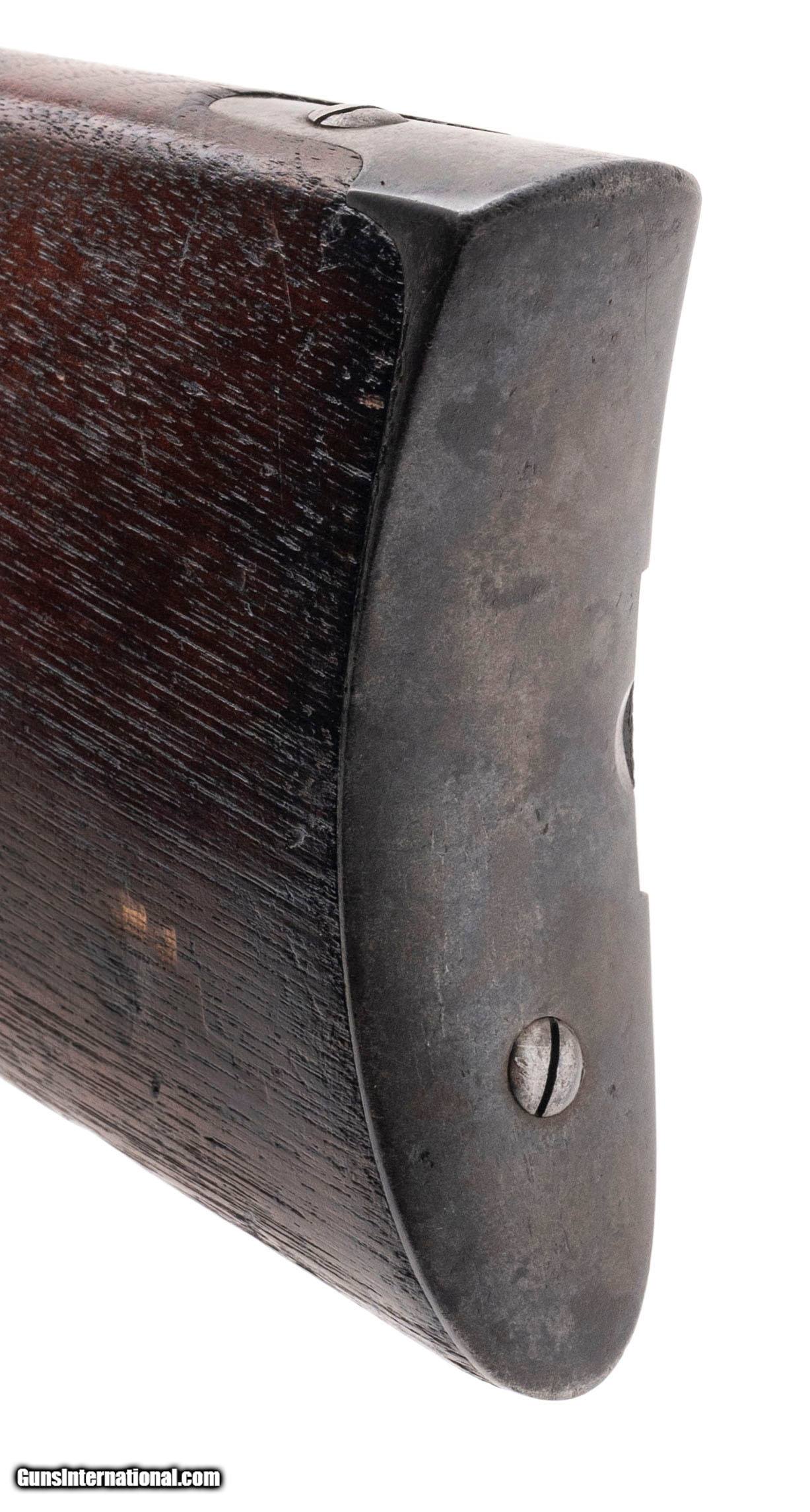 Description: "Serial number 64182. Made circa 1863-1865. 50-70 caliber with a 22" barrel. This gun is in very fine condition with 90% of the original blue. There is one spot of pitting on the left hand side of the barrel 4.5" from the muzzle. The frame is mostly a light tan colored patina with visible case colors in the protected areas. The wood is excellent. The cartouches still remains sharp. The action works perfectly and the bore is excellent. Very fine example of a Sharp carbine! Antique: Yes Price: $3,895.00 Contact Seller |