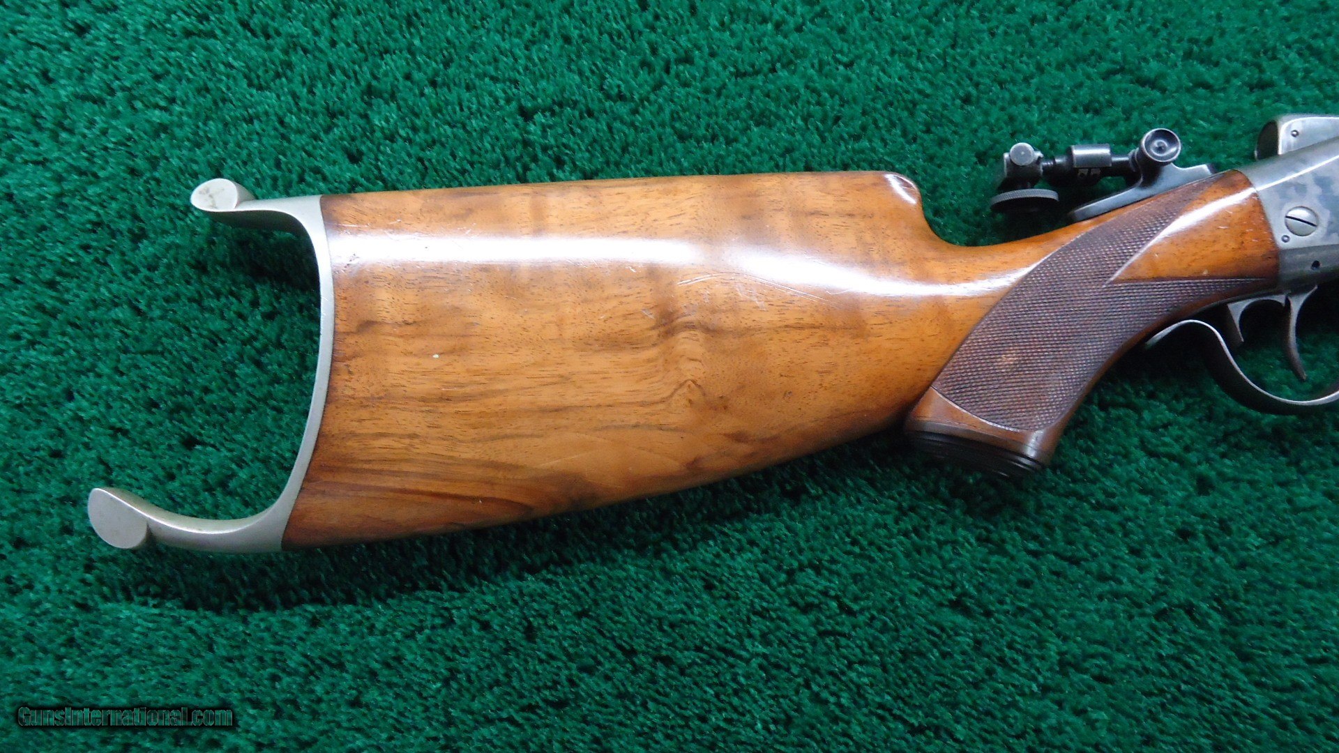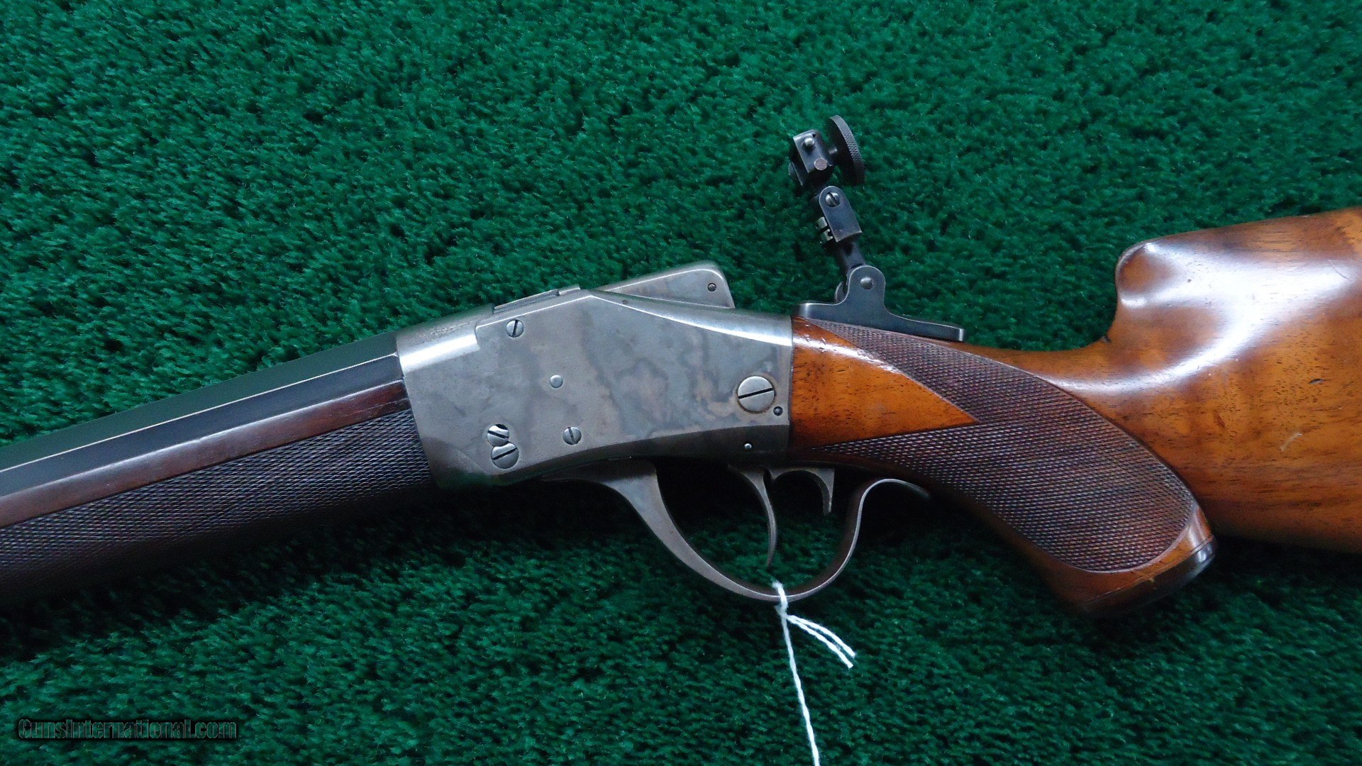 Description: 31 inch part octagon barrel with a bright shiny excellent bore. The rifle chambers a 32-40 but the bore seems slightly over indicating that this rifle was setup for breech seating. Barrel retains a good amount of original blue with wear at the high points. The action has a good amount of case color showing with some turning a silvery color. The checkered pistolgrip buttstock and forend are in good condition with some wear to the checkering at the forend and a sliver repair on the front right. German silver Schuetzen buttplate. Sights include windgauge front with a spirit level and a Stevens Pope #110 tang peepsight. Comes with the custom palm rest and seating tool. Zischang emigrated from Germany and worked for Sharps before moving and eventually opening his own shop in Syracuse. His quality style is recognized and coveted by collectors for his fine work. Leroy Merz Antique Firearms specializes in antique and vintage Winchesters and other fine American firearms. Since 1965 Mr. Merz has taken part in the world of firearms and has been a contributor to many well known reference books. We have hundreds of additional guns in every price range at our home online. Search for Merz Antiques in google. SOLD Antique: Yes Rifle Caliber: .32-40 Winchester |