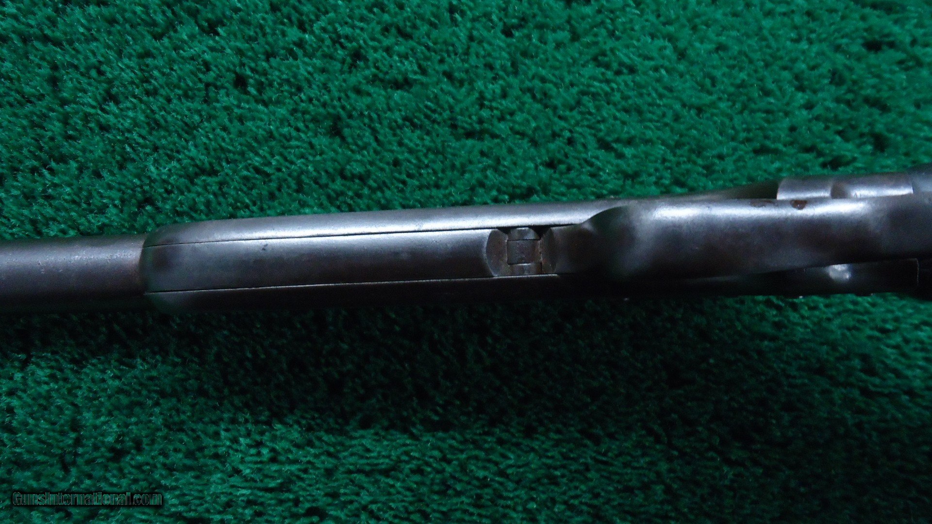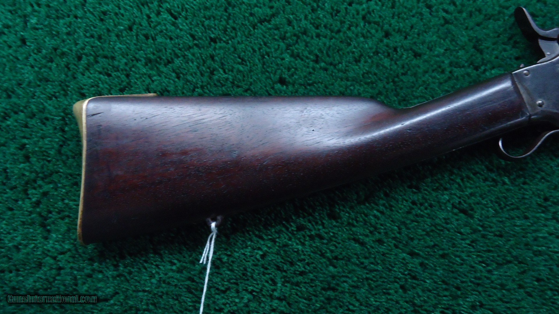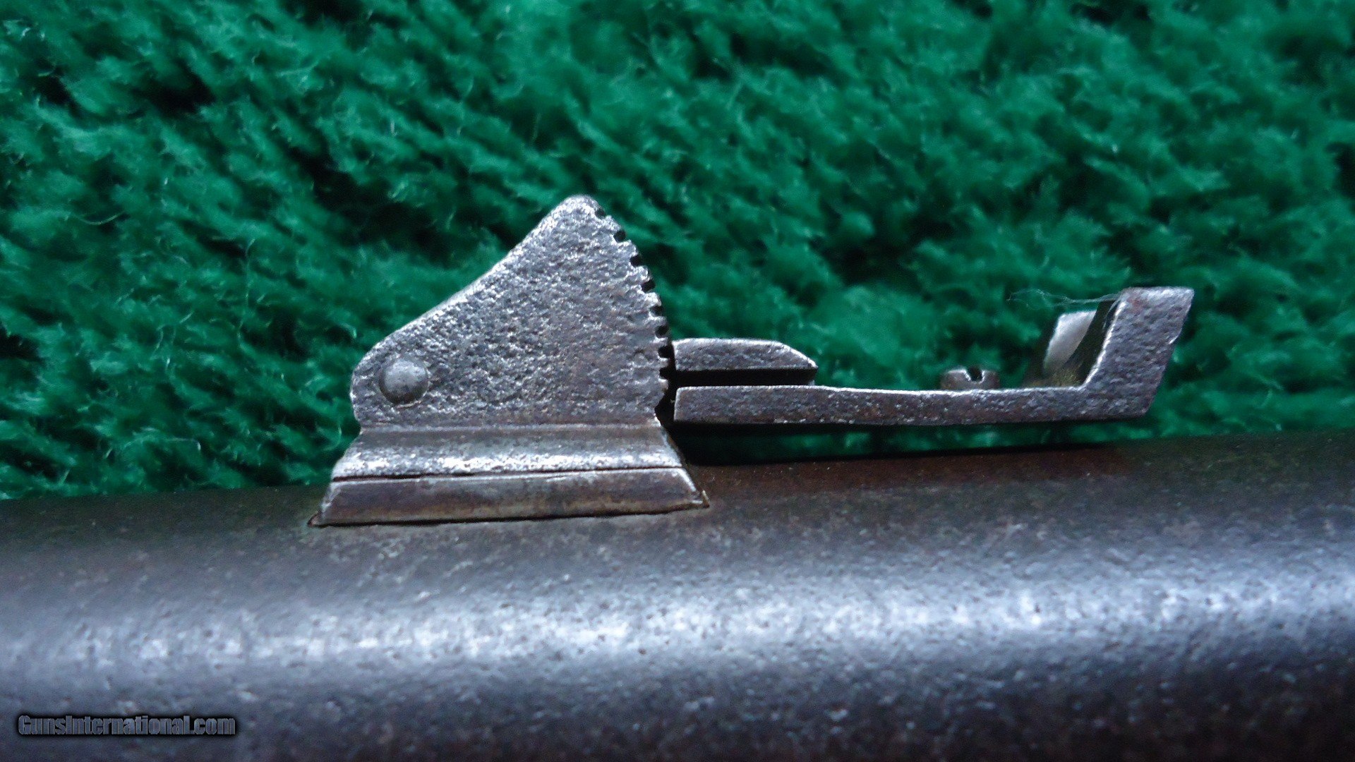 Description: 24 inch round barrel in 52 RF caliber. Blade front sight and elevator rear sight. Mechanically sound with a nice crisp action! Dark bore. Barrel surface has antique pitted texture which is common on these old S&H carbines. Metal on frame is much smoother with light pitting and an even dark gray patina. Brass buttplate fits well along the sides but poorly at top and bottom. Age crack visible on left side of stock yet this good looking wood is still quite solid. Overall gun has signs of age but still a nice little gun. Leroy Merz Antique Firearms specializes in antique and vintage Winchesters and other fine American firearms. Since 1965 Mr. Merz has taken part in the world of firearms and has been a contributor to many well known reference books. We have hundreds of additional guns in every price range at our home online. Search for Merz Antiques in google. SOLD Antique: Yes Rifle Caliber: .52 |
