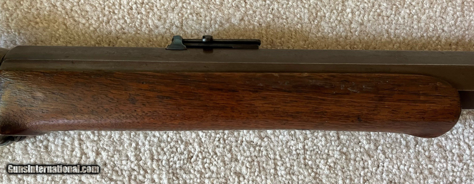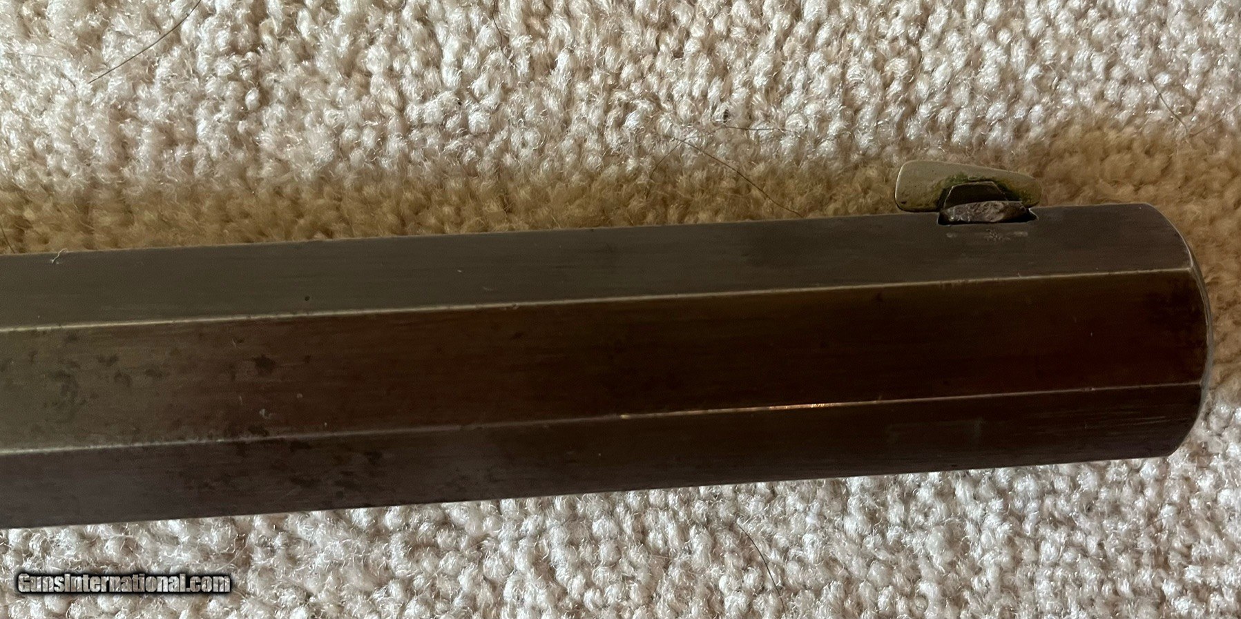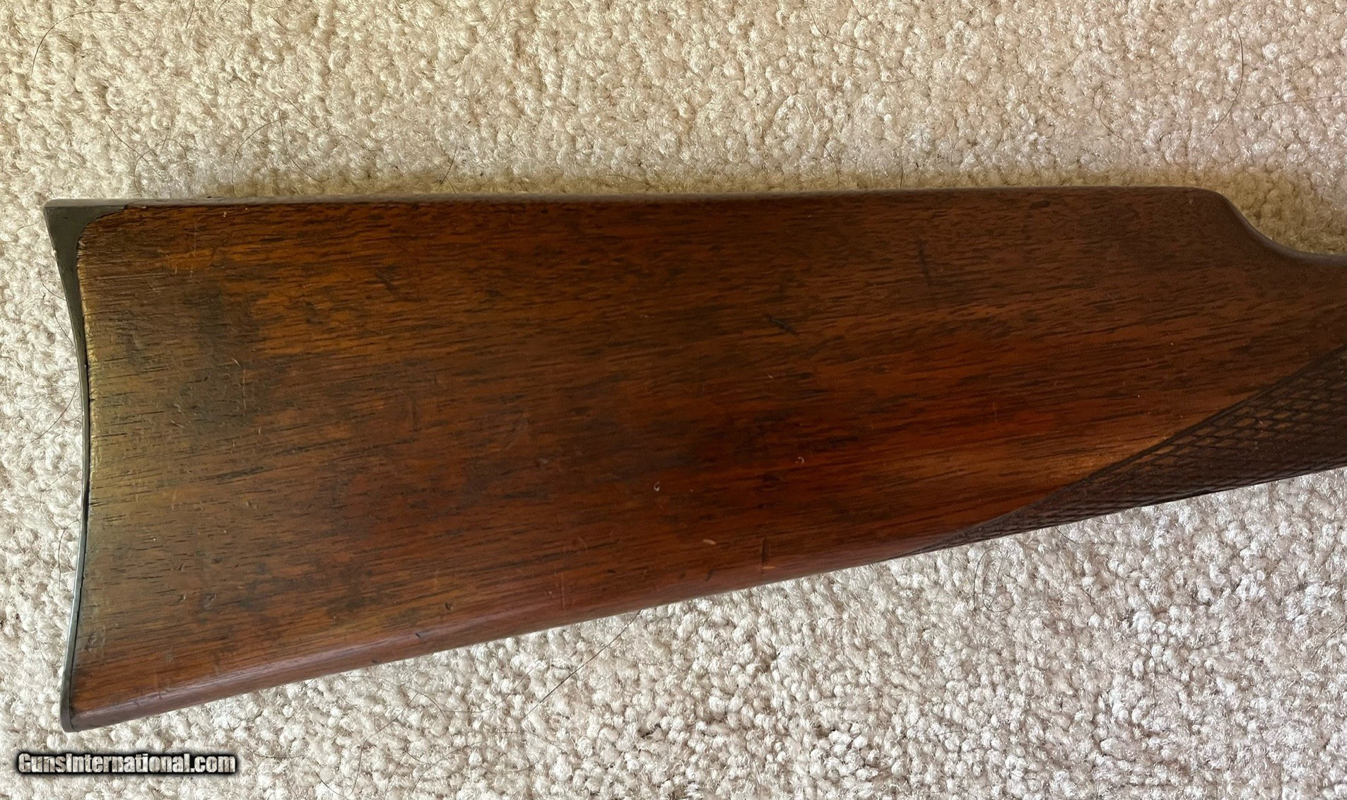 Description: This is a massive Sharps 1863 that was converted in the period into what can only be described as a buffalo rifle. My best guess would be that this was done in the early 1880s after Sharps had closed, as the barrel is mostly unmarked aside from a couple proof marks and the number "18". Just as well, the trend of the day seems to be that the markings were hit and miss, with some guns getting all of them, and some none. Who knows. The condition of this rifle is excellant in my opinion, with original case colors still being visible, and the wood remaining largely undamaged with the exception of a hairline crack in the forearm. The serial number is visible under the tang sight - it is 98472. The action works flawlessly, as do the set triggers. The barrel measures in at 30 inches and 1 1/2 inches across flats. As can be found in old Meacham catalogs, this spec of rifle would have been ordered as a "45-90 to 120". Essentially, it was up to the buyer as to how big of a cartridge they wanted. The barrel is confirmed to be .45 cal., however I am not sure of the exact cartridge. A 45-90 does fit, though with such a heavy gun, I would not be surprised if it was closer to 45-120. This lines up with other examples that I have seen sell at in recent years - a couple rifles exactly like this one have sold at Morphy's, and can be viewed by searching their . The Vernier tang site appears to have been added in the period, as it has a similar level of wear to it. The sights on the barrel appear to be in good condition, however just as well, there is evidence that this rifle previously had a scope on it. All in all, a very cool extra heavy Sharps that is not often seen. If you have any questions, or would like any additional pictures, do not hesitate to ask. The payment methods listed are the only ones that I will accept. SOLD Antique: Yes Rifle Caliber: .45 Manufacturer: Sharps Model: 1863 Serial Number: 98472 Barrel Length: 30 |