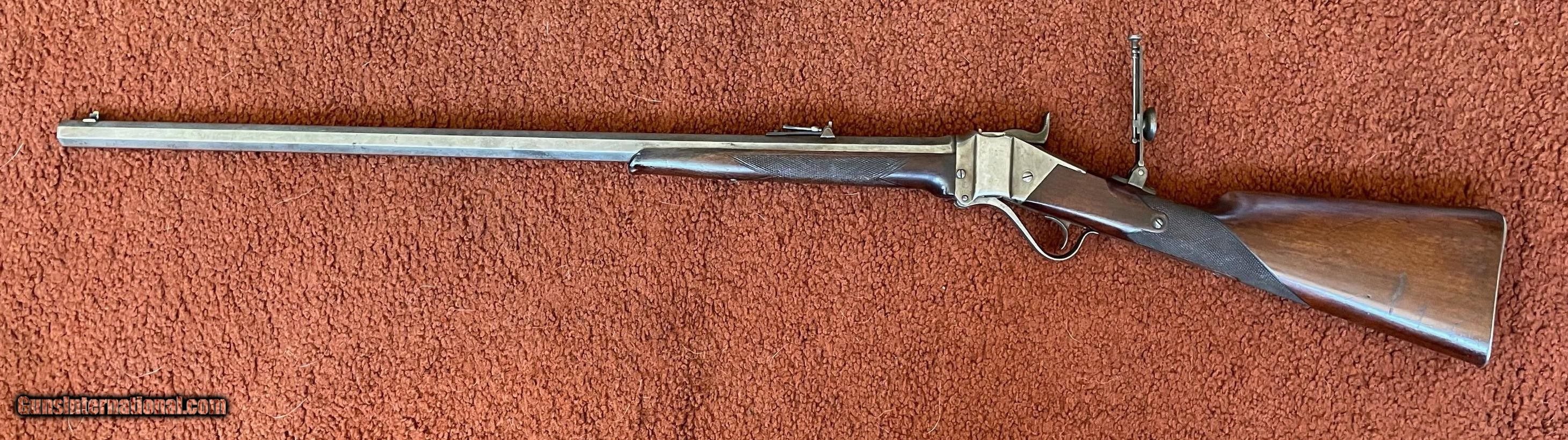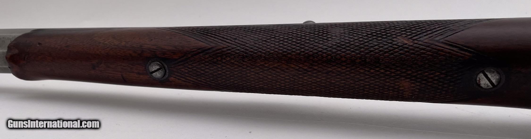 Description: Caliber is 40 x 2 1/4 Serial numer is 161803 on the action and 157801 on the trigger bar, tang sight, barrel and forend. Shipped March 4, 1874 to L.C. Bruce. The bore and action are very good. See photos for condition SOLD Antique: Yes Manufacturer: Sharps Model: 1874 Midrange Barrel Length: 30 |