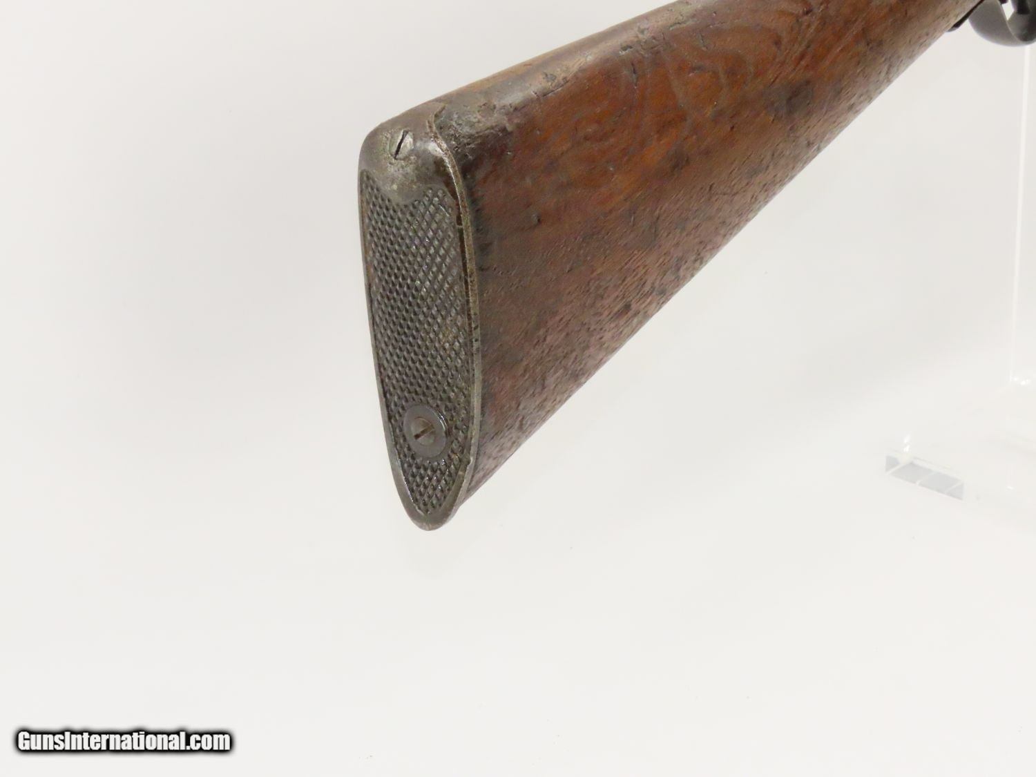 Description: Antique SHARPS-BORCHARDT Model 1878 .45-70 GOVT Rifle Shortened Example of the Military Rifle Here we present an antique Sharps Model 1878 Borchardt Single Shot Rifle in .45-70 GOVT manufactured between 1878 and 1881 in Hartford, Connecticut. The Sharps-Borchardt Model 1878 is a single shot hammerless falling block action rifle designed by Hugo Borchardt and made by the Sharps Rifle Manufacturing Company. It closely resembles older Sharps Rifles but has a firing mechanism that uses a hammerless striker rather than a hammer and firing pin like the old Sharps Rifles. This hammerless dropping-block breech-loader was based on a patent granted to Hugo Borchardt in 1877. It was the last of the Sharps single-shot rifles. According to company records 22,500 rifles were made in all models that included the Carbine, Military, Short Range, Mid-Range, Long Range, Hunter, Business, Sporting, and Express from 1877 until the Sharps Rifle Co. closed down in 1881. Even with its lack of commercial success, the Sharps-Borchardt is admired for its strength and accuracy and is considered one of the strongest, if not the strongest, rifle action ever built before the end of the 19th century. Used hard. The action does not function. The bore is dim. The barrel would have originally been 24 inches but has been shortened at some point. Own the original! This is a legitimate antique and not a reproduction. Barrel is 22-3/4 inches. Caliber: .45-70 Overall condition as seen in photos. Very Fast. Very Safe. FREE SHIPPING WORLDWIDE. Delivered directly to your door by express mail! Guaranteed AUTHENTIC & Includes CERTIFICATE OF AUTHENTICITY. ancestryguns $1000 #20418 SOLD Antique: Yes |