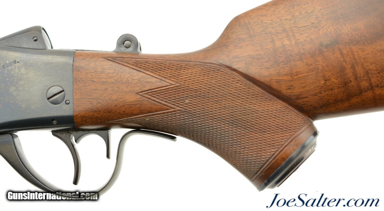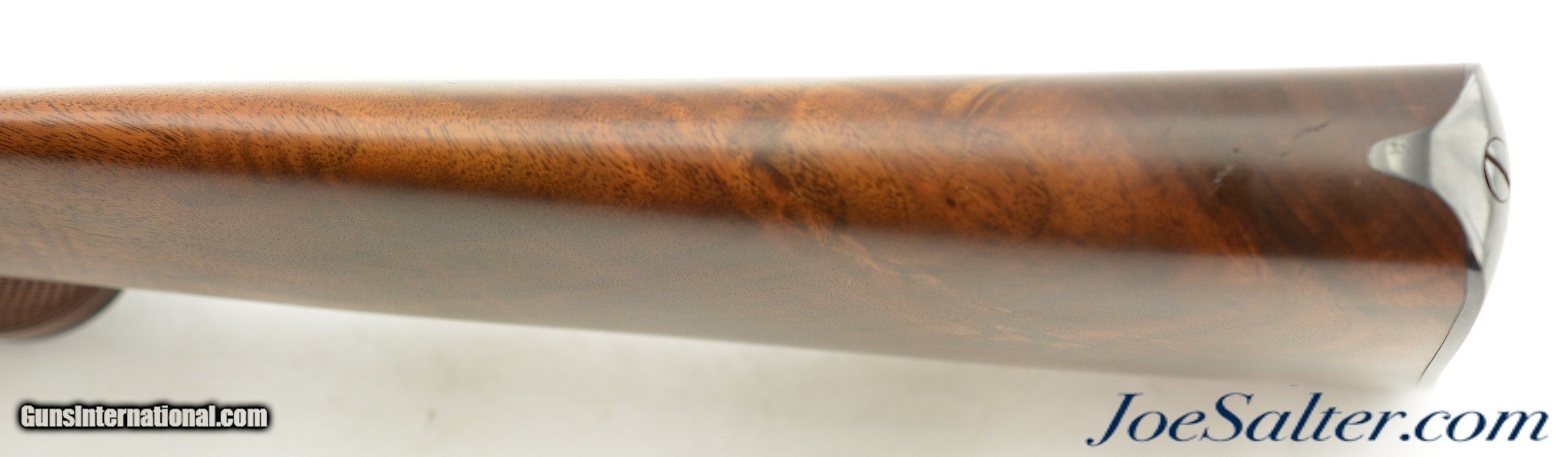 Description: Serial #20358, .45-70 Gov’t., 34" heavy barrel with an excellent, bright bore. This is a handsome rifle that has a "K.R. BRESIEN / WARSAW N.Y." marked barrel retaining virtually all of the original blue finish. The original Sharps-made receiver, breechblock, lever, trigger, and safety likewise retain a commensurate amount of reapplied blue that has just a few negligible surface scratches on a handful of areas. A modern spirit level globe front sight is installed, but there is no rear sight present, although a mount for a Vernier tang sight is present at the wrist. The checkered walnut forend and pistol-grip buttstock are in excellent condition with almost no handling marks and beautifully figured wood throughout. The tip of the forend has never had a nosecap fitted, but has been prepared to accept one. The action is tight and functions smoothly, and the rifle weighs 12 lbs, 13 oz. This is a great looking custom Sharps-Borchardt target rifle that needs a small amount of work to be complete, and is in excellent condition overall. Antique; Antique: Yes Price: $3,795.00 Contact Seller |