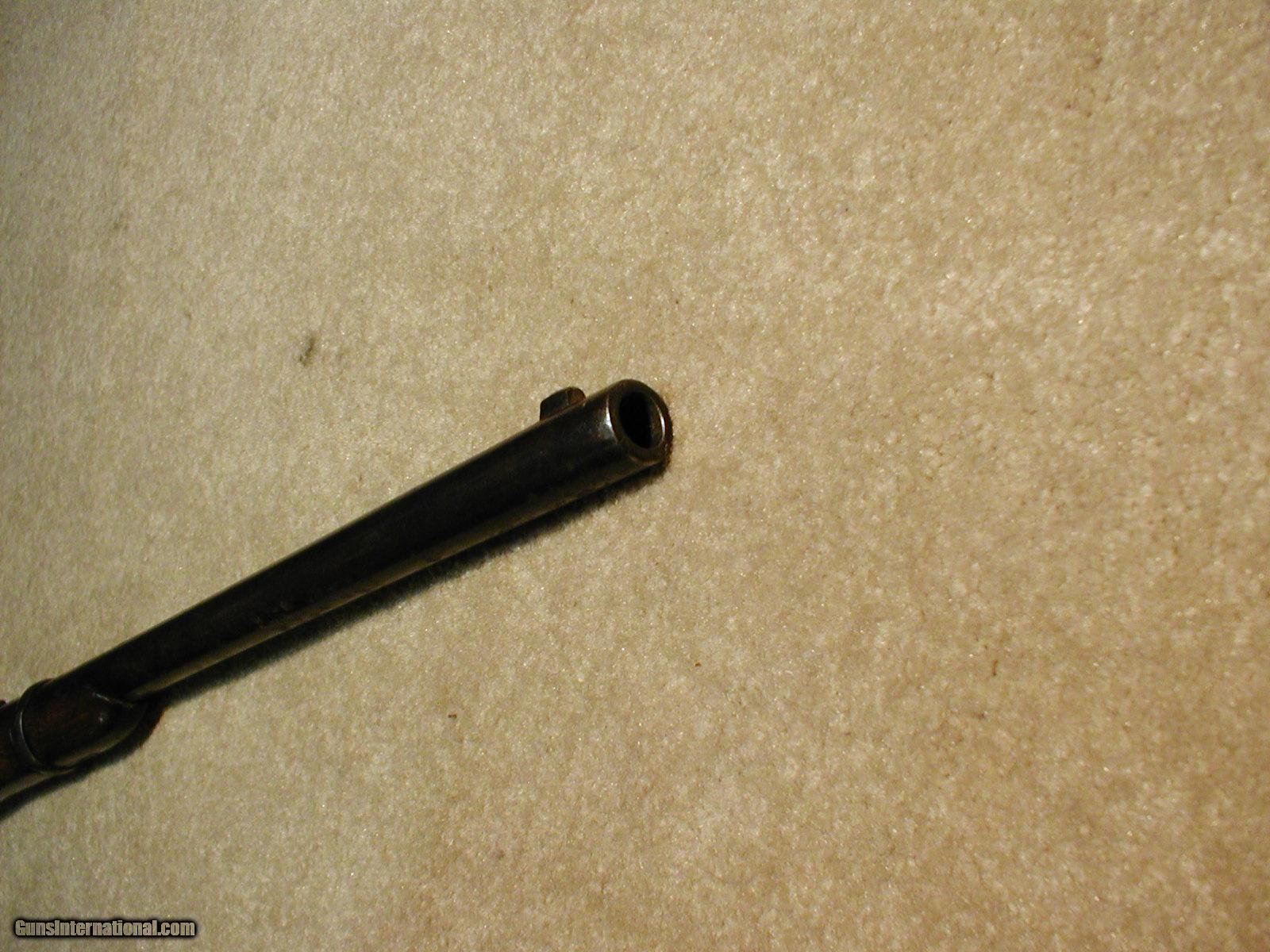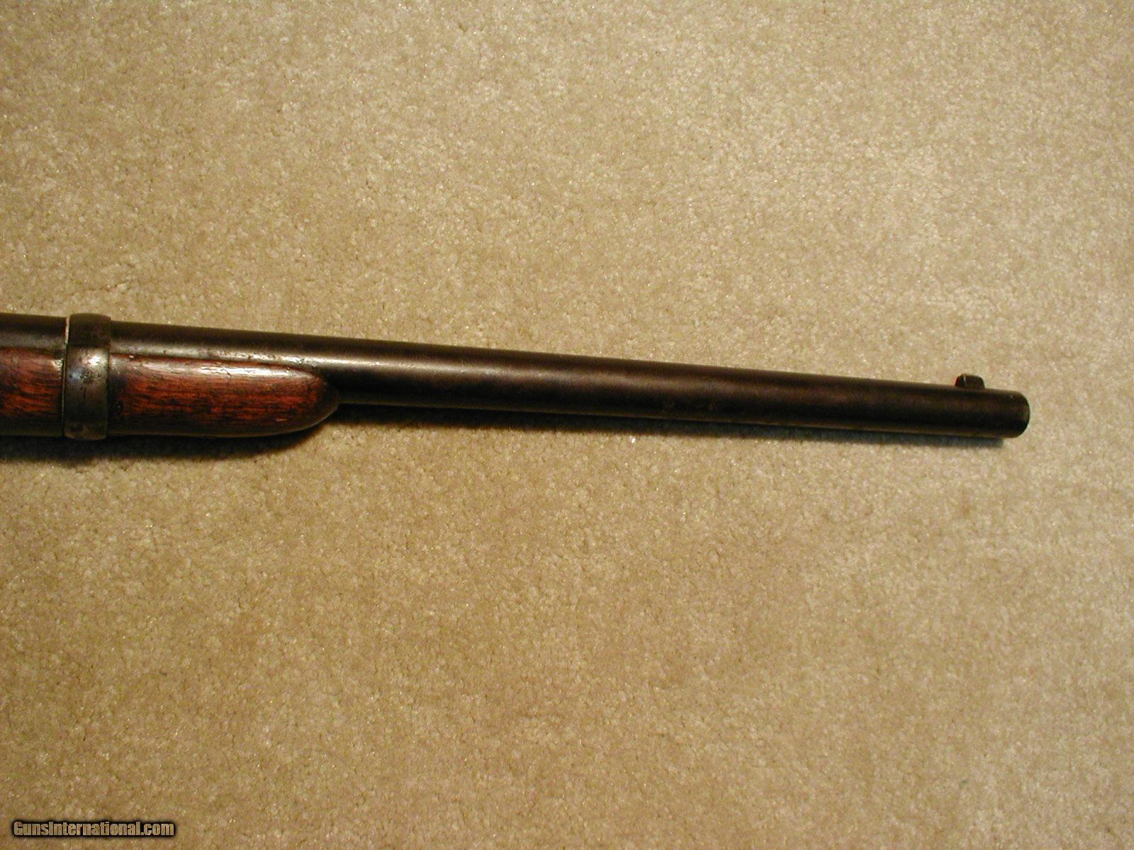 Description: ATTIC CONDITION SHARPS NEW MODEL 1863 .50-70 SADDLE RING CARBINE, this one looks like it was left in storage for the last 125 years! Uncleaned and unmessed with, all correct and original with only the slide on the original ladder Lawrence rear sight missing (easily replaced), overall uncleaned metal is a deep plum/blue on the barrel and mainly a deep untouched brown on the rest of the metal that has a few light scattered and small patches of surface rust that I have not attempted to remove- all very minor, good Sharps markings on the receiver and serial number on the tang intact, wood shows normal use and handling, but not chipped or cracked, tight action, bore should clean bright and about excellent, sling ring intact with ring only removed (again, easily replaced), these are truly wonderful historic arms that first saw hard service through the Civil War and then were converted to .50-70 cartridge and re-issued for the Indian Wars, later most were sold as surplus and went West with settlers and frontiersmen! Very hard to find these days in this kind of condition where nobody has tried to clean or "improve" it! SOLD Antique: Yes Manufacturer: Sharps Model: 1863 .50-70 SADDLE RING CARBINE Serial Number: C17XXX Caliber Info: .50-70 Condition: VG-Fine Barrels: 22 |