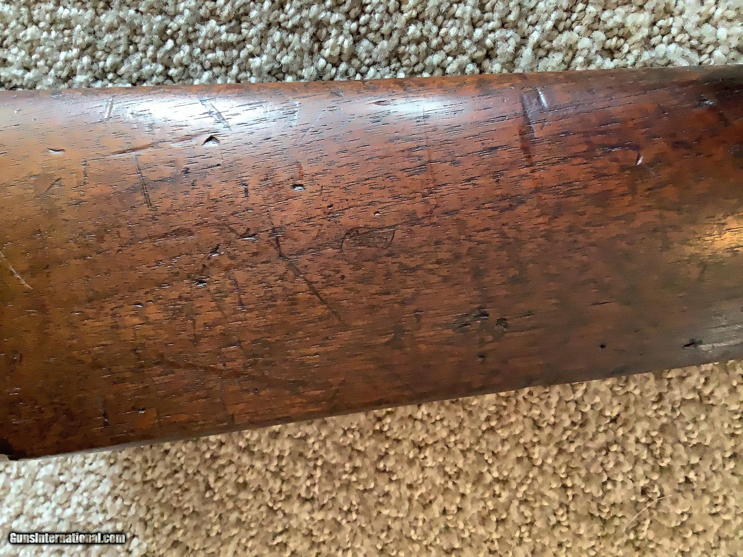 Description: Offered today, a historic C. Sharps 1863 saddle ring carbine,made approximately in 1863-64,converted to a 50-70 cartridge after the war in 1867. "Old Reliable" as called by the pioneers, union soldiers & hunters who carried rifles like these in battle and to the far reaches of the west in the late 19th century. This rifle retains a substantial amount of bluing on the barrel and a fair amount of case color on the receiver. Remnants of the R.S Lawrence 1859 patient is still visible on the right side of the receiver for the Maynard priming system for the original percussion, paper cartridge firing action. If this gun was percussion, its hard to tell as the New Model 1863 stamp is not visible. The forearm appears to be a replacement (based on appearance and condition in relation to the stock) the stock and butt plate do not match as the butt plate is from a sharps w/ a patch box. One possibility is the gun was returned to sharps for a replacement and it was replaced with a 1863 stock but retained the original butt plate. The eagle cartouche is visible on the left side (see picture) of the stock indicating the stock is from the Sharps rifle company. The bore is good w/ strong rifling and a few pits scattered throughout. The barrel is 22" to the breach, factory long range rear sight is correct for this model, calibrated to 800yds! Overall this is a fantastic example of a Sharps saddle ring carbine, perfect for the beginning collector and a true piece of American history! Reasonably priced and won't last long. Email for additional info or pictures. SOLD Antique: Yes Rifle Caliber: .50-70 Government Manufacturer: C. Sharps Arms Model: 1863 Serial Number: 71344 Barrel Length: 22in Bore: Fair to good Chambers: Good Condition: Good Metal Condition: Good Wood Condition: Good Bore Condition: Very good Manufacture Date: 1863 |