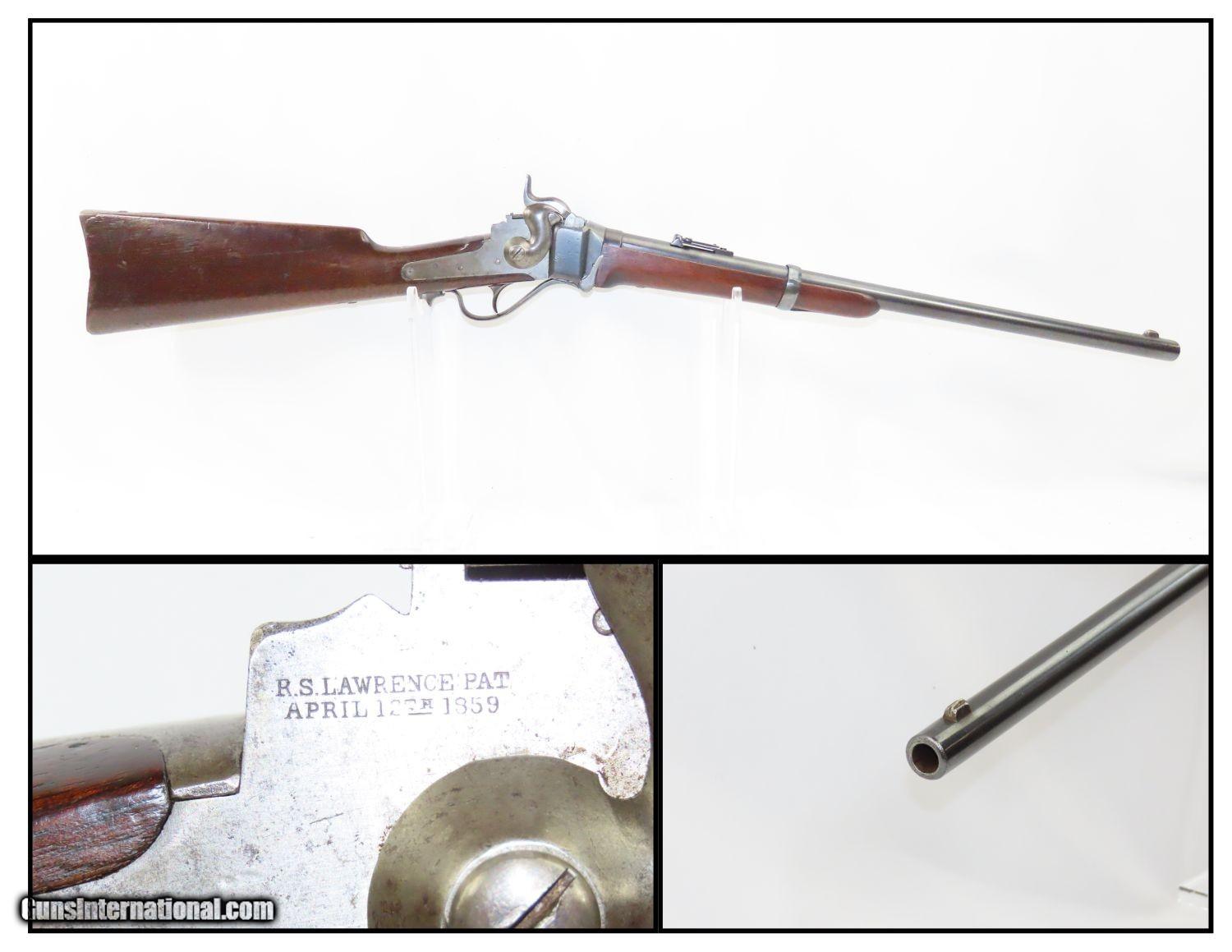 Description: CIVIL & INDIAN WARS SHARPS New Model 1863 .50-70 GOVT Cavalry Carbine Antique Classic Civil War/Old West Saddle Ring Carbine Here we present an antique Sharps New Model 1863 Carbine, made circa 1863-65, then converted to 50-70 Govt circa 1867 for use in the West by the federal government. Over 100,000 Sharps rifles and carbines were purchased and used by the federal government during the American Civil War. In 1867, the Ordnance Department contracted with the Sharps Rifle Company for conversion of over 31,000 Sharps percussion carbines to the .50-70 breech loading configuration. They went on to experience some of the most exciting times in American history during the Indian Wars, the settling of the Western Frontier, and the connecting of the coasts with the railroad. These carbines were issued to the regular cavalry regiments on the western frontier and remained in service until they were replaced by the Springfield Model 1873 Carbine. The overall condition is near fine. Very nice, old blue finish. Excellent action. Bright, sharply rifled bore. The walnut stock is solid throughout with a cartouche remnant on the left wrist. A great carbine in a big, black powder cartridge with great dual history! Own the original! This is a legitimate antique and not a reproduction. Barrel is 20 inches. Caliber: .50-70 GOVT Overall condition as seen in photos. Very Fast. Very Safe. FREE SHIPPING WORLDWIDE. Delivered directly to your door by express mail! Guaranteed AUTHENTIC & Includes CERTIFICATE OF AUTHENTICITY. ancestryguns $3745 #210348 SOLD Antique: Yes |