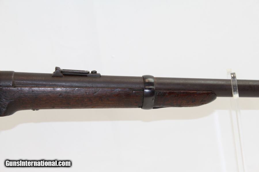Description: CIVIL WAR & FRONTIER Antique SHARPS Carbine Model 1859 Updated for Metallic Cartridges! Here we present an antique Sharps New Model 1859 Cavalry Carbine, made circa 1859-63 in Hartford, Connecticut. There is a reason the good name of Sharps has lasted to the current day, reaching nearly legendary status. Those made prior to and during the American Civil War, from 1861-1865, were popular with the troops. They were handy, accurate, powerful and reliable guns, and many went to the Western Frontier as trappers, explorers and settlers moved that way. This example was originally produced in the percussion format and used in the Civil War. After the war, in 1867, the U.S. Government paid Sharps Rifle Manufacturing Co. to update and convert about 31,000 of these to metallic cartridge for the military, the same big cartridge the early trapdoors were made in. This is one of the iconic carbines of Western lore. This particular gun was smooth bored sometime post war. This one bears remnants of the original Civil War period inspector cartouches. The “DFC” (David F. Clark) cartouche for the metallic cartridge conversion remains clear on the left butt stock. The overall condition is good. The iron parts are dark with age. The markings are legible. The walnut stock has clearly seen much use and is likewise dark with age and handling. The bore is now .54 and smooth and dark. The action remains strong as the Sharps name. Here is a fantastic cavalry carbine that would have seen action in the American Civil War before going on with the cavalry in the post-war period, able to handle a metallic cartridge! Own the original! This is a legitimate antique and not a reproduction. Barrel is 22 inches. Caliber: .54 Overall condition as seen in photos. Very Fast. Very Safe. FREE SHIPPING WORLDWIDE. Delivered directly to your door by express mail! Guaranteed AUTHENTIC & Includes CERTIFICATE OF AUTHENTICITY. ancestryguns $2675 #8114 SOLD Antique: Yes |