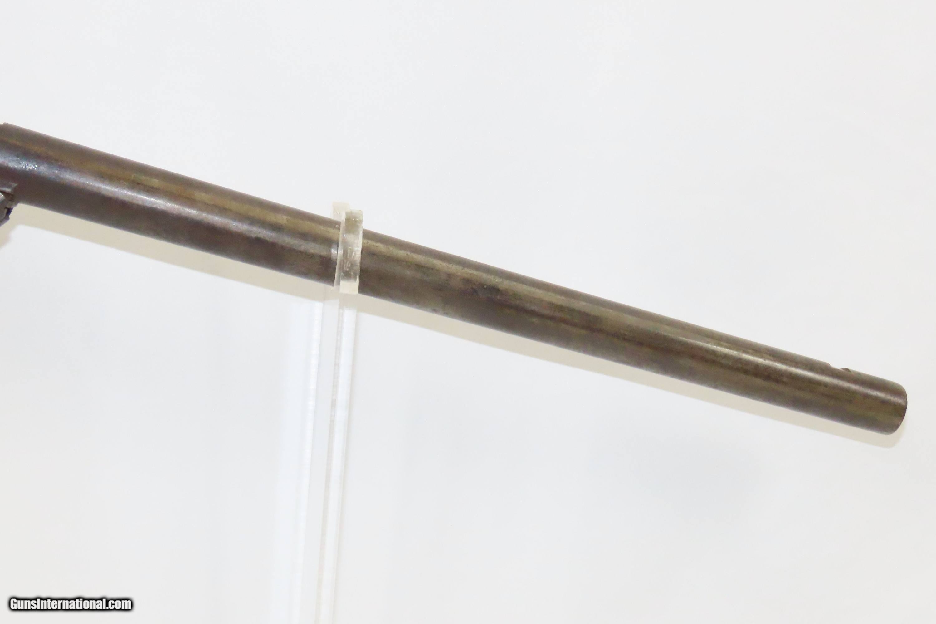Description: Civil War SHARPS & HANKINS Model 1862 SHORT CAVALRY .52 Caliber RF CARBINE 1 of only 1000 Made Circa 1863 Here we present an antique Sharps and Hankins Model 1862 Short Cavalry Carbine manufactured circa 1863 in Philadelphia, Pennsylvania. This is one of approximately 1,000 Sharps & Hankins Model 1862 Short Cavalry Carbines manufactured from 1862 to 1865. One of the units issued these carbines was the 9th New York Cavalry which was present and claims the first shot fired at the Battle of Gettysburg as part of Second Brigade which was part of Brigadier General John Buford's 1st Division. The shape of the carbine is distinctly Sharps and operates a bit differently than other carbines of the era. The trigger guard doubles as a lever, which is opened by pressing a small tab inside the smaller loop of the lever. Opening the lever slides the barrel away from the recoil shield for loading and unloading. The overall condition is good. The action does not function due to a broken or missing main spring. Good bore for its age. Solid stock throughout. Tang screw is missing causing some wiggle at the frame. Both sets of sights are missing. The lever falls slightly with gravity having lost some tension over time. Own the original! This is a legitimate antique and not a reproduction. Barrel is 19 inches. Caliber: .52 Rimfire Overall condition as seen in photos. Very Fast. Very Safe. FREE SHIPPING WORLDWIDE. Delivered directly to your door by express mail! Guaranteed AUTHENTIC & Includes CERTIFICATE OF AUTHENTICITY. ancestryguns $1800 #230071 SOLD Antique: Yes |