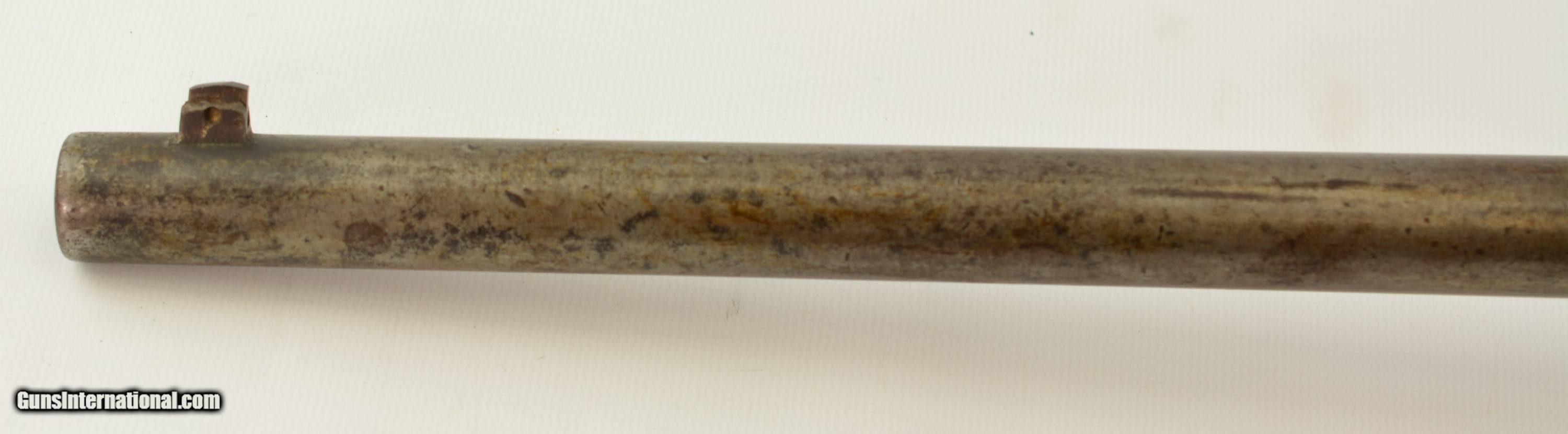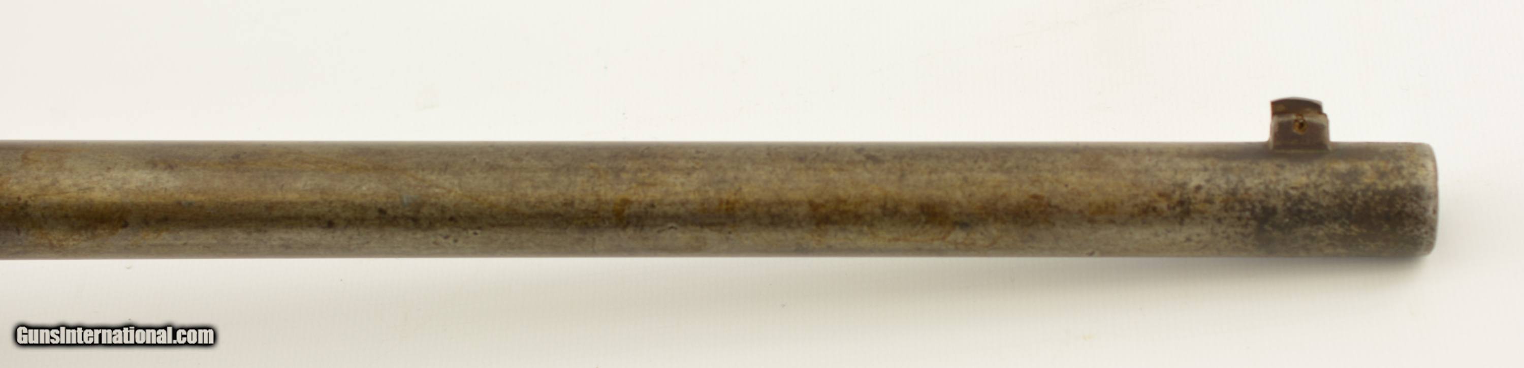 Description: Serial #52916, .54 caliber, 22" barrel with a very good bore that has dark freckling within the grooves. This is US inspected carbine with matching numbers, and has a dark plum-brown patina mixing with pewter gray throughout. Additionally, there is mild pinprick pitting at the muzzle, as well as on the top of the breech-block and nose of the hammer. The walnut forend and buttstock have an added military oil finish over numerous handling marks and blemishes scattered throughout the wood, including a short hairline crack running up from the tip of the patchbox, and a slightly longer crack running back from the lockplate. An inspector cartouche can bee seen faintly on the left side of the wrist. The action is tight and fully functional, and this is a great looking Civil War Sharps in very good plus condition. Antique SOLD Antique: Yes Manufacturer: Sharps Model: 1859 Serial Number: 52916 Caliber Info: .54 Gauge Info: .54 |
