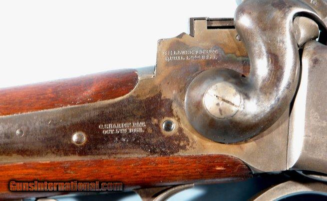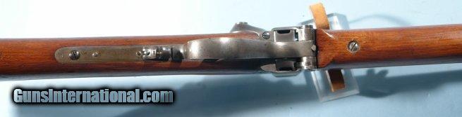 Description: EXCELLENT SPRINGFIELD SHARPS U.S. MODEL 1870 BREECHLOADING .50-70 CAL. INFANTRY RIFLE W/BAYONET. 35” round barrel serial numbered at the left breech.. Alteration of the Sharps Civil War Model 1863 action with Springfield Armory parts made just for this model including the barrel, stock and forend. Only 1300 manufactured and are very scarce. In excellent plus condition it retains much of the Springfield color case hardening on the lock and frame with the balance of the parts arsenal bright that is correct for this model. Rear sight with the original blue. Excellent stock and forend with fine inspector’s cartouche (ESA) at the wrist. Butt plate tang stamped “U.S.”. Excellent working order and mint bore. Only one of this type we have had in recent years. “U.S.” marked bayonet in very good condition. Original cleaning rod. SOLD Antique: Yes |