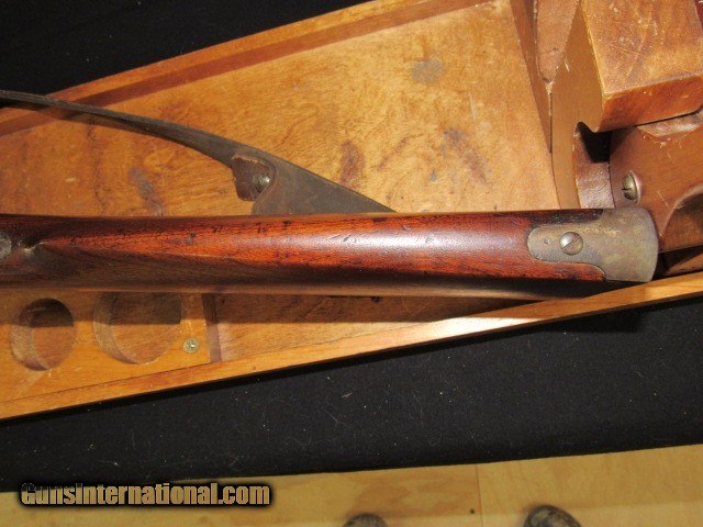 Description: Joy E. Johnson was born in 1839 in Herkimer, NY, a small Central New York town in the Mohawk Valley between Utica and Albany. At the age of 23, he enlisted on May 1, 1861 at Herkimer, NY as a 1st Sergeant, and mustered into Company G, 34th NY Infantry on June 15, 1861. The 34th NY signed on for a two year enlistment. On December 2, 1861, Johnson was promoted to 1st Lieutenant. On March 3, 1862, he was promoted to Captain, and was at this rank when the 34th was involved in the nation's bloodiest day at Antietam (Sharpsburg) on September 17, 1862. The 34th moved from the East Woods through the West Woods and into the area on both sides of the famous Dunker Church. Facing Stonewall Jackson's men in front of it, the 34th was the very left end of the Union line, and was promptly flanked by Barksdale's Mississippi Brigade, thus forced to retreat back beyond the East Woods. In just 40 minutes of engagement, the 34th lost 43 killed and 74 wounded. Johnson survived the Antietam bloodbath, as well as the Union debacle at Fredericksburg and fought to the end of the enlistment, mustering out on June 30, 1863 (yes, the day before Gettysburg started). Late in 1864, as the Civil War was floundering as a war of attrition, the Union decided to muster in units comprised of hardened veterans, known as the Veteran Volunteers, to be led by Major General Winfield Scott Hancock, in the hopes that these veteran units could use their battle expertise to finally bring about an end to the war. The enticement for these men to re-enlist was the gift of a new Sharps percussion rifle for them to use in battle and take home with them when their service time was over. Joy E. Johnson signed on with the 2nd Veteran Volunteers, Company D, as a Sergeant, and later moved to Company B as a First Sergeant. This Sharps is his rifle, serial number C31919, and is noted as such in the Coates & McCaulay book "Civil War Sharps Carbines & Rifles" that was printed in 1996. The 1st and 2nd Veteran Volunteers were active the last month of the war, having been assigned to Harper's Ferry, skirmishing with Confederate troops led by the "Gray Ghost" John S. Mosby. This rifle would have been in Johnson's hands during those final skirmishes with the Rebs during the last few weeks of the Civil War. Johnson survived, and eventually made his way to Connecticut, becoming a carpenter and living into 1886, when he passed away on February 5th. He and his wife Augusta are buried at the Stafford Springs Cemetery in Stafford Springs, Connecticut. My provenance includes copies of the pages from the Coates & McCaulay book showing the rifle by serial number issued to his name, a printout of has soldier history from the American Civil War Research Database, his muster roll info for both units as printed from the Soldiers and Sailors database provided by the National Archives, printouts of the 34th NYs monument at the Antietam battlefield (which shows his name as the Captain of Company G), a printout of his military registry, a printout of his pension record as applied for by his son Lewis E. Johnson, a printout of the 1880 Census records for inhabitants of Hartford, CT, a color printout of his gravestone at the Stafford Springs Cemetery, and several pages of copies of original articles that were written by a newpaperman and published in the "Utica Morning Herald" newspaper that chronicled the 34th NYs travels and battles. All provenance will be given to the buyer of this rifle. The rifle is of standard configuration for this late production, having the 30" round barrel with post front sight, no bayonet lug or cleaning rod, original Sharps-marked long leaf rear sight, 3 barrel bands, 2-piece walnut stocks with the butt stock having 2 different final inspector's cartouches at the left wrist, and all the correct, original parts including hammer, lever, lever lock, nipple, patch box and sling swivels. A period leather sling is attached. Inside the patch box is an old piece of burlap with a spare nipple wrapped inside. The patch box door has the single punch dot on the underside, which was inspector John Taylor's mark. CONDITION: Barrel retains 65% original thinning blue that has taken on a slightly mottled appearance. The barrel address and "New Model 1863" markings are very clear. Bore is excellent - bright and shiny with sharp rifling and no pitting, no rings, no bulges. The original walnut stocks are generally very good, exhibiting typical nicks dings and scratches but no splits or cracks, never sanded or refinished, and worn but evident inspector cartouches . Various sub-inspector initials appear in various locations on the metal parts. Clear serial number on the top tang. The receiver retains about 5% of the original case colors, with the balance having silvered and being mixed with some staining but is not pitted. The hammer spring is strong, having positive clicks on both half and full cock, and locks up nice and tight. Likewise the lever drops the breech block smoothly and functions as it should. Lever lock also working properly. The two tang screws have bright fire blue and may be replacements as their finish is not consistent with the rest of the rifle. Most of the Veteran Volunteer units never saw battle, and thus their rifles are generally found in near-new condition. Not the case here as this unit did get in on a bit of action and thus the rifle shows it. If you like issued and identified Civil War firearms, this is not one to pass up. Grades NRA Antique Very Good. TERMS: No international sales. Antique so it can ship directly to you assuming your local laws allow it. Please be aware of what is legal in your state. 3 day non-firing inspection and sold as a collector item only. Not warranted safe to fire until checked out by a competent gunsmith. Buyer pays return shipping. Payment by bank check, personal check or money order. All major credit cards accepted with 4% convenience fee added. Shipping will be free by USPS Priority Mail wit
