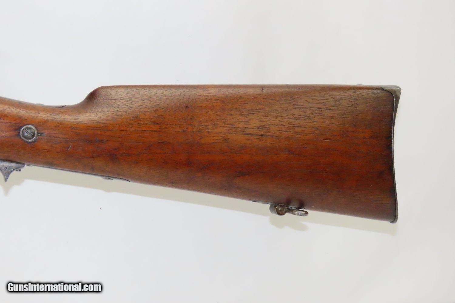 Description: RARE, CIVIL WAR Sharps NEW MODEL 1863 MILITARY RIFLE .52 Percussion Antique 1 of only 6,140 New Model 1863 Rifles Manufactured Here we present an antique U.S. Sharps New Model 1863 Rifle, made circa 1863 in Hartford, Connecticut. The most famous, single-shot percussion firearm used during the Civil War was the Sharps carbine, a .52 caliber breech-loading firearm invented and patented by Hartford native Christian Sharps. Over 100,000 Sharps rifles and carbines were purchased and used by the federal government during the American Civil War; but only 6,140 New Model 1863 Rifles were produced. These powerful, accurate and reliable rifles certainly saw history from a firsthand perspective during the conflicts leading up to the Civil War, the war itself, and beyond on the frontier. The overall condition is very good. The action is strong. The bore is reflective and has sharp rifling. This example sports a solid stock with the kind of handling you would expect. The markings are legible. Here is a nice example of a rare Sharps rifle! Own the original! This is a legitimate antique and not a reproduction. Barrel is 30-1/8 inches. Caliber: .52 Percussion Overall condition as seen in photos. Very Fast. Very Safe. FREE SHIPPING WORLDWIDE. Delivered directly to your door by express mail! Guaranteed AUTHENTIC & Includes CERTIFICATE OF AUTHENTICITY. ancestryguns $4735 #210048 SOLD Antique: Yes |