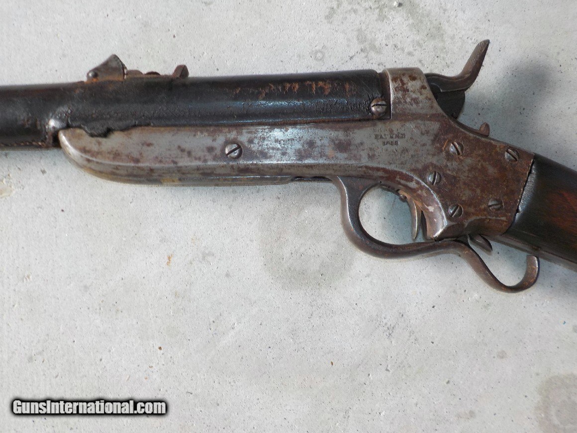 Description: Sharps & Hankins Navy carbine. Made for the Navy during the civil war this one has the barrel wrapped with leather to protect the rifle from salt spray and water. Retains most of the original leather. 52 cal RF. Sliding breech design. Serial number 10315 Caliber 52 RF SOLD Antique: Yes Manufacturer: Sharps & Hankins Model: Navy Serial Number: 10315 Caliber Info: 52 RF Condition: good |