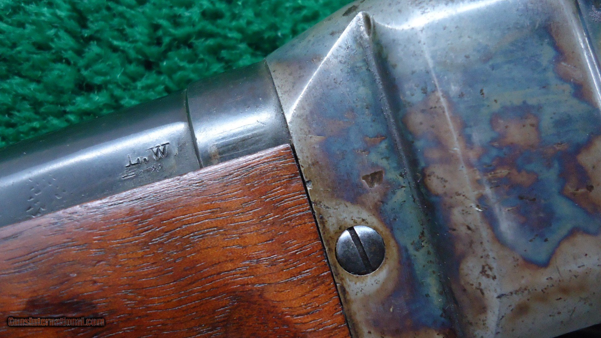Description: Percussion gun with a 22 inch round barrel that has an excellent bore. Action is as good as new. This whole gun looks great with all of the Arsenal blue remaining on the barrel with vivid case colors on the receiver. Wood shows barely any use. Screws are excellent. Complete with saddle ring. Original sights. Leroy Merz Antique Firearms specializes in antique and vintage Winchesters and other fine American firearms. Since 1965 Mr. Merz has taken part in the world of firearms and has been a contributor to many well known reference books. We have hundreds of additional guns in every price range at our home online. Search for Merz Antiques in google. SOLD Antique: Yes |