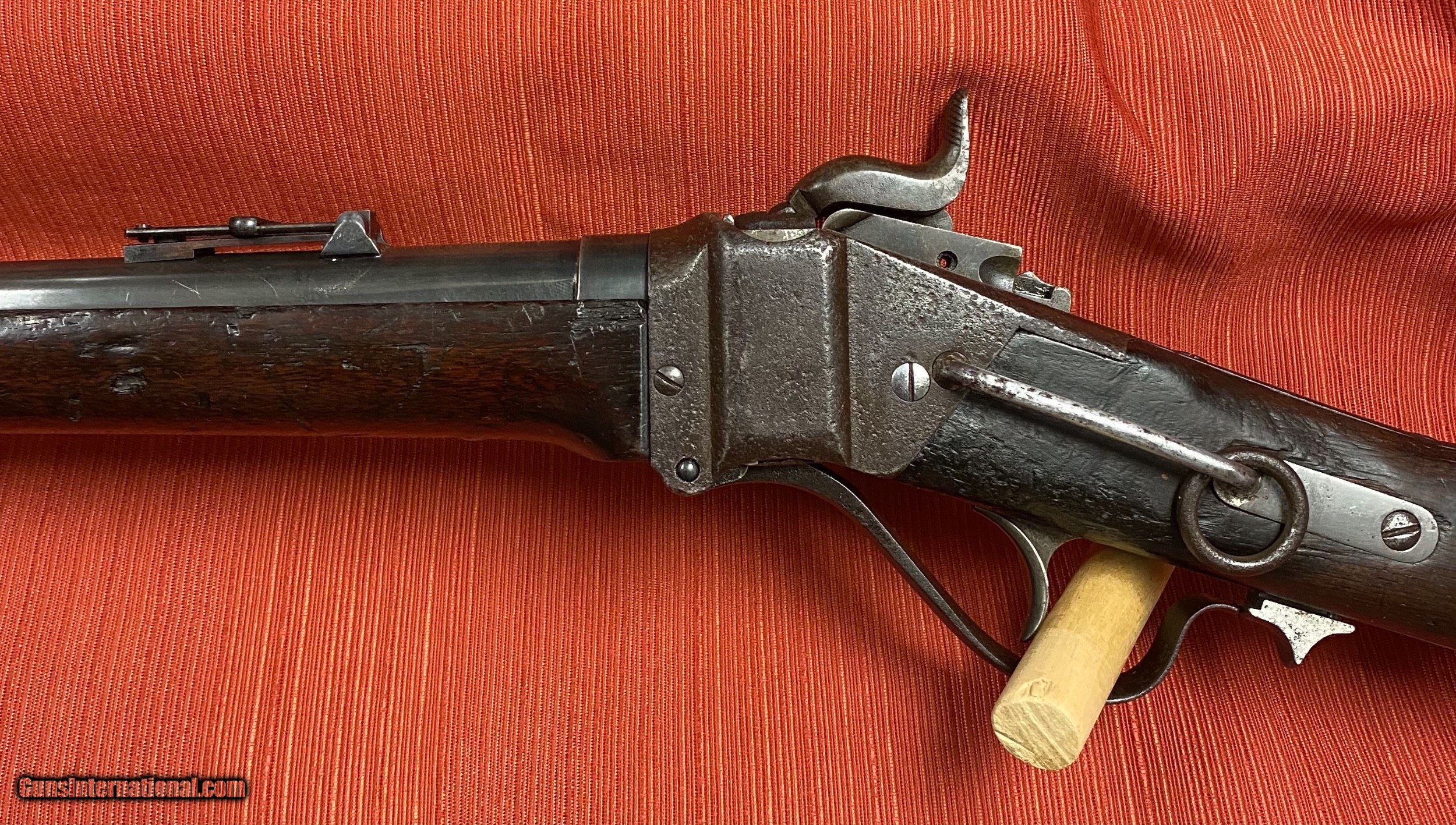 Description: Antique Civil War Sharps New Model Metallic Cartridge Conversion Carbine in .50-70 that has the original barrel with the 6 groove bore. Manufactured in 1860's. Bore is in typical black powder usage condition and could use a good cleaning however it should make a great shooter. Lands and grooves still present. The 22" original barrel has been sanded by the previous owner so most of the barrel markings are no longer present. Barrel has had cold bluing applied for appearance. Action is smooth and tight. It functions fine just as it should. Overall condition good as an antique collectible especially in light of being nearly 160 years old. Very collectible Civil War Gun. Carbine should be checked by a qualified gunsmith prior to use. Insured shipping is included in the purchase price. SOLD Antique: Yes Rifle Caliber: .50-70 Government Manufacturer: Sharps Model: New Model Serial Number: Unknown Barrel Length: 22” Condition: Fair to Good Metal Condition: Fair to good Wood Condition: Fair to good Bore Condition: Fair to good Action: Single Stock: Walnut Finish: Blued Manufacture Date: Mid 1860’s Item Location: WV |