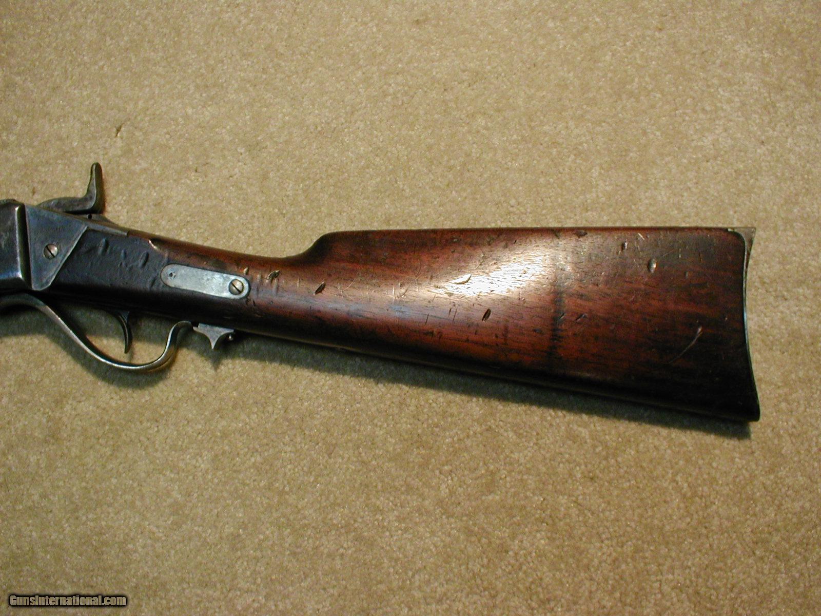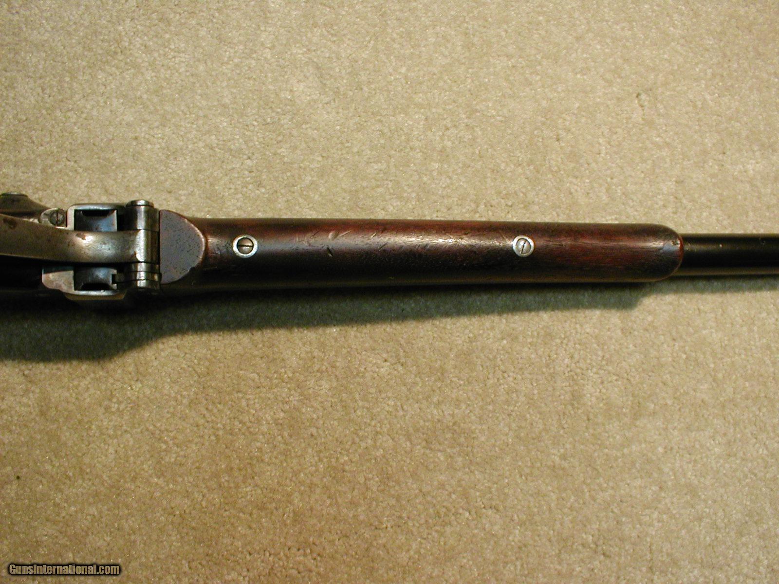 Description: ONE OF THE BEST TRUE 1874 SHARPS SPORTING RIFLE CONVERSIONS MADE BY THE SHARPS RIFLE COMPANY, BRIDGEPORT, CT., NOT A MEACHAM CONVERSION, There is a lot of misinformation about these, but the fact is that the real Sharps Company took Civil War carbines back to the factory and ground the lock plates to the appearance of the 1874 model, changed the tumbler in the lock, put a real Sharps barrel on the rifle with correct Sharps markings & sights and with a correct 1874 forearm. These were then sold to dealers at lower prices than their 1874 Sporters. The Meacham Sharps Conversions have non-Sharps barrels and forearms and are usually of lesser quality. This example is one of the best I've seen and is interesting as the barrel is a true Model 1874 barrel with the M-1874 serial number correctly stamped under the forearm and neatly "lined out," but still readable (#162XXX- this number will actually letter), This was fairly common on conversions and even factory sporters as Sharps used barrels on returned guns or used extra barrels on many rifles and especially on conversions. It is a .40 2 1/4" (.40-70) caliber, 30" half octagon barrel with original distinctive Sharps front sight and heavy full buckhorn Lawrence ladder rear sight- this sight was usually put on guns destined for the Western regions- The action and stock are typical Military Carbine style, the amazing part is that this rifle has a bright exc. bore, exc. barrel blue and fine case colors that are lightly fading on the hammer and receiver! Mostly gray lock plate with the early markings, exc. forend, butt stock shows normal light handling only and no abuse, these are usually found in hard used condition and this is one of the best I've seen! Much more desirable and valuable than a "Meacham," ( note: the dark line on the left side of the stock is simply a light stain that the photo lights picked up and exaggerated). SOLD Antique: Yes Manufacturer: sHARPS Model: 1874 Sporting Conversion Serial Number: 76xxx & 162XXX (BARREL) Caliber Info: 40-70 Condition: fine-exc. Barrels: 30" half oct. |