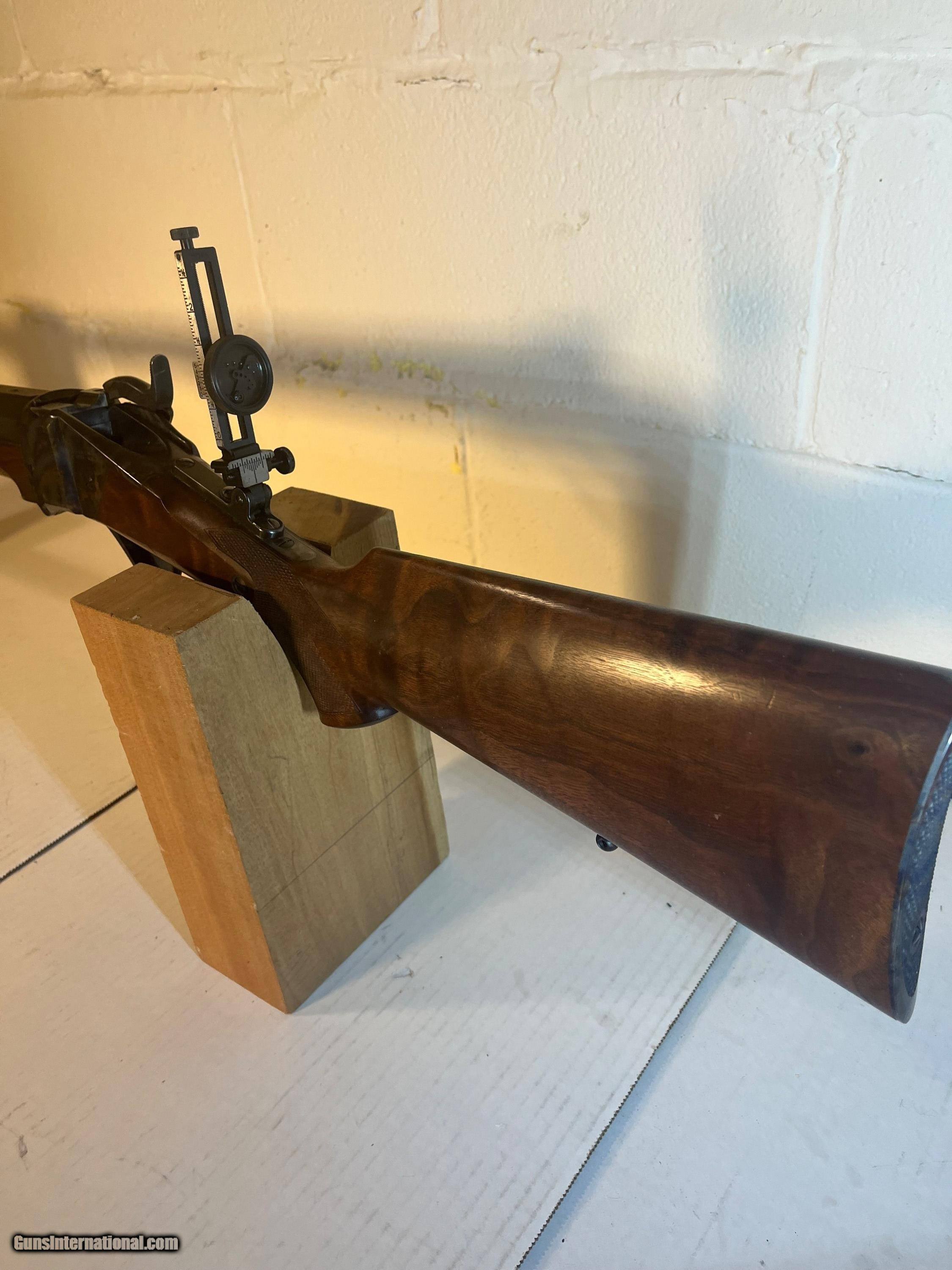 Description: Shiloh Sharps 45-70 Montana Roughrider. Purchased new from Shiloh in 2021. It has a 30 inch 14lb heavy barrel, AA finish on semi fancy walnut and pewter tip. Pistol grip with checkering. Comes with extra firing pin and spring, main spring and lever spring. It has a Hoke midrange vernier tang sight and a Baldwin front sight with spirit level. The barrel is factory tapped for 10.34 scope mounts. Included are buckhorn barrel sight and front blade sight. Comes with custom made leather and lead cheek pad. Everything is in excellent condition. Includes hard plastic case. Includes 100 used 45-70 Starline brass cases used about three times. Because of health reasons I have to give up target shooting. $4100 plus $100 shipping. SOLD Rifle Caliber: .45-70 Government, .45 Manufacturer: Shiloh Sharps Model: Montana Roughrider Serial Number: 9051B Barrel Length: 30 Condition: Excellent Metal Condition: Excellent Wood Condition: Excellent Bore Condition: Excellent Triggers: Double set Finish: Satin |