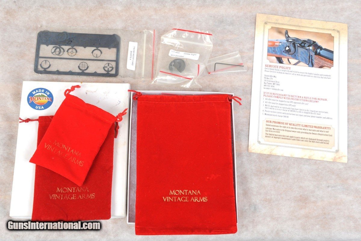 Description: A customer of mine purchased this new and brought it to me to sell on consignment. It's a Big Timber Montana Shiloh Sharps 1874 No. 3 rifle in .38-55. Included is a Montana Vintage Arms tang sight which costs $400 extra. When my customer ordered this rifle he paid $306 extra for semi-fancy walnut. He also paid $170 for AA finish. It has beautiful case coloring on the receiver. Other extras are that he paid $156 for a pewter tip on the forearm and an extra $96 for a steel butt plate. This is one incredible rifle in absolutely amazing condition. The rifle will be shipped in a plastic padded gun case and include all paperwork, original receipt, and extra tang sight inserts. I have attempted to take many high quality photos of this fine rifle so that you get an accurate feel for it quality and condition. The purchaser agrees to pay actual FedEx or USPS shipping with insurance to your FFL. The purchaser may be responsible for sales tax if required in your state. Payments accepted: Cashier's check, Postal Money Order, Certified funds, an FFL's company check. A personal check will be held until clear. Credit/ debit cards will incur a 4% fee. Please call my shop if you have any questions at 712-465-3400. ADDITIONAL INFO: The barrel is 31.25" long. SOLD Rifle Caliber: .38-55 Winchester Manufacturer: Sharps Model: 1874 Condition: Excellent |