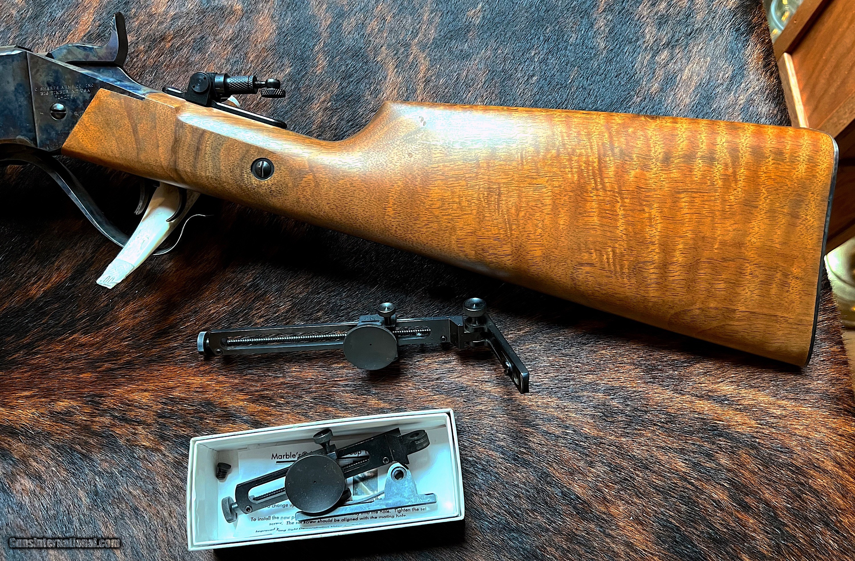 Description: Best known as a buffalo-hunting gun, the Sharps sporting rifle became known as the "Old Reliable" by those who hunted buffalo for their hides. These rifles capture the true craftsmanship and the nostalgia of the original design with modern manufacturing. SOLD Rifle Caliber: .45-70 Government Manufacturer: C.Sharp’s Model: 1874 Serial Number: 74-2797 Barrel Length: 29 Condition: Excellent Metal Condition: 95% Wood Condition: 95% Barrels: 29inch Barrel Type: Octagonal Triggers: Double Set Weight: 13lbs Sights: Two spare long range sights Manufacture Date: 2012 |