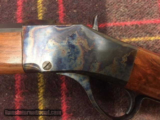 Description: 99% ,30 INCH FULL OCTAGON BARREL, 1875 MODEL, 45-70, CRESCENT BUTT, BUCKHORN REAR SIGHT, GLOBE FRONT SIGHT, A COUPLE VERY LIGHT MARKS IN THE FOREND C.SHARPS ARMS CO BIG TIMBER MONTANA MFG SOLD |